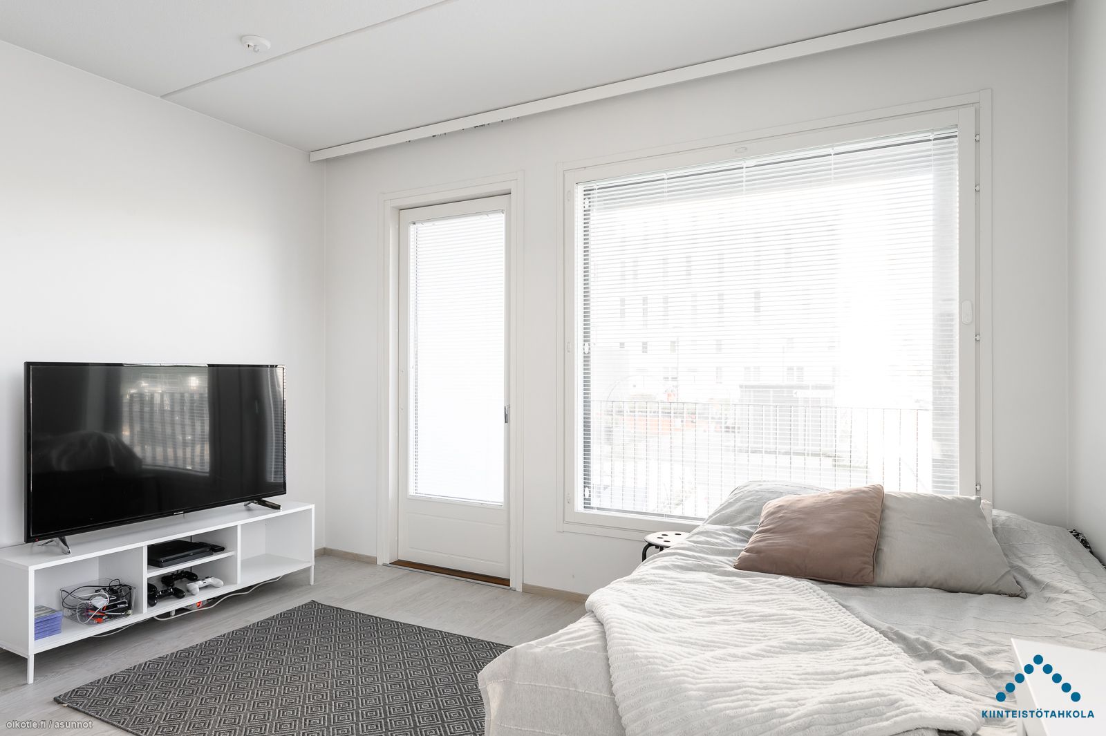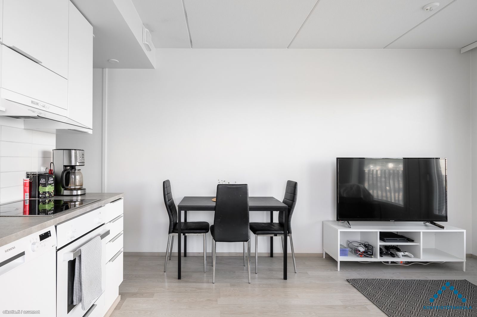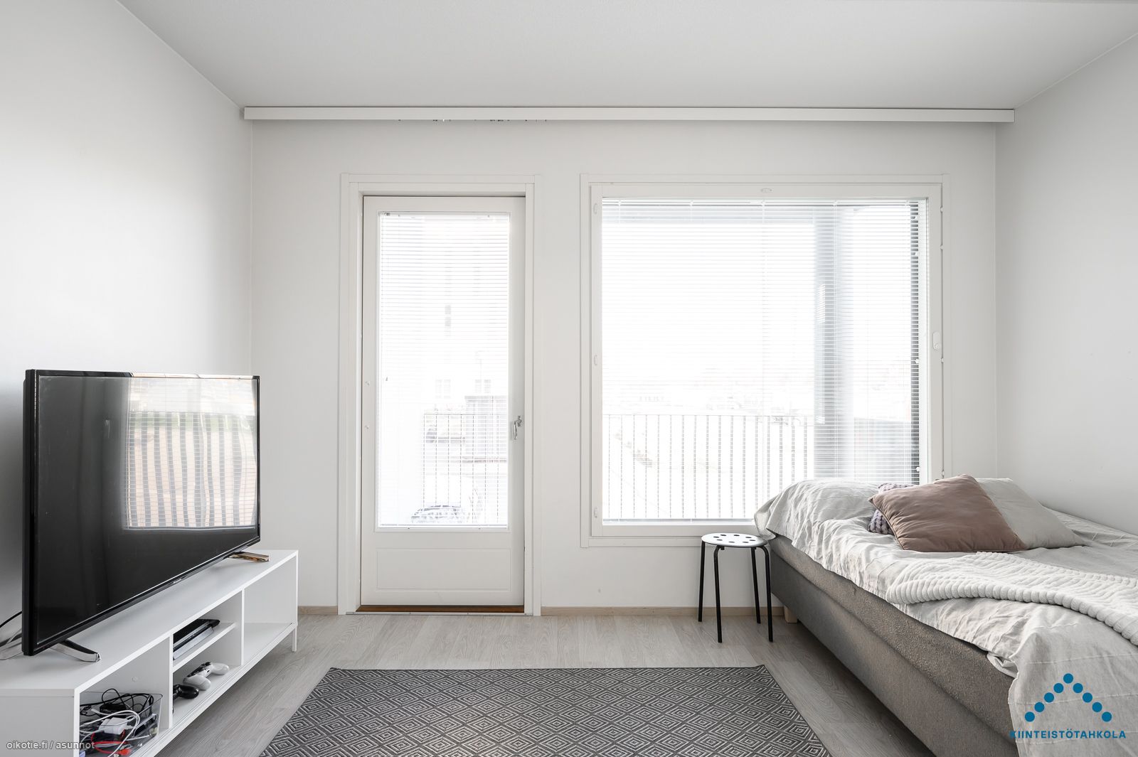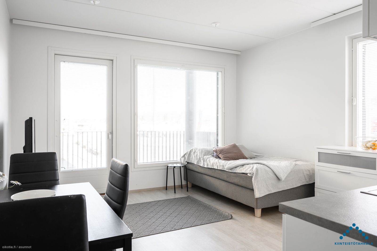 Tämä upea kaksio sijaitsee talon ensimmäisessä kerroksessa. Asunnossa on todella laadukkaat materiaalit, lattioissa laminaatit ja seinäpinnat valkoiseksi maalatut. Kosteissa tiloissa materiaalina on kaakeli.