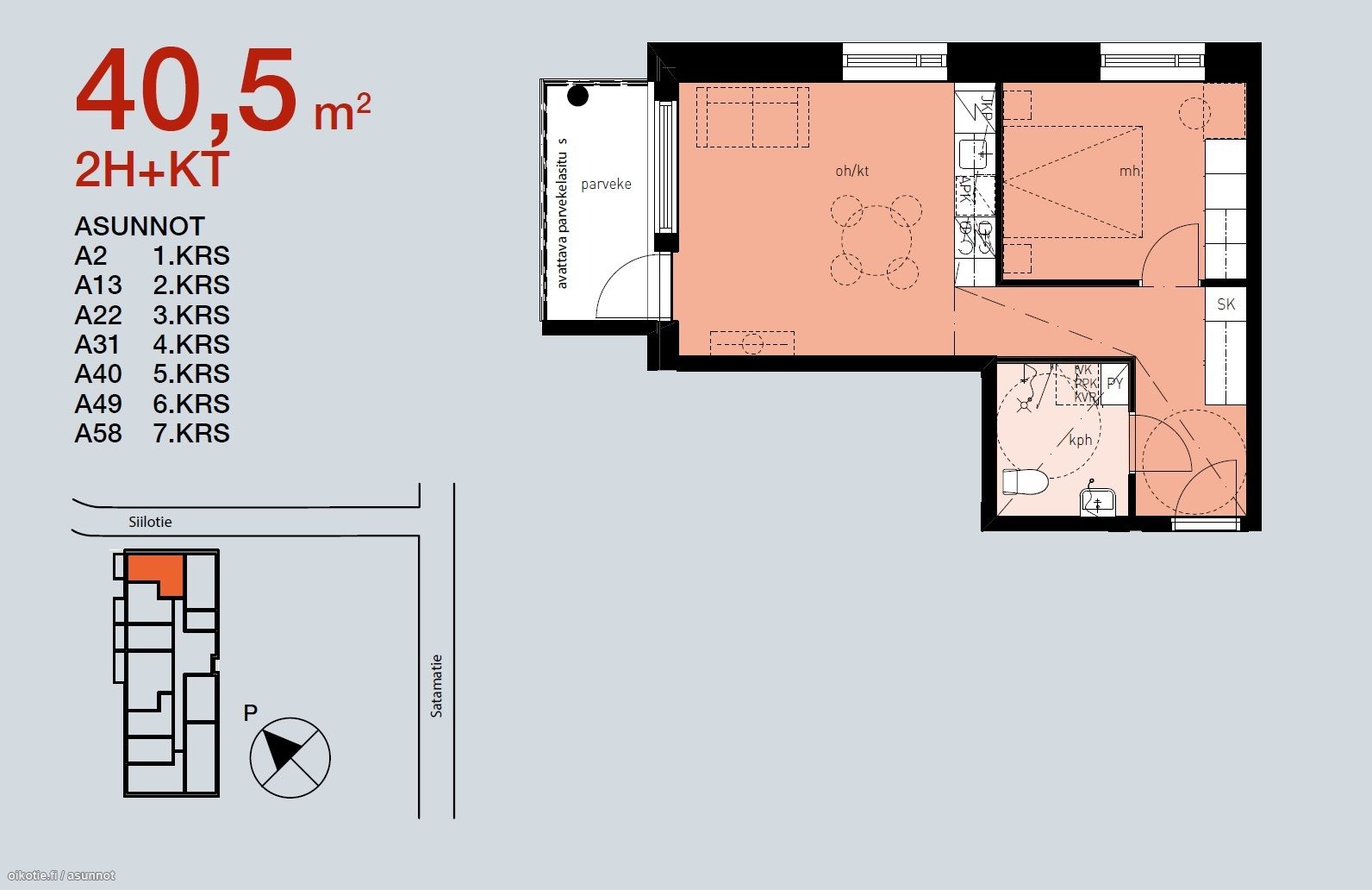 | Kokonaispinta-ala | 40.5m2 |