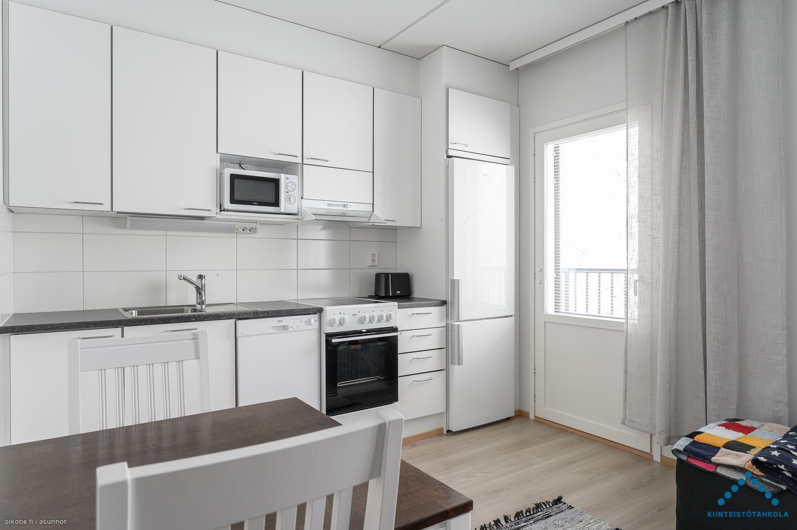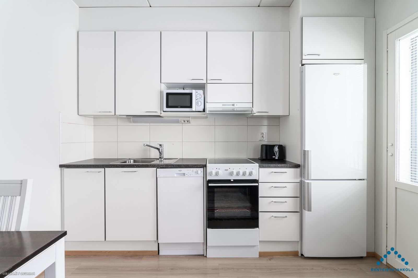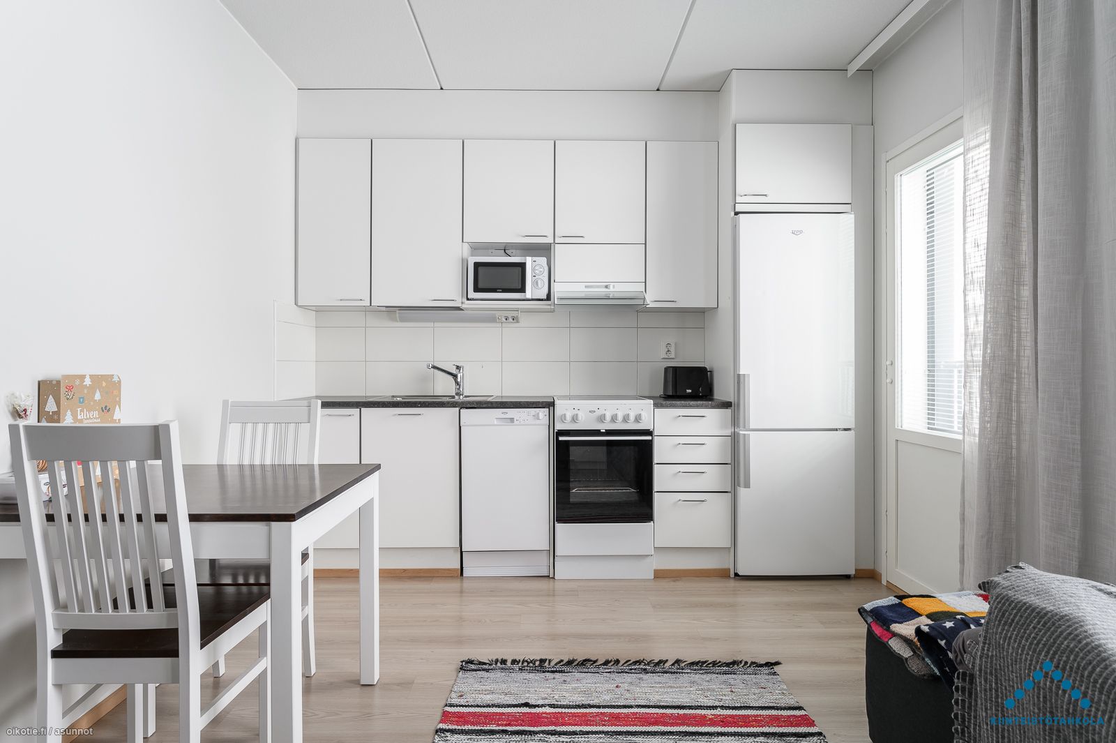 Keittiön varusteet Varusteet: Jääkaappipakastin, Astianpesukone. Työtaso: Laminaattitaso. Liesi: Keraaminen liesi, Liesikupu