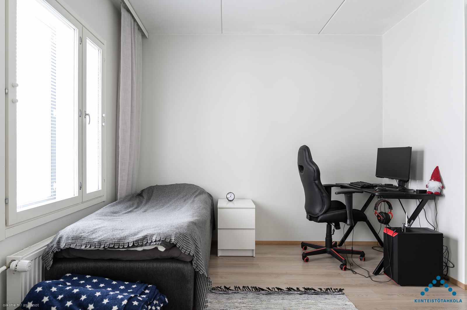Asunnossa on laminaattilattiat, vaaleat seinät ja keittiön kalusteet, ranskalainen parveke kuuluu myös varusteluun. Kylpyhuone on laatoitettu ja siellä on varaus ppk:lle. Talon ensimmäisestä kerroksesta löytyy huoneistolle kuuluva varasto. Asunto myydään valmiiksi vuokrattuna 525 €/kk