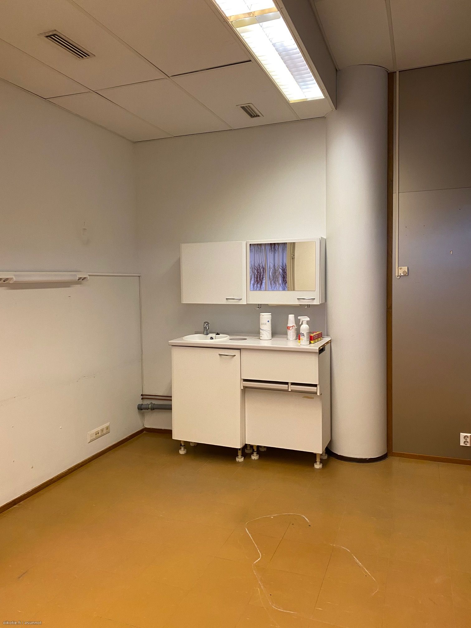 Vapautuva tila 2-kerroksessa soveltuu monenlaiseen toimintaan. Aiemmin tiloissa toiminut hammalääkäri ja vesipisteitä sekä viemäreitä kahdessa huoneessa.