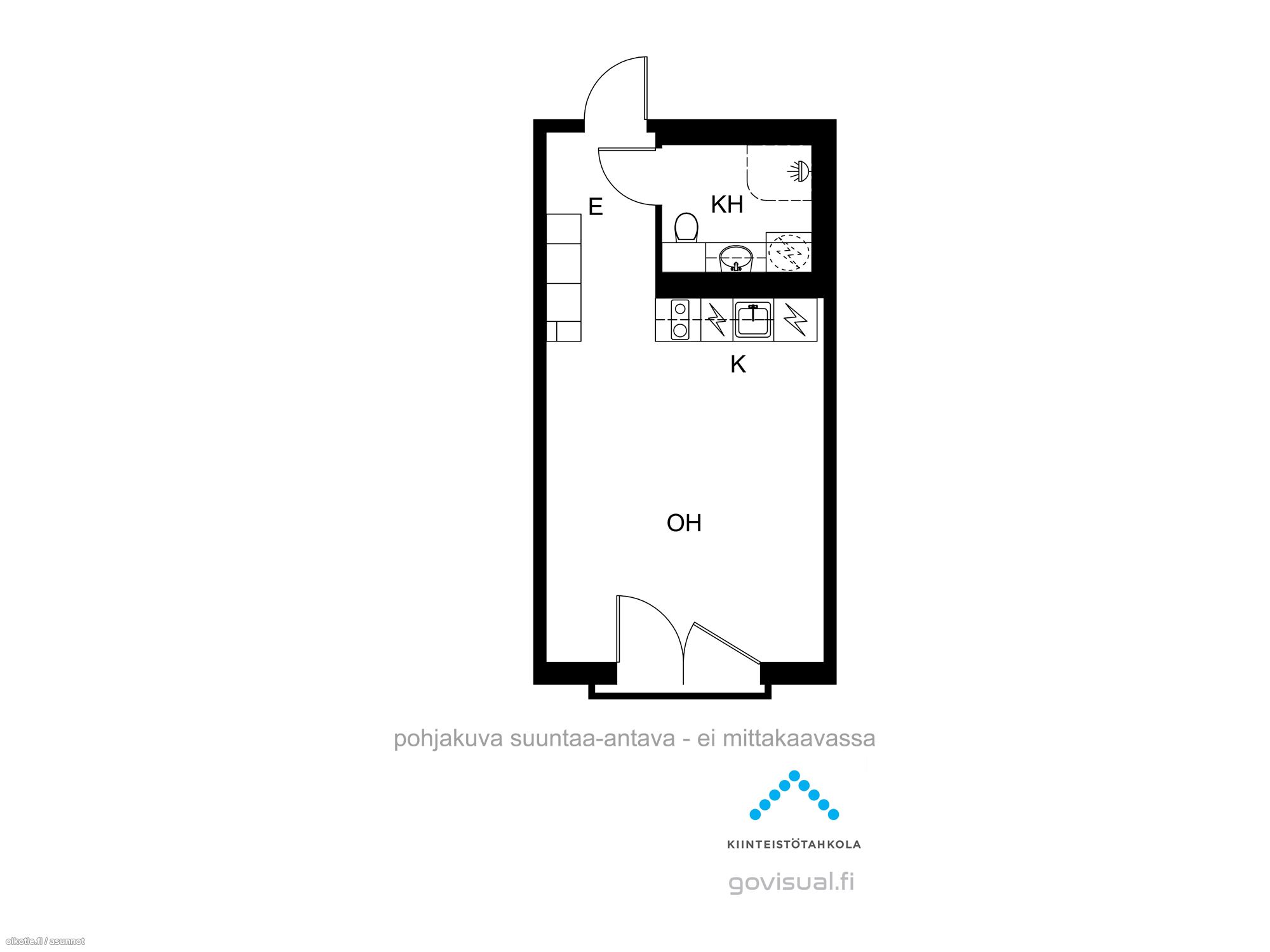 Myyntikuvat ovat saman taloyhtiön samanlaisesta ja kokoisesta yksiöstä mutta pohjaratkaisu peilikuvana.