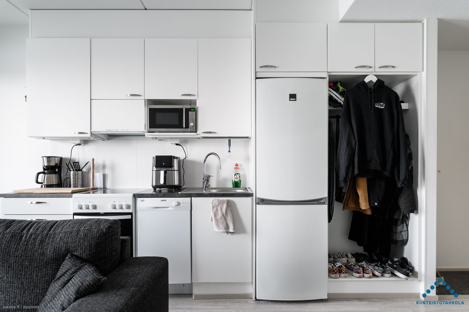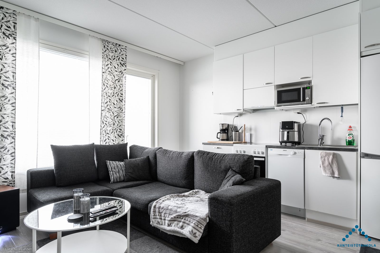 | Keittiön varusteet | Varusteet: Jääkaappipakastin, Astianpesukone. Työtaso: Laminaattitaso. Liesi: Keraaminen liesi, Liesikupu |