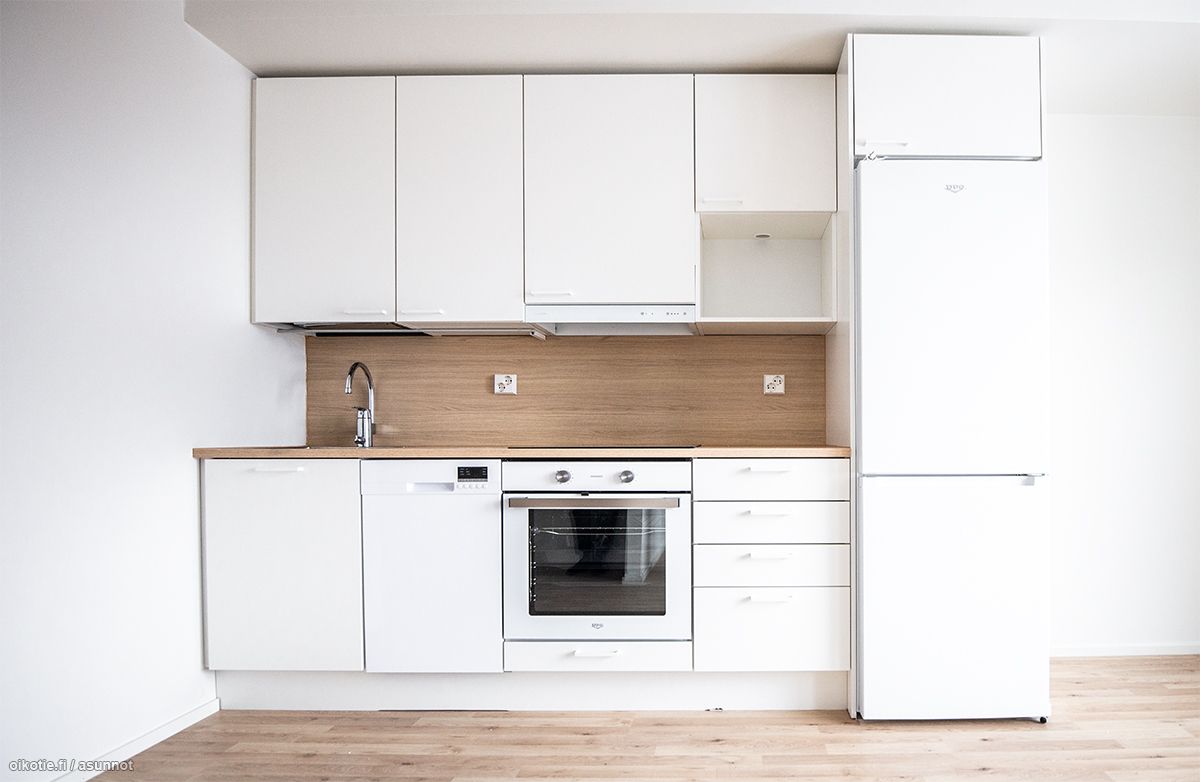 | Keittiön varusteet | Liesi: integroitu, erillisuuni. Kylmäsäilytys: jääkaappi/pakastin. Varustus: astianpesukone. |