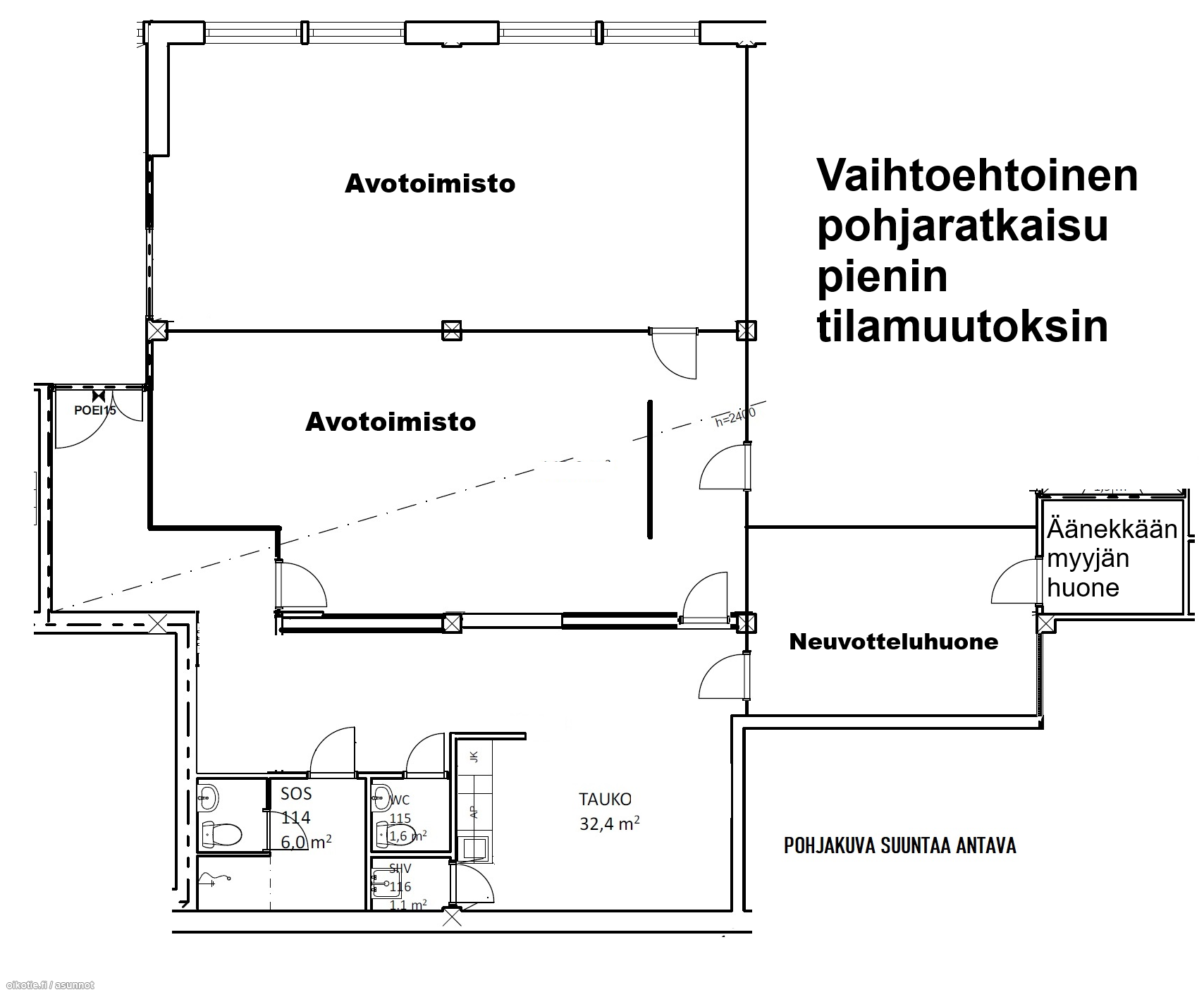 | Huoneiston kokoonpano | Remontoitu toimisto/liiketila |