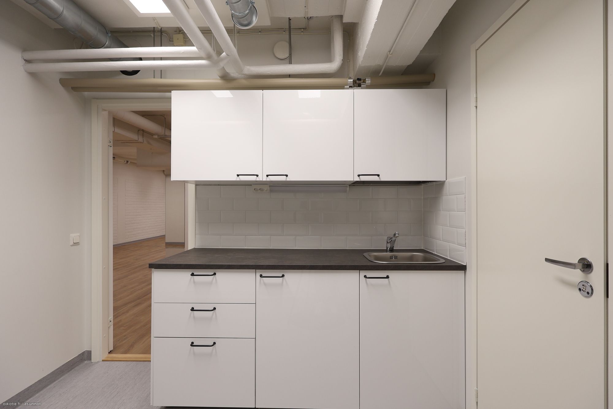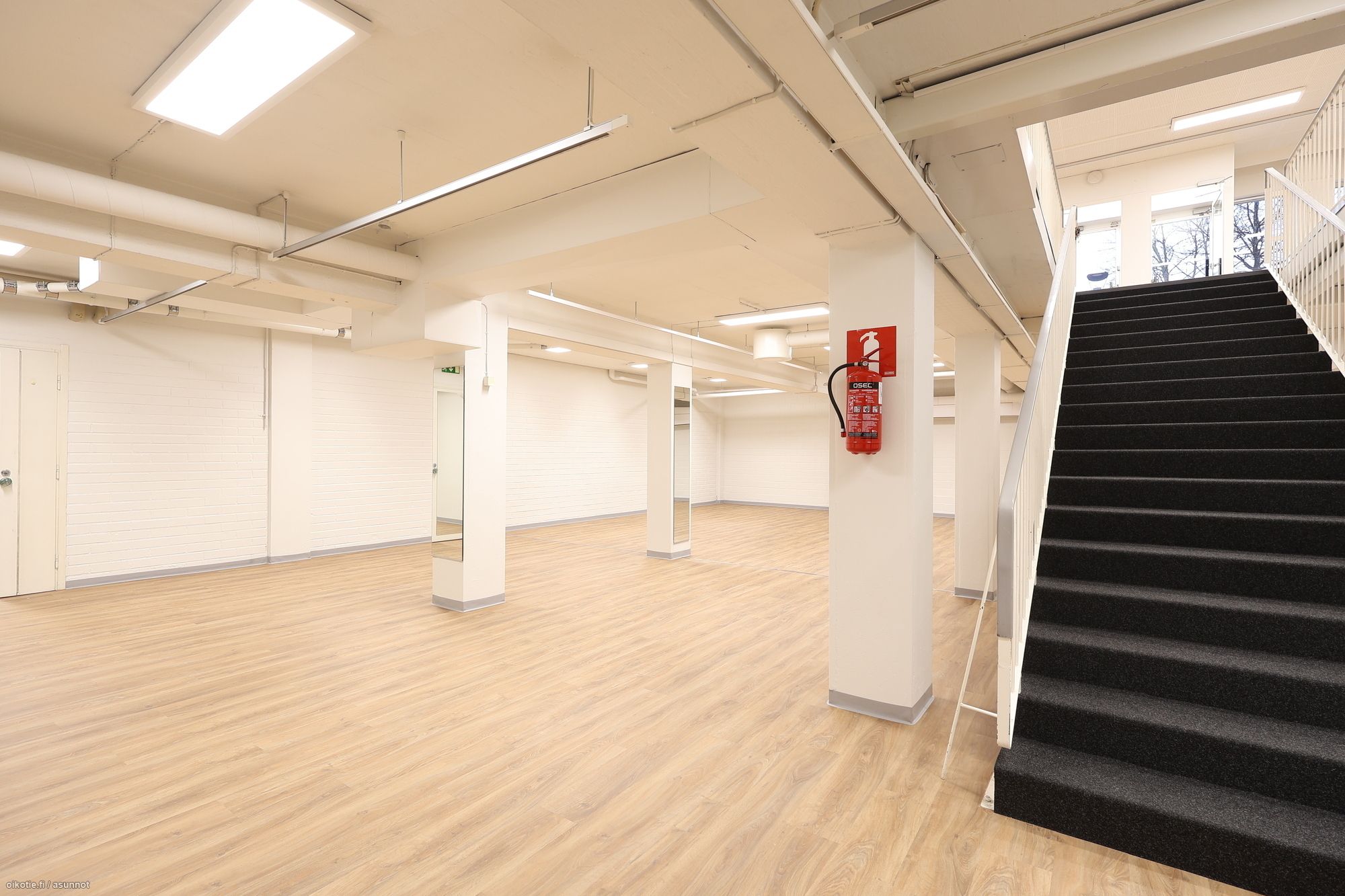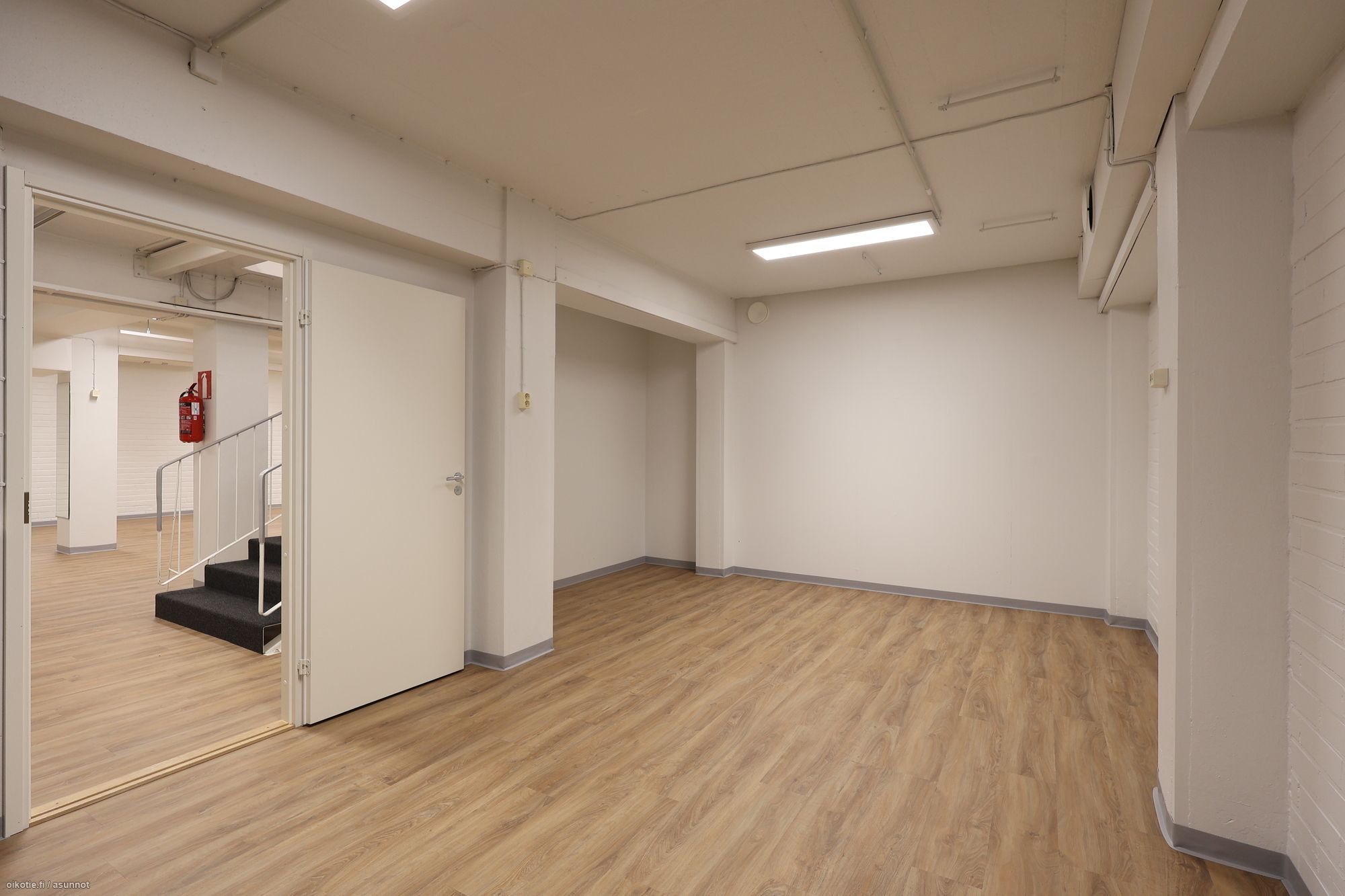 – Alakerta: Varasto- ja monitoimitilaa 212 m², jossa keittiö, sosiaalitilat ja toimistohuone.