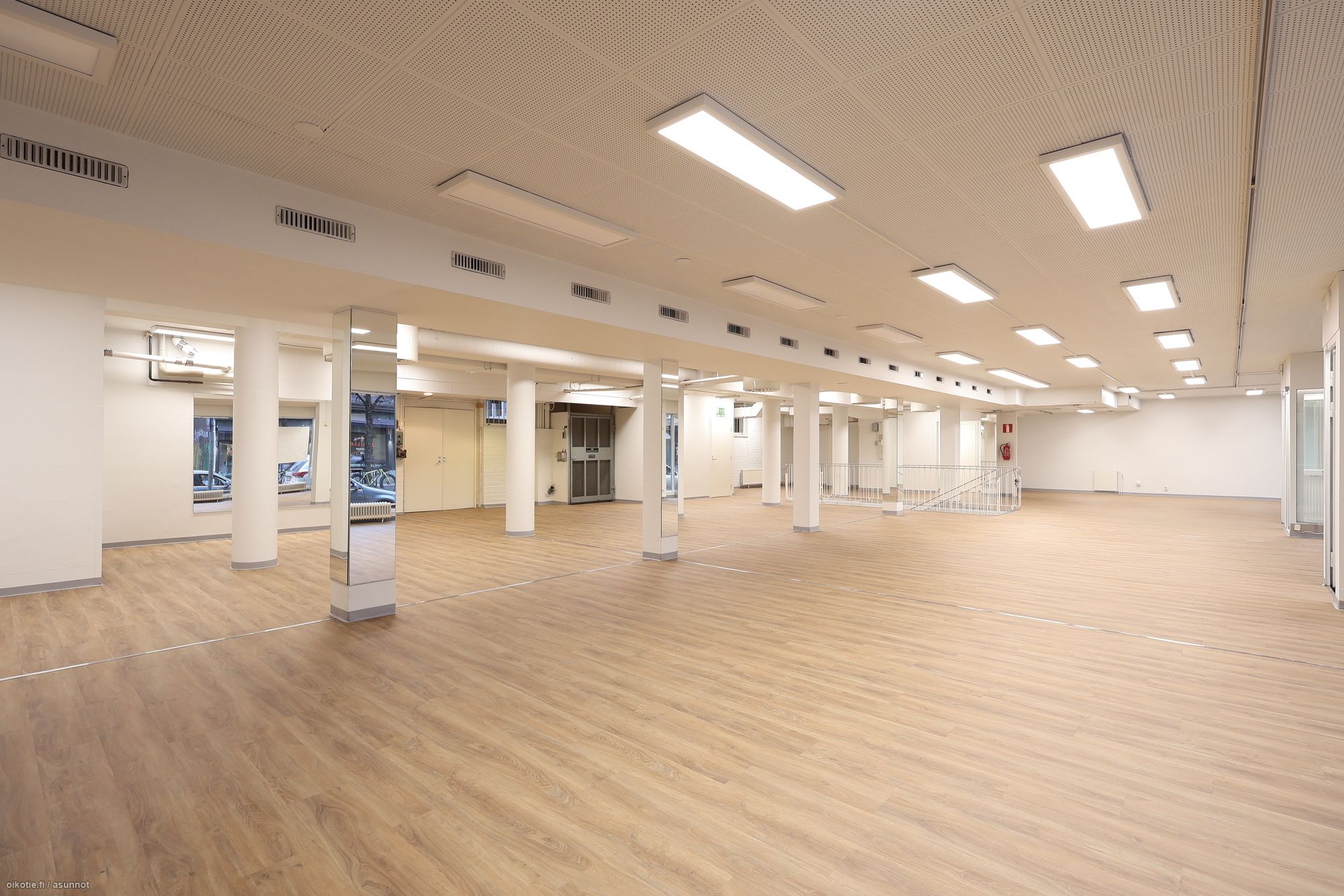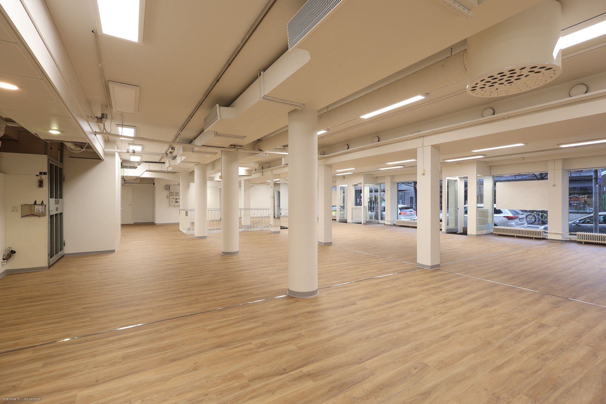 Tila on hyvin muunneltavissa ja voidaan jakaa myös kolmeen pienempään osaan, mikä mahdollistaa erilaiset käyttötarkoitukset tai vuokrauksen osittain. Talotekniikka sallii myös tilan käytön ravintolana.