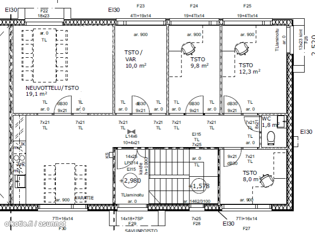 | Huoneiston kokoonpano | Siistiä toimistotilaa |