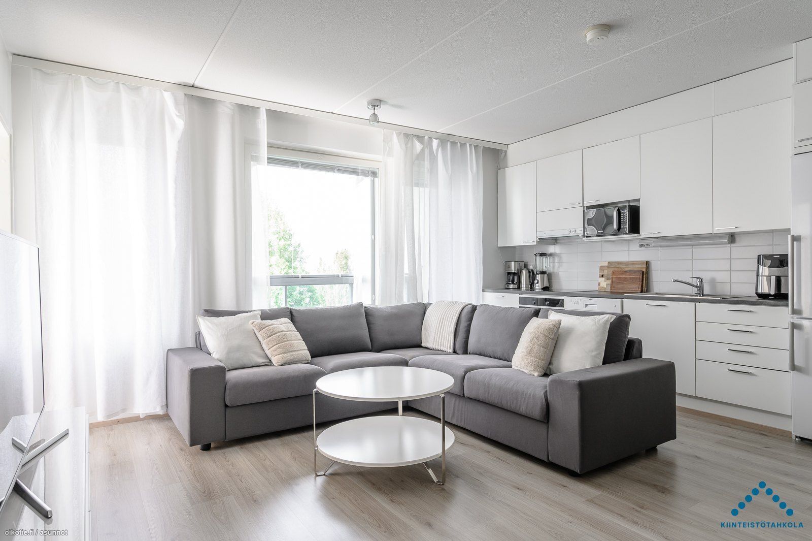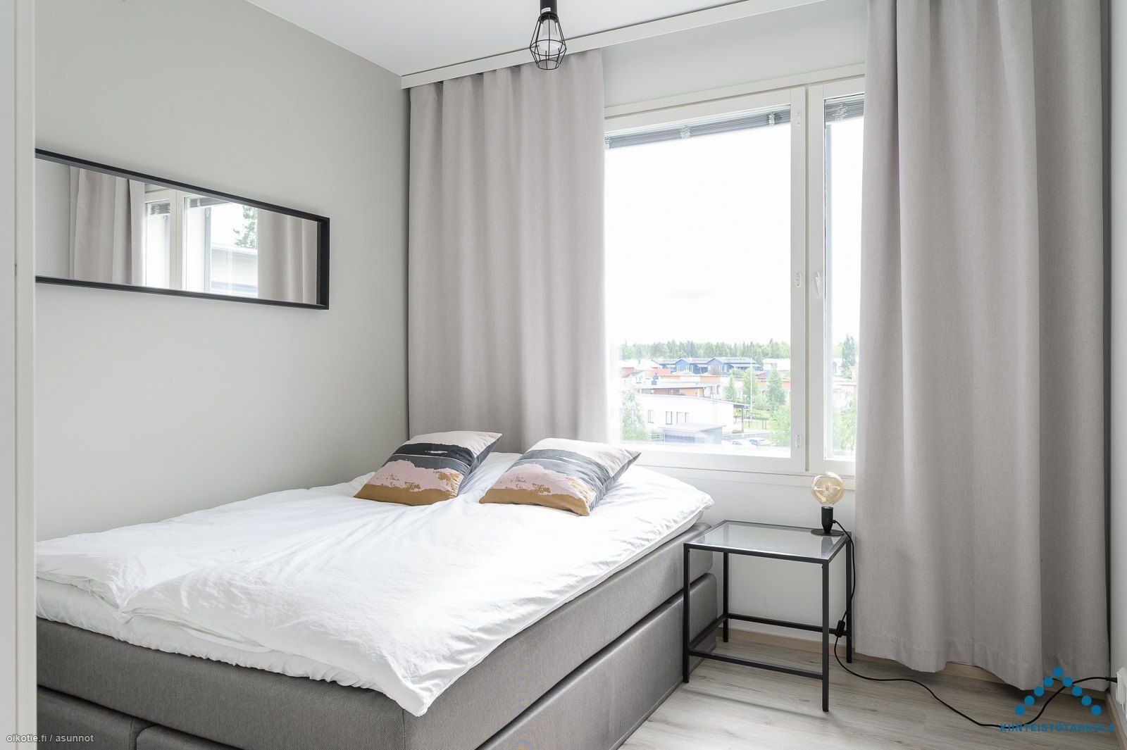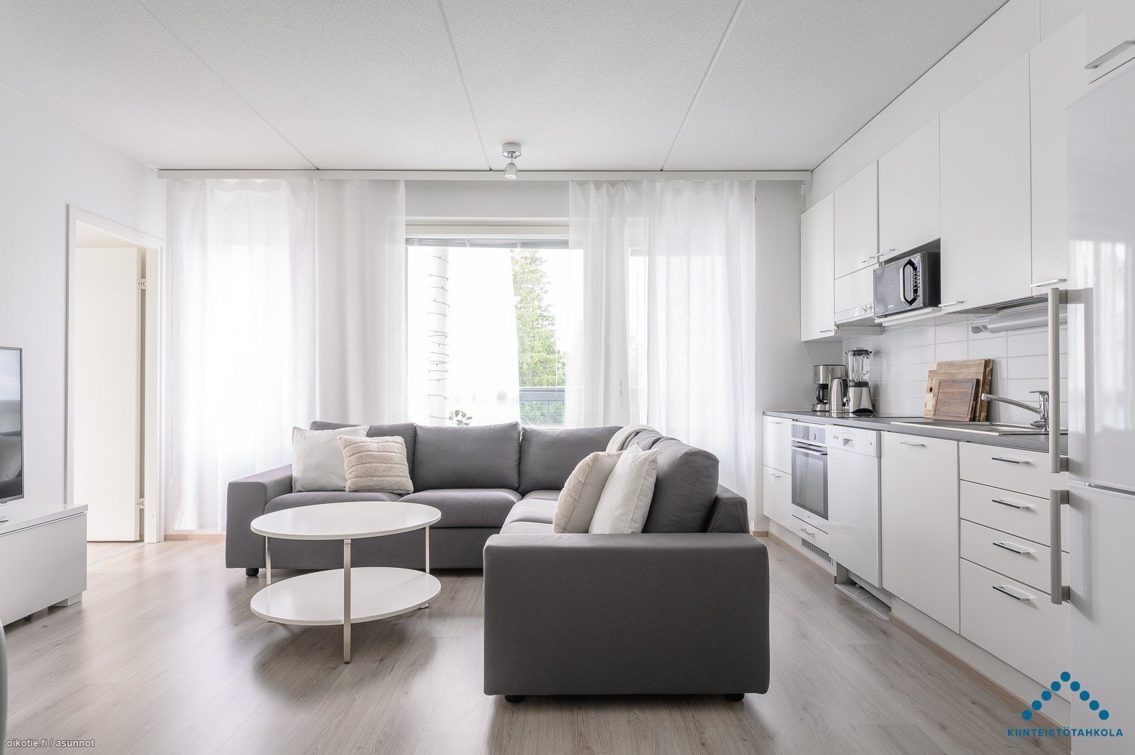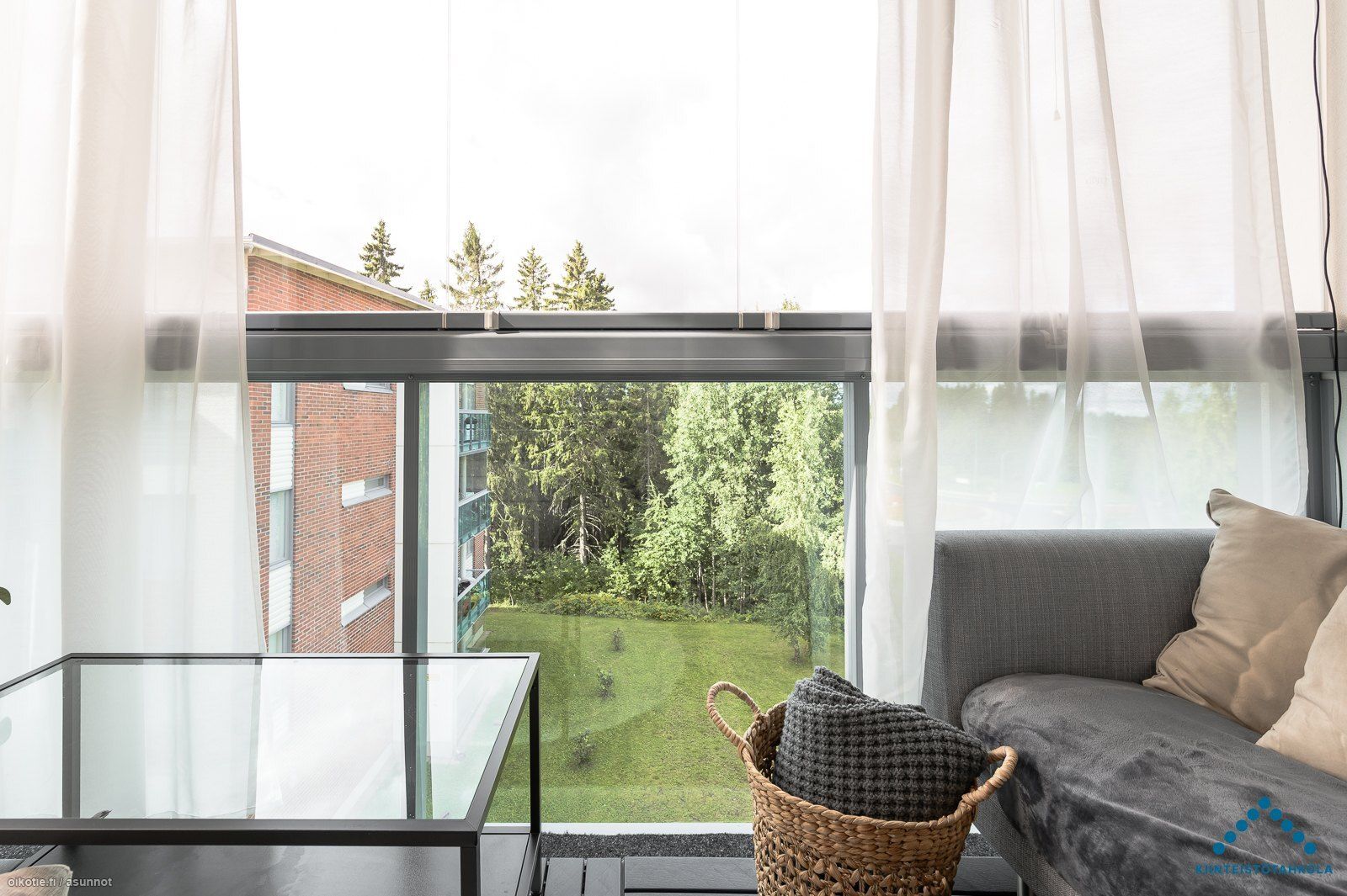 Ylimmän kerroksen kodin yksi parhaista puolista on kivat ikkuna- ja parvekenäkymät metsän suuntaan. Asunnossa on monipuolisesti kalustettava pohjaratkaisu, modernin vaalea sisustus ja lasitettu parveke. Olohuoneen ja keittiön muodostamaan oleskelutilaan mahtuu mukavasti kalusteita ilman ahtauden tuntua. Pesuhuoneessa on tasotilaa esim. pyykkihuoltoon ja sauna on harvinaisen iso vastakkaisilla lauteilla.
