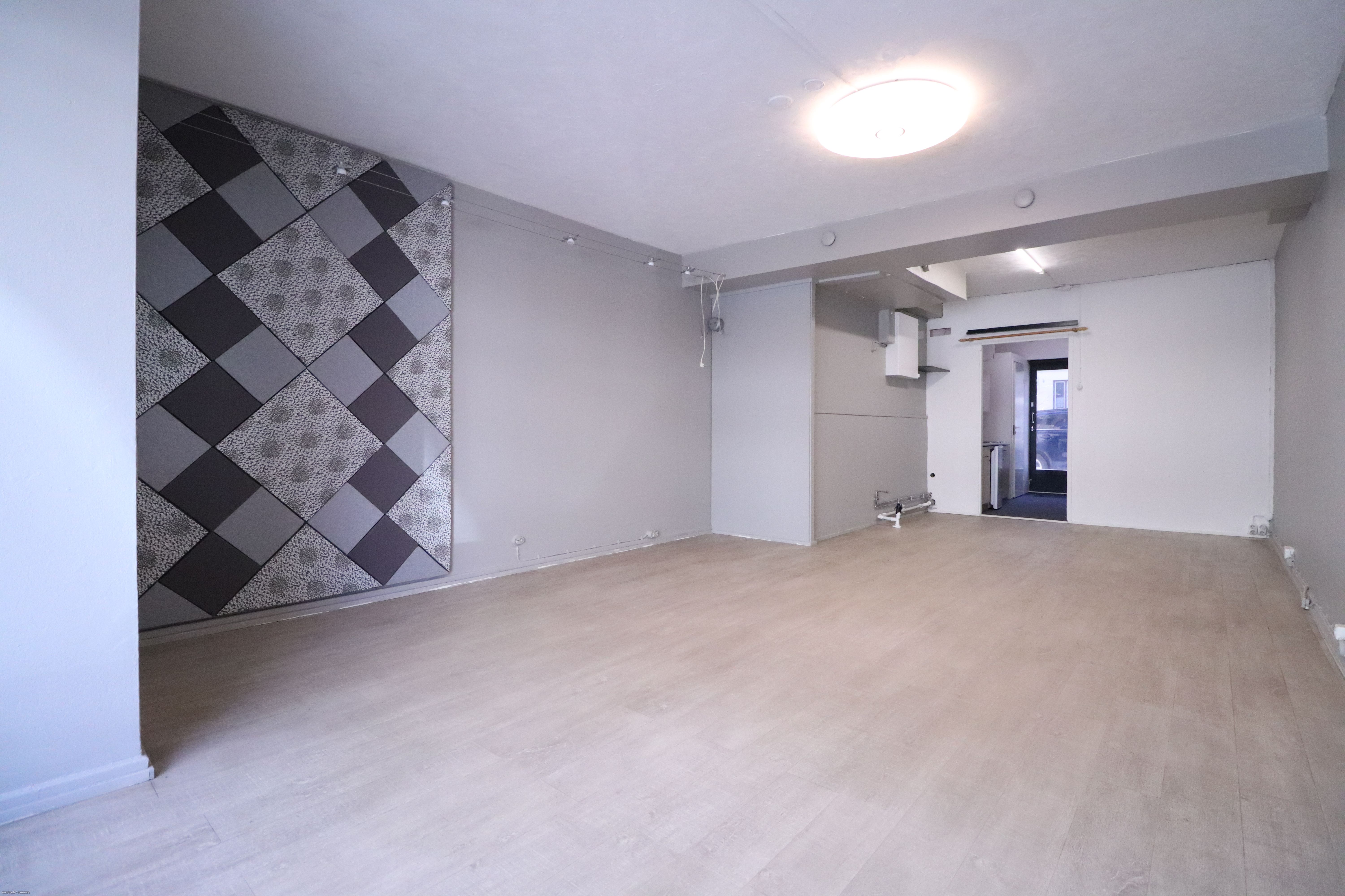 Tila on siisti, lattia on vaaleaa laminaattia, takatilassa tekstiilimatto. Tilan seinät on vaaleiksi maalatut. Liiketilan puolella valmiina vesiputket ja viemäröinti erilliselle vesipisteelle. Tilassa on hyvä valaistus.