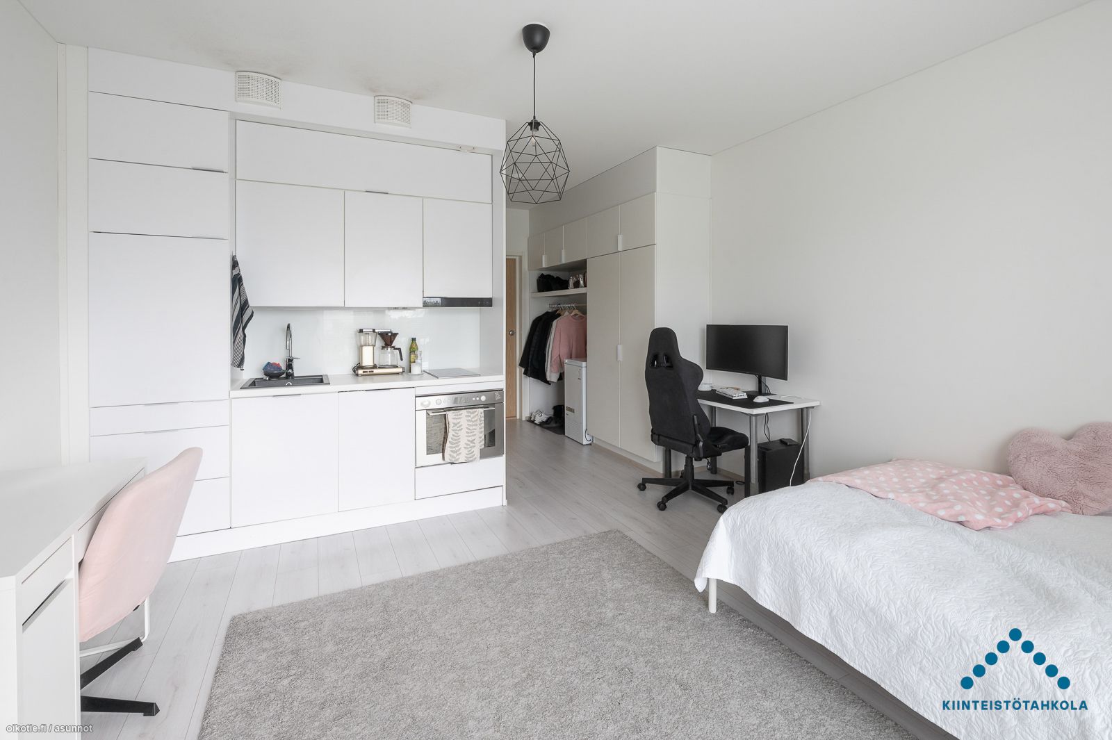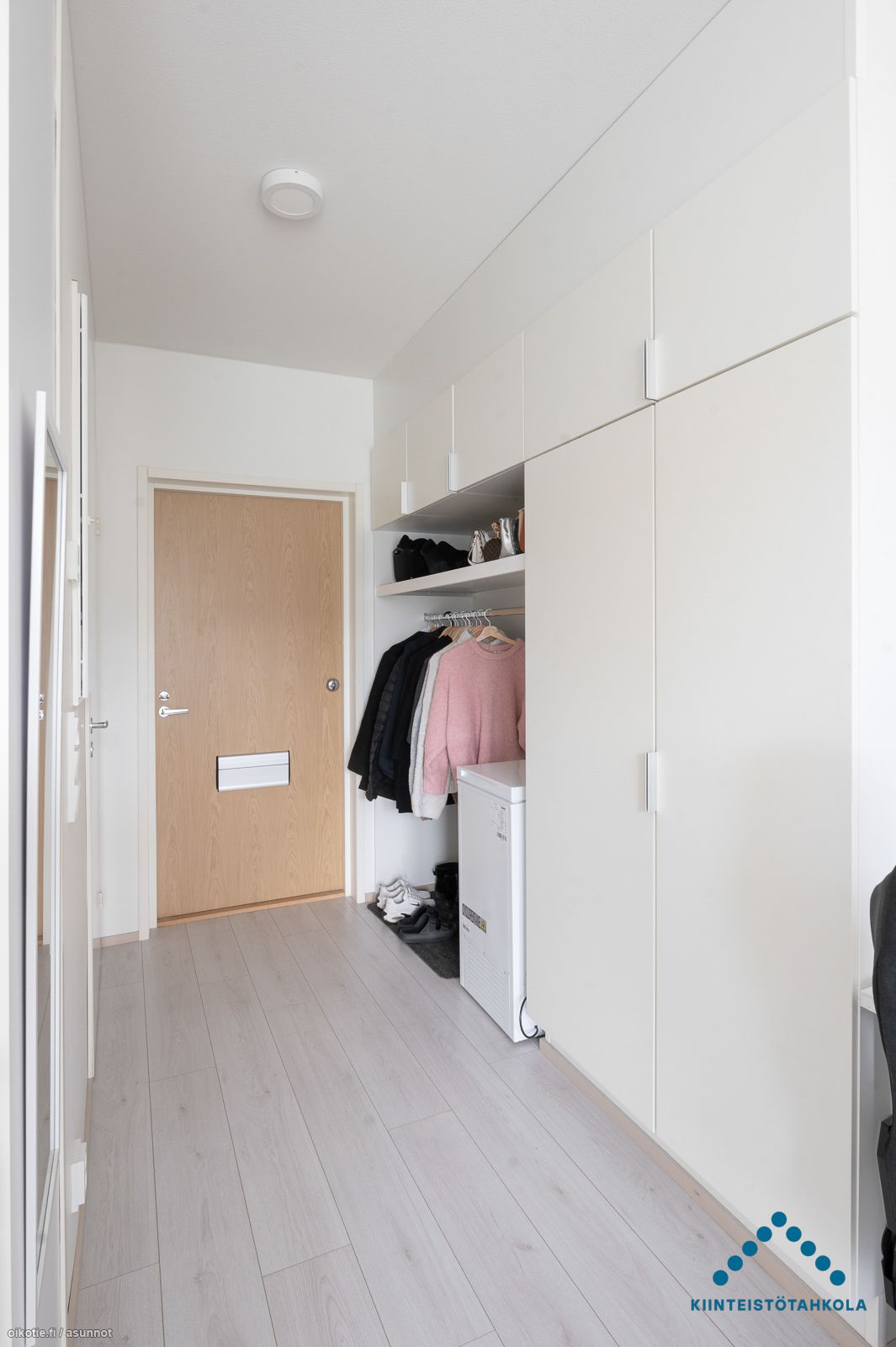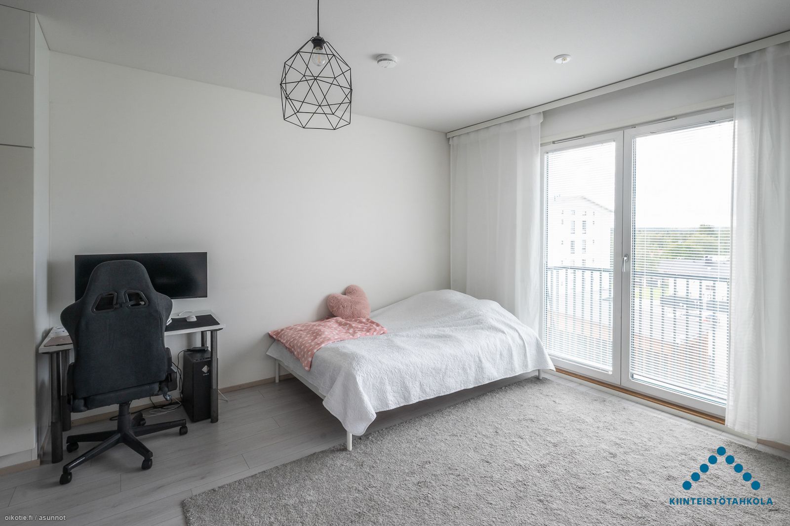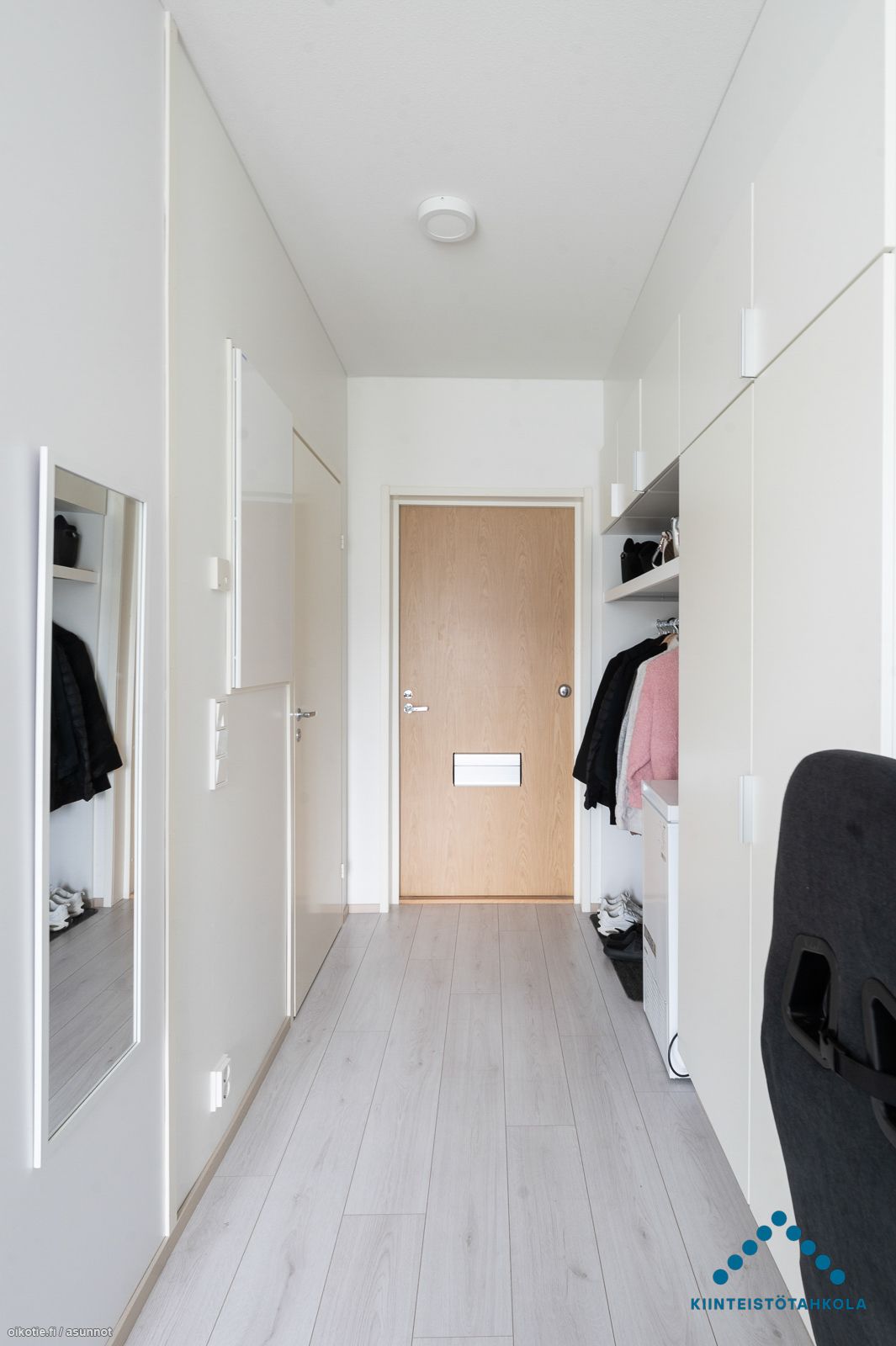 Huoneisto sijaitsee hissitalon talon toisessa kerroksessa, kohde on 2017 valmistunut talo rauhallisella asuinalueella. Huoneisto on sisustukseltaan vaaleasävyinen ja valoisa. Valoisuutta lisäävät mm. isot alas lattiaan asti ulottuvat ikkuna-aukot. Tilava kylpyhuone – wc tila on toimiva ja siellä on varaus pyykinpesukoneelle. Keittiössä on valkoiset kalusteet joihin on integroitu jääkaappi-pakastin ja astianpesukone.