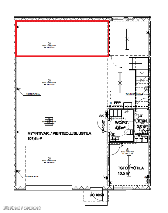 | Huoneiston kokoonpano | Toimisto- ja varastotilaa |