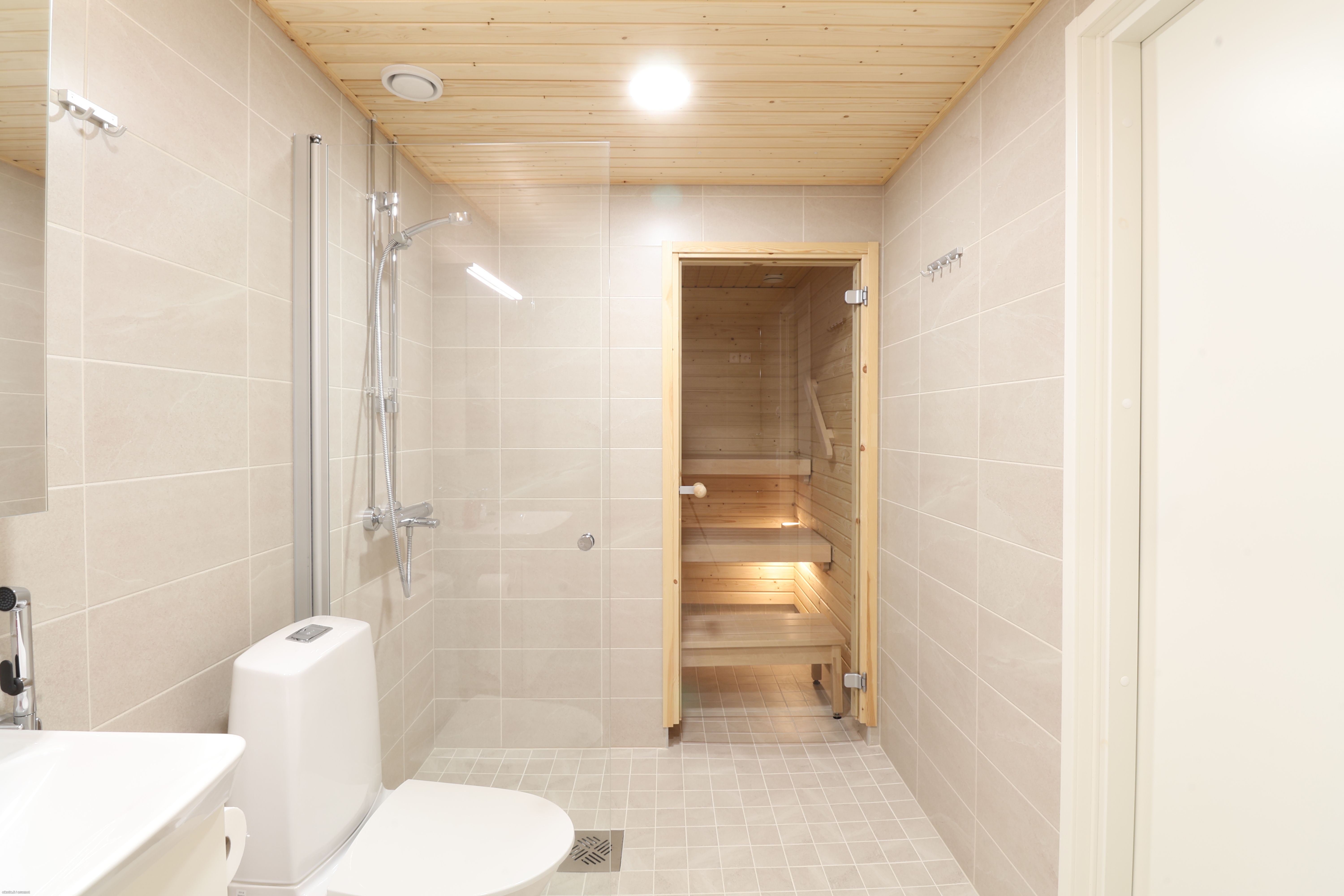 Asunnon lattiat ovat laadukasta laminaattia. Keittiön varustukseen kuuluu keraaminen keittotaso, kalusteuuni, astianpesukone sekä jääkaappipakastin. Huikean kokoisella lasitetulla parvekkeella kelpaa nautiskella vaikka aamukahvit. Tilavassa kylpyhuoneessa on sauna, sekä liitännät pyykinpesukoneelle.