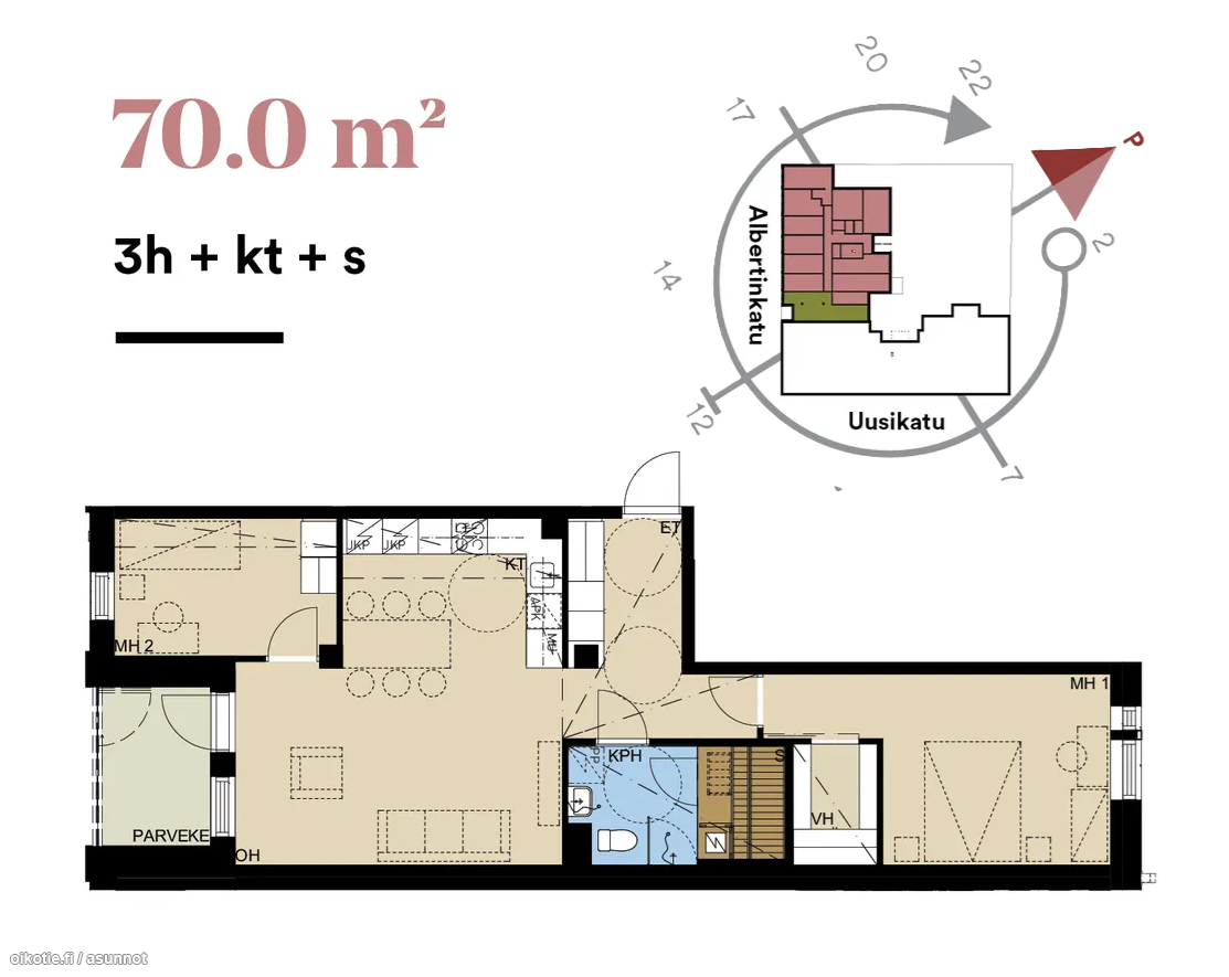 | Huoneiston kokoonpano | 3h,kt, kph, s, lasp |