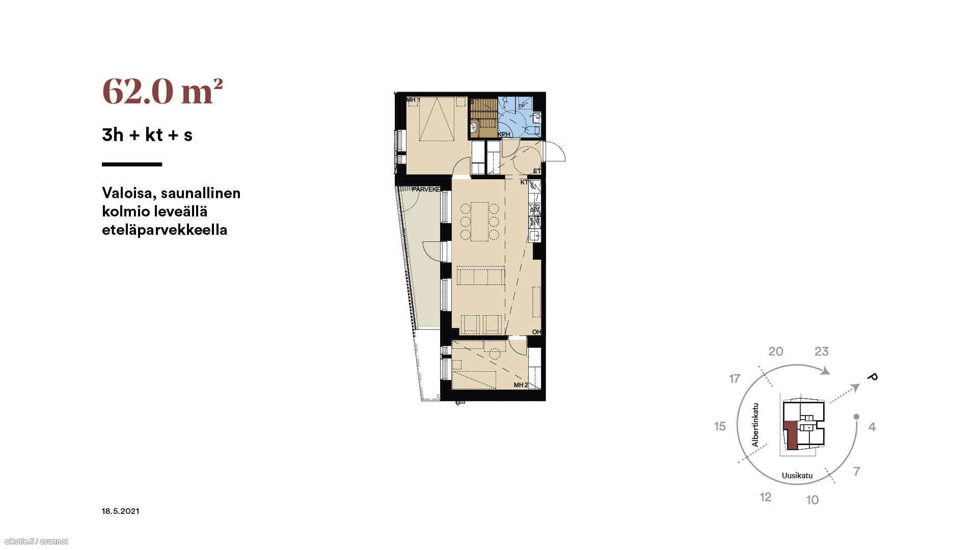 | Huoneiston kokoonpano | 3h,kt, kph, s, lasp |