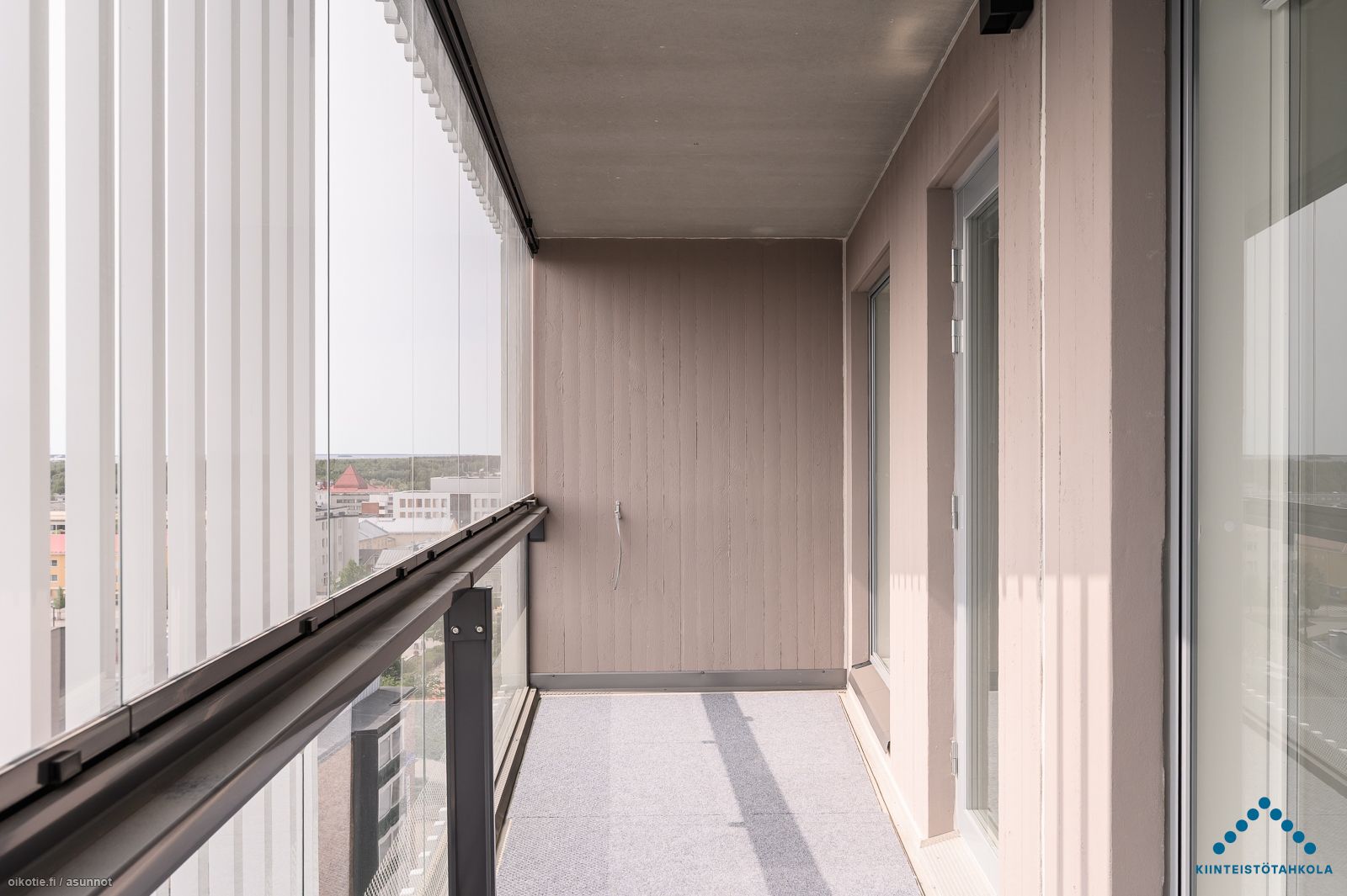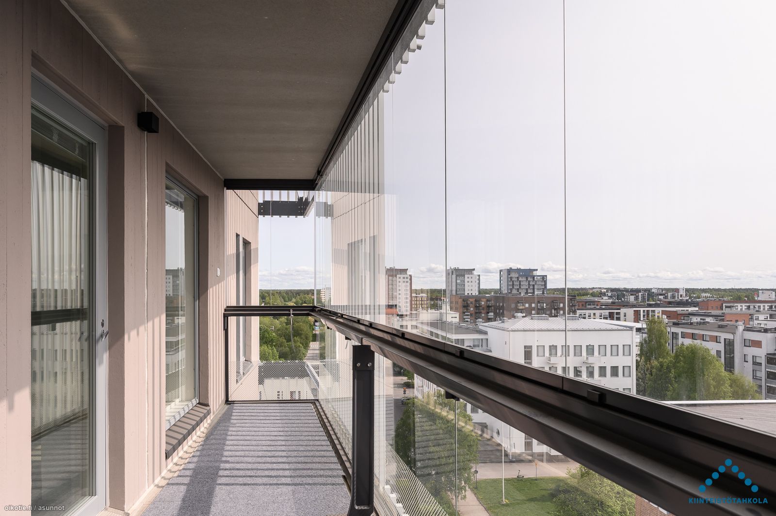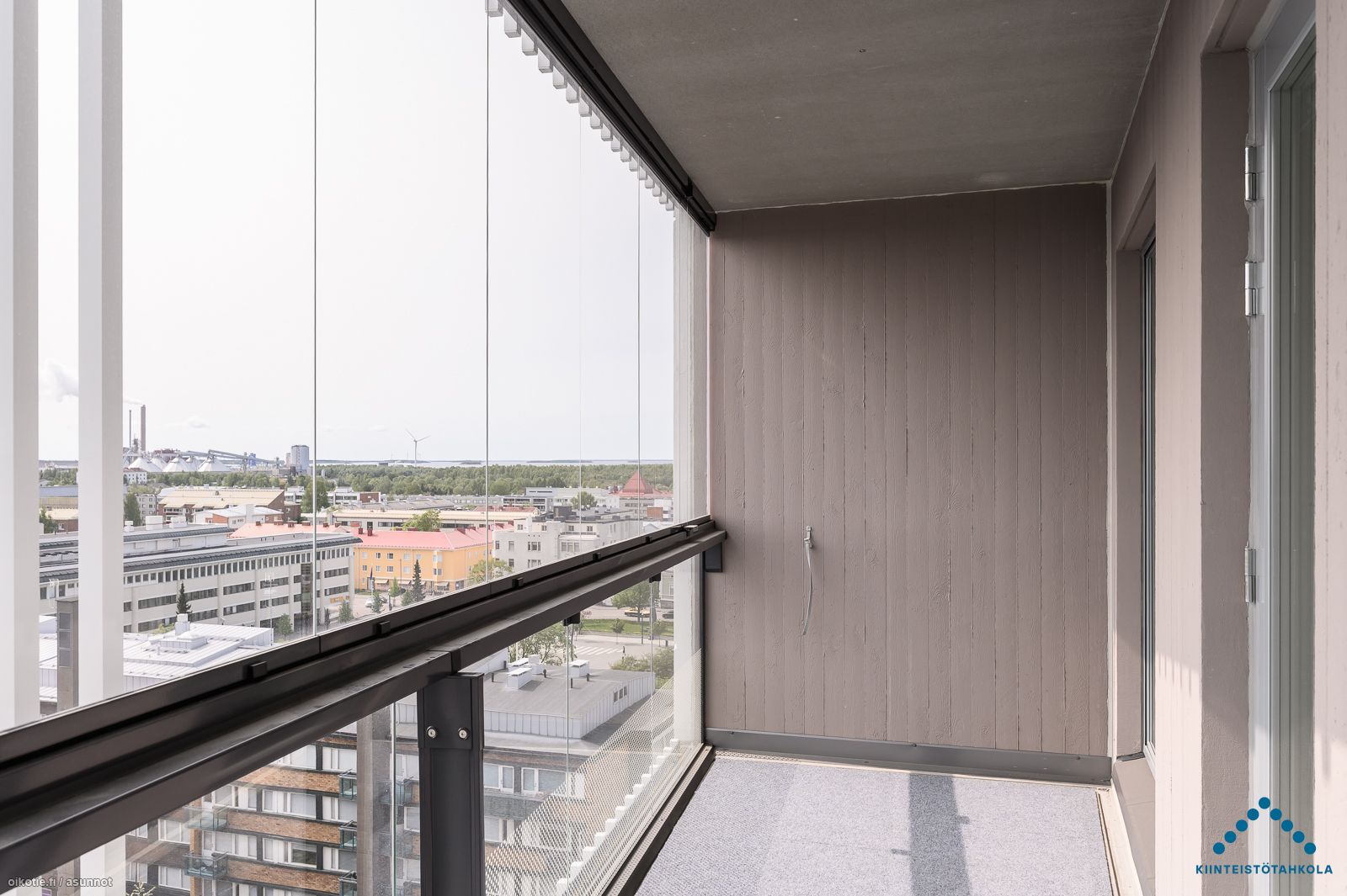 Tilavan lasitetun parvekkeen rauhassa ja upeissa maisemissa viihtyy keväästä pitkälle syksyyn.