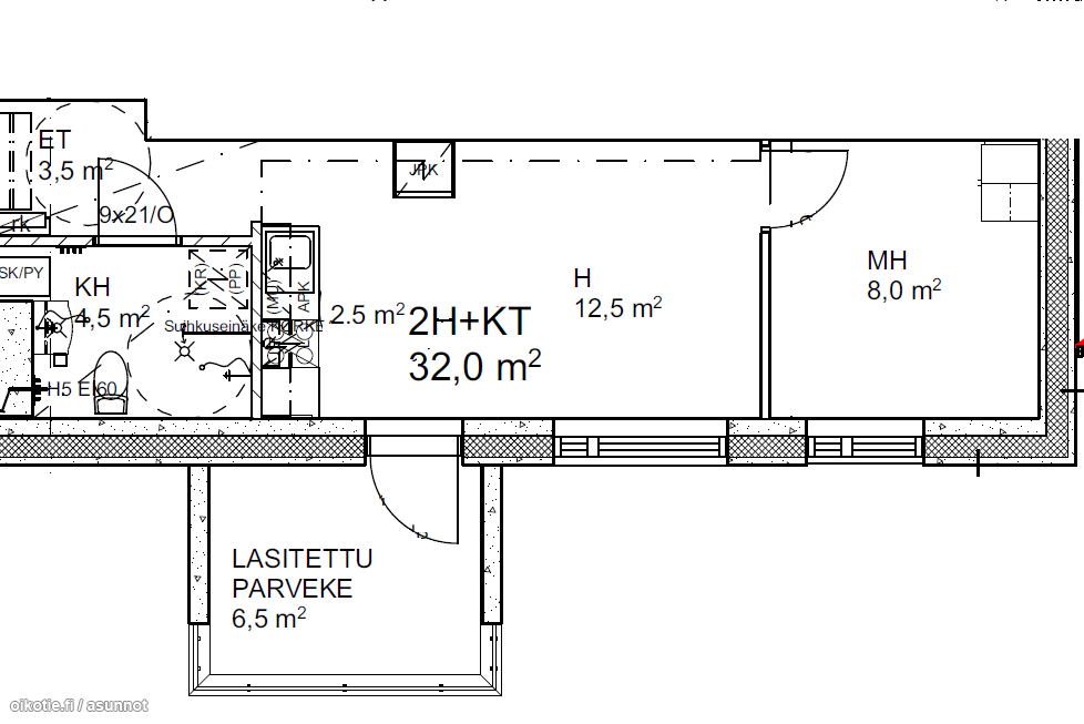 | Huoneiston kokoonpano | 2H+KT+LAS.P. |