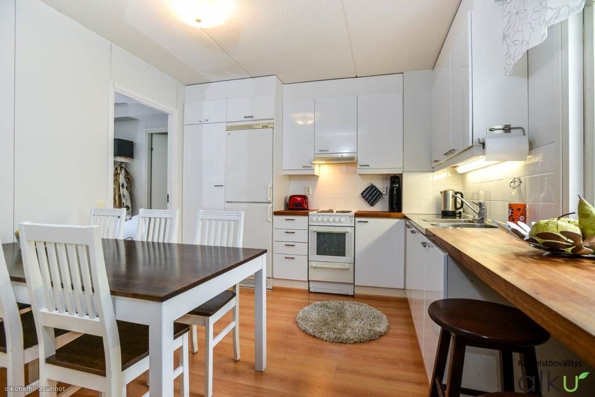 Asunnon lattiat laminaattia ja seinät maalipinnoin. Keittiön varusteluun kuuluu uuni/liesi, jääkaappi/pakastin sekä astianpesukone. Kaakeloidussa kylpyhuoneessa paikka ja liitäntä pyykinpesukoneelle. Asumismukavuutta lisäämässä oma sauna sekä lasitettu parveke. Asunnon vuokraan sisältyy autohallipaikka. Lemmikit ovat tähän kotiin tapauskohtaisesti neuvoteltavissa.