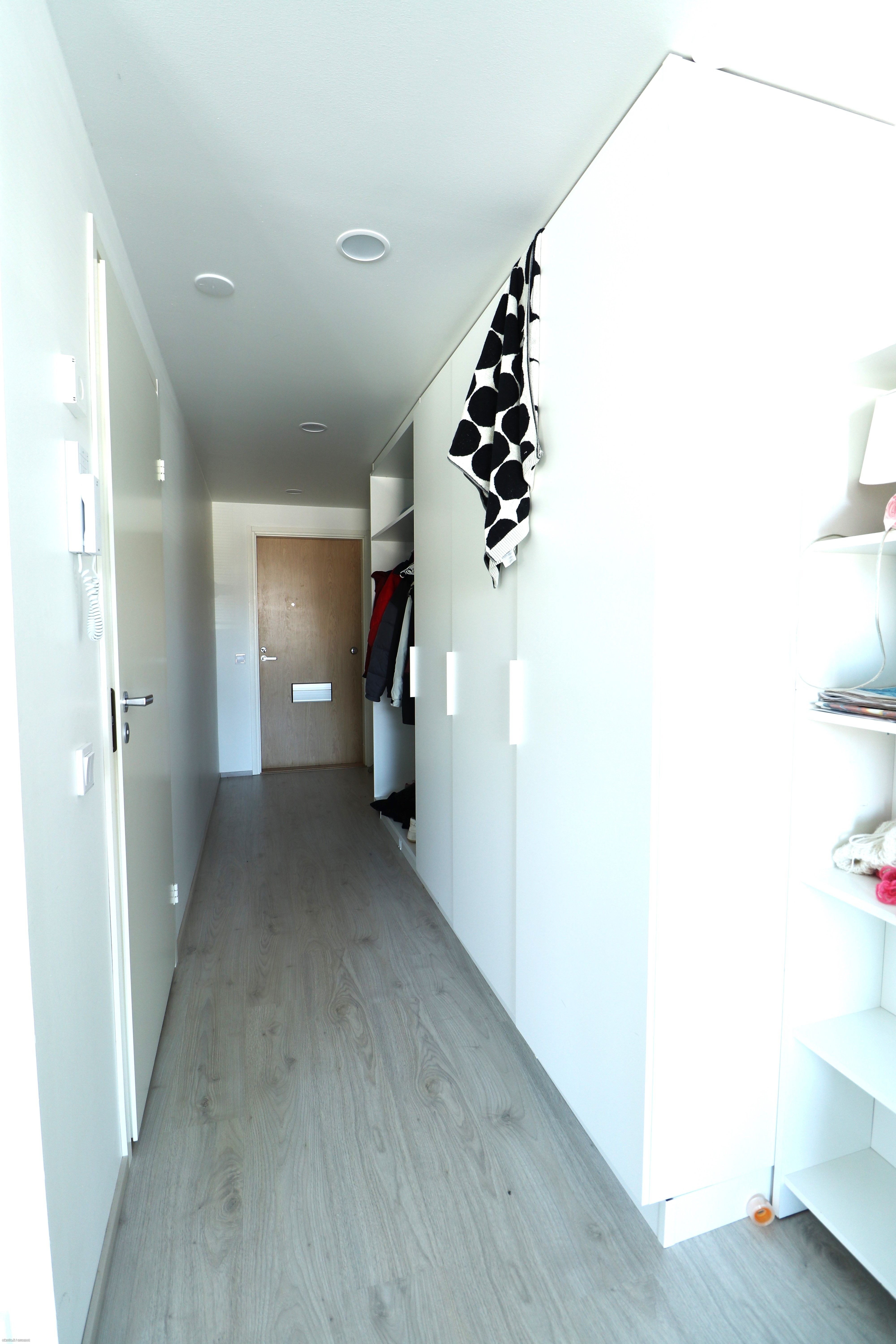 Tämän viidennen kerroksen (5/8) asunnon lattiat ovat tyylikästä lautaparkettia ja seinät vaalealla maalipinnalla. Keittiössä on asian mukainen varustus, astianpesukone, keraaminen keittotaso, kalusteuuni ja jääkaappipakastin. Tilavassa kaakeloidussa kylpyhuoneessa on paikka omalle pyykkikoneelle. Tässä tilavassa kaksiossa on myös lasitettu parveke lisäämässä viihtyvyyttä.