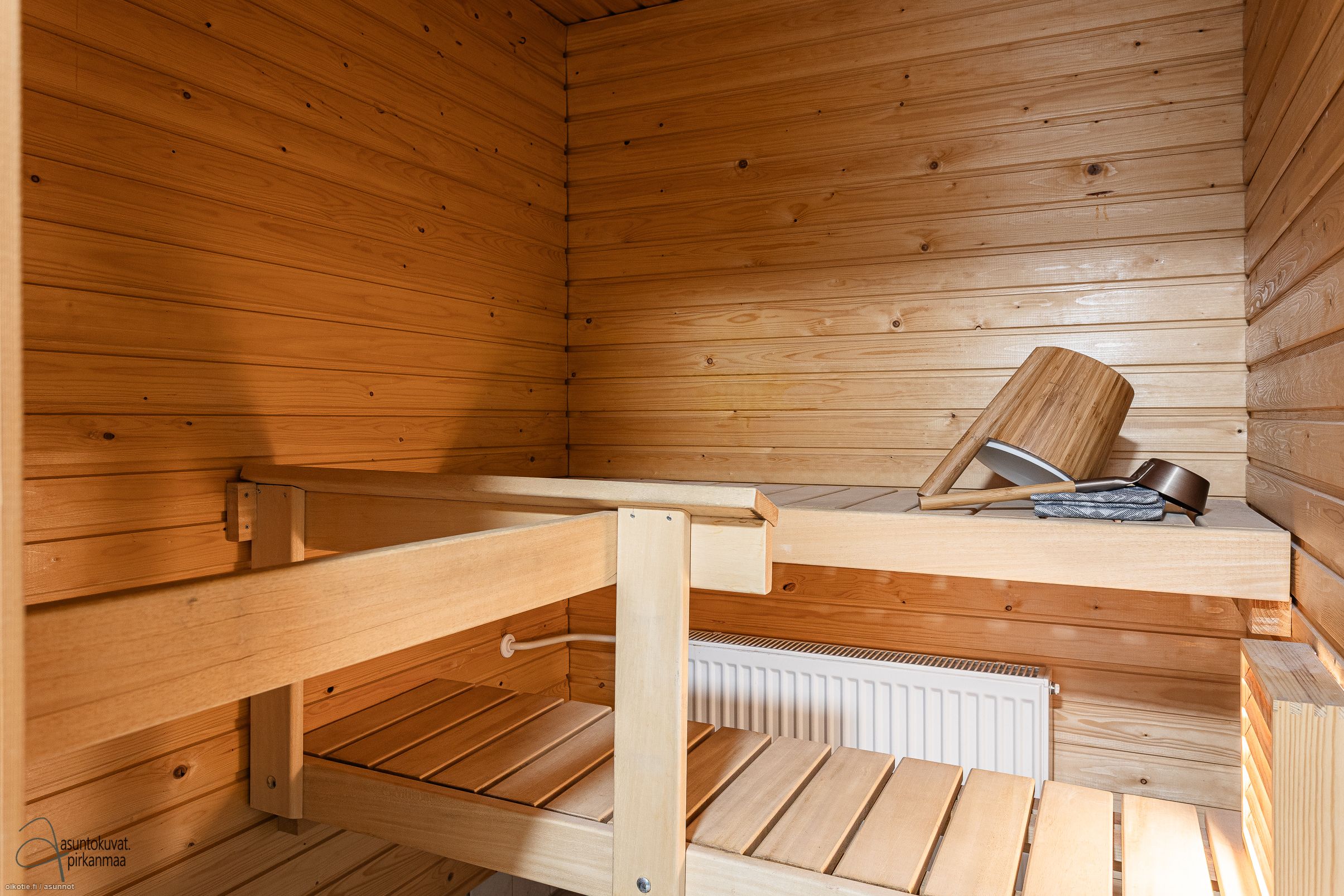 | Saunan lisätiedot | Varusteet: Sähkökiuas. Hyväkuntoinen ja siisti, tilava sauna. Seinämateriaali: Puuseinä, Paneeliseinä. Lattiamateriaali: Laattalattia |