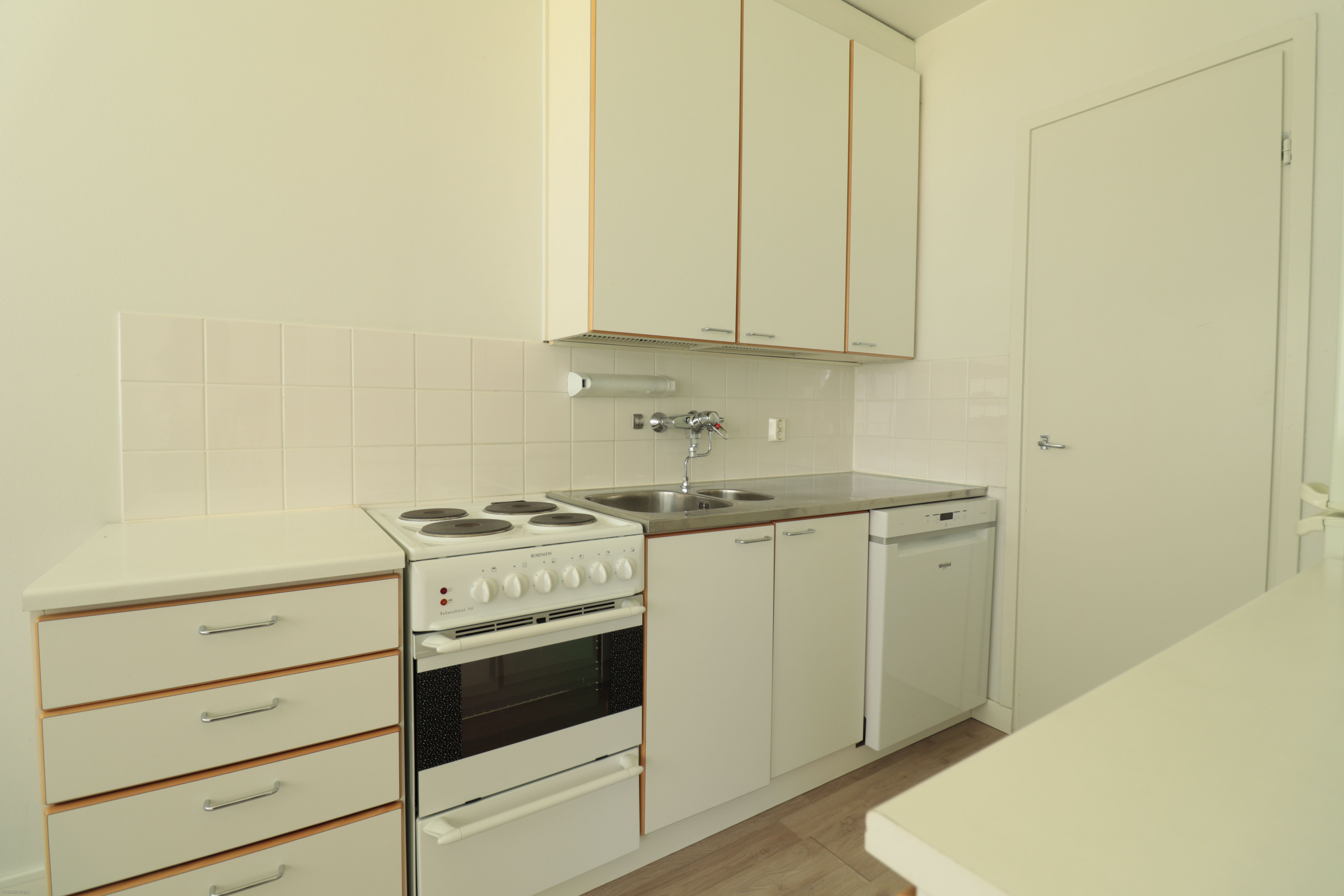 Tämän hyväkuntoisen asunnon keittiön varusteluun kuuluu astianpesukone, liesi/uuni sekä jääkaappipakastin. Keittiöstä ja eteisestä kulku kylpyhuoneeseen, jossa valmiina päältä täytettävä pyykinpesukone. Kahdessa tilavassa makuuhuoneessa molemmissa mukavasti kaappitilaa. Olohuoneesta käynti parvekkeelle.