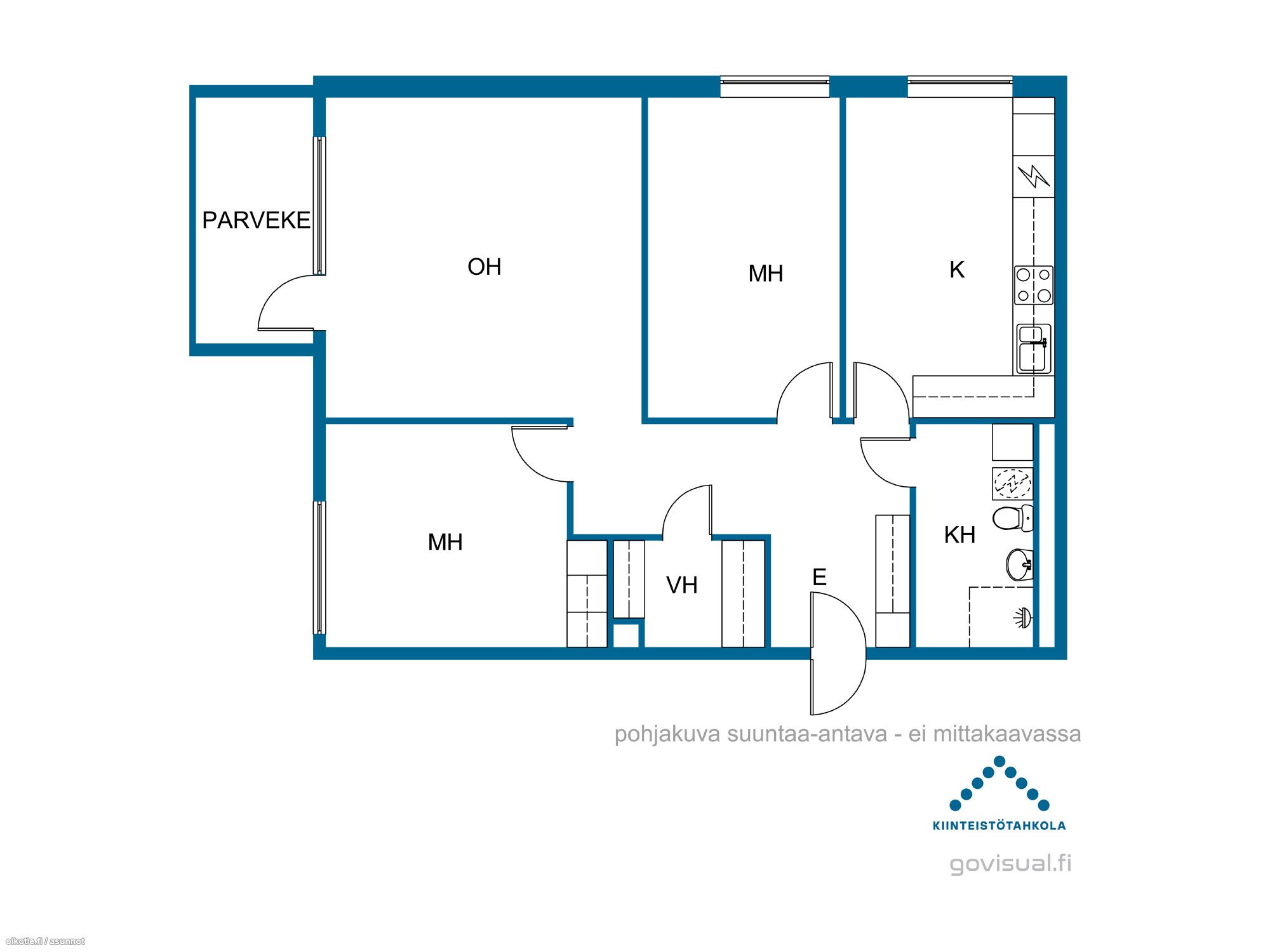 | Huoneiston kokoonpano | 3h,k,kh,las.parv. |