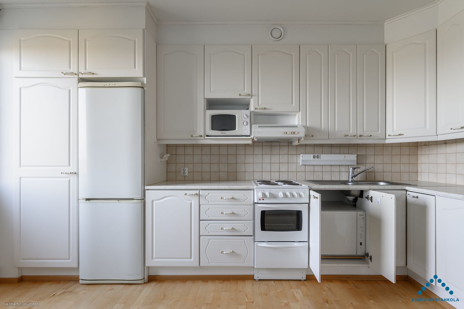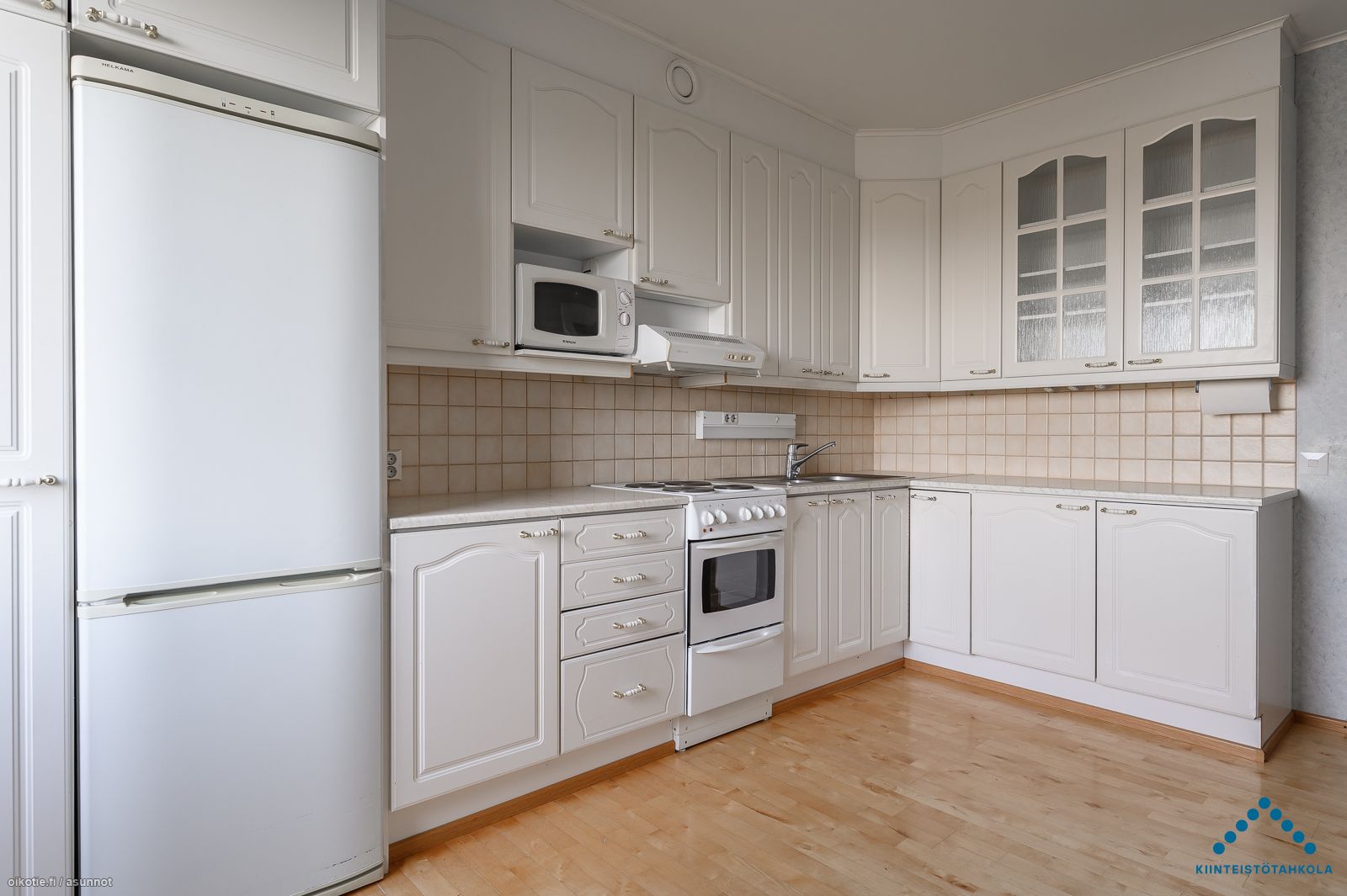 | Keittiön varusteet | Varusteet: Jääkaappipakastin, Astianpesukoneliitäntä. Työtaso: Laminaattitaso. Liesi: Mikroaaltouuni, Sähköliesi, Liesituuletin |
