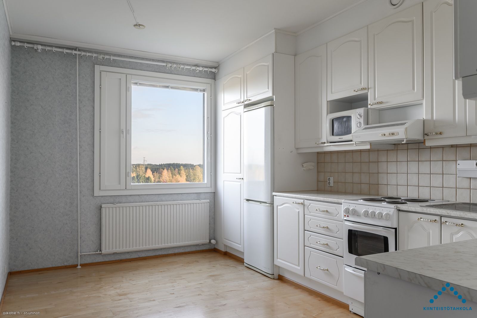 Valtatie 79:ssä 7.kerroksessa sijaitseva 77,5 neliön koti odottaa asujia Tuiran rauhallisessa ja palvelurikkaassa ympäristössä. Oulun keskustaan on vain 2,5 kilometriä, Kalliolan päiväkoti löytyy 200 metrin päästä ja Merikosken koulu kilometrin etäisyydeltä. Tuiran uimaranta kutsuu virkistäytymään 600 metrin kävelymatkan päässä.