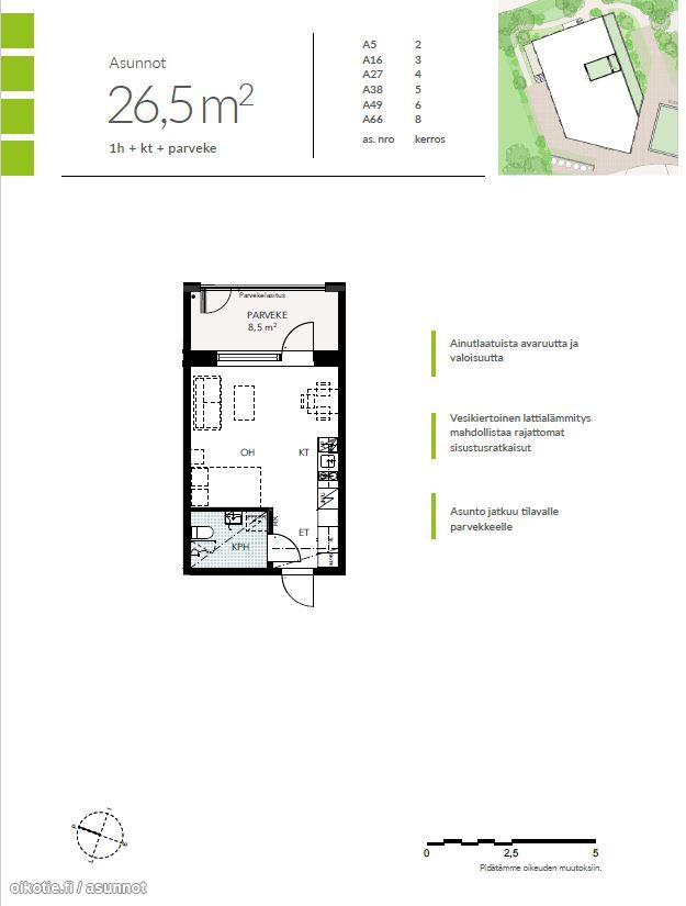 | Huoneiston kokoonpano | 1h+kt+parv |