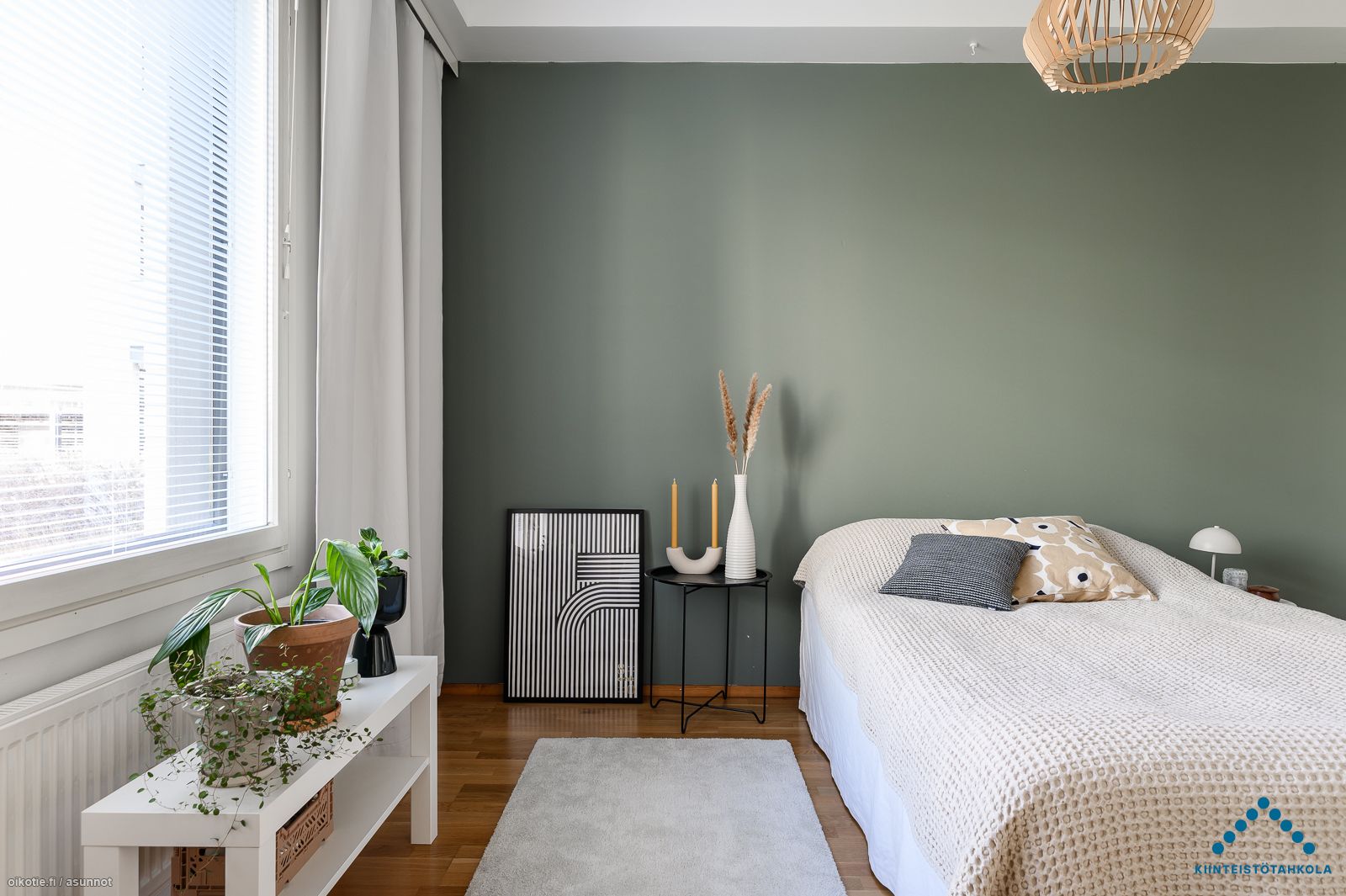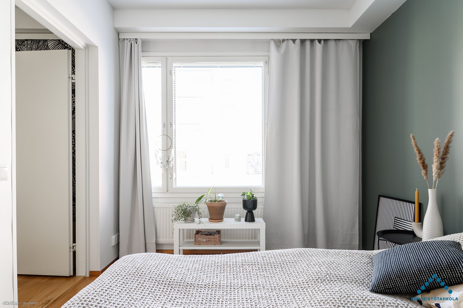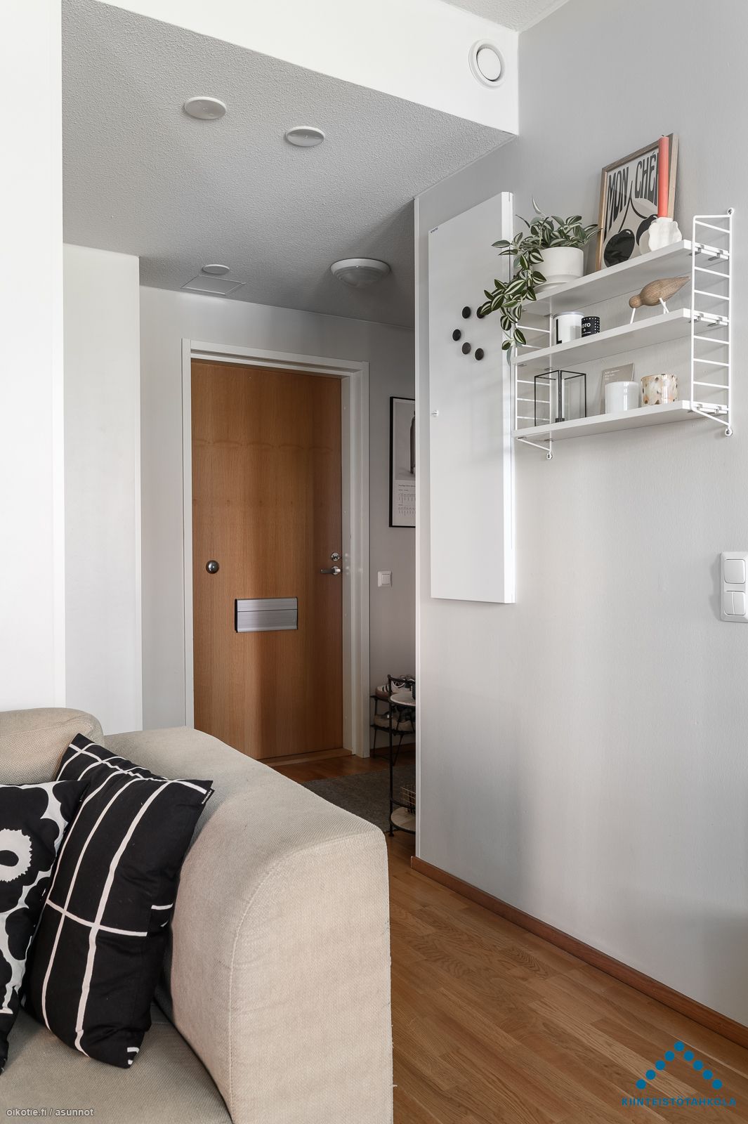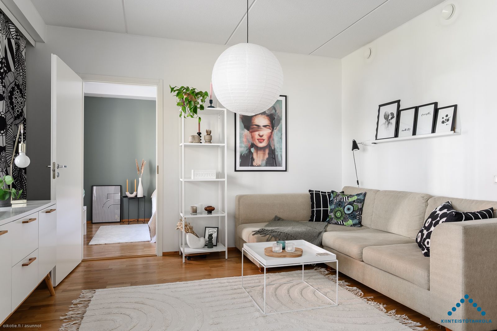 Hyväkuntoisessa asunnossa on parkettilattia ja vaaleaksi maalatut seinät. Keittiökalusteet ovat ajattoman väriset ja työtasoina laadukkaat kivitasot. Huoneistossa on erillinen kodinhoitotila, jossa myös toinen WC sekä liitännät pyykinpesukoneelle. Oma sauna ja tilava lasitettu parveke täydentävät miellyttävän kokonaisuuden.