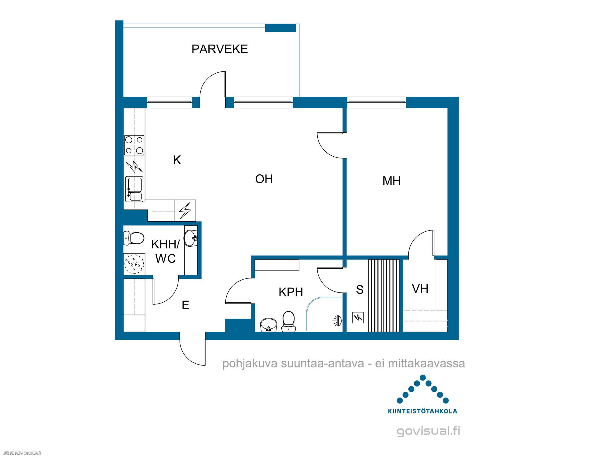 | Huoneiston kokoonpano | 2h, k, vh, s, las. parveke, ak |