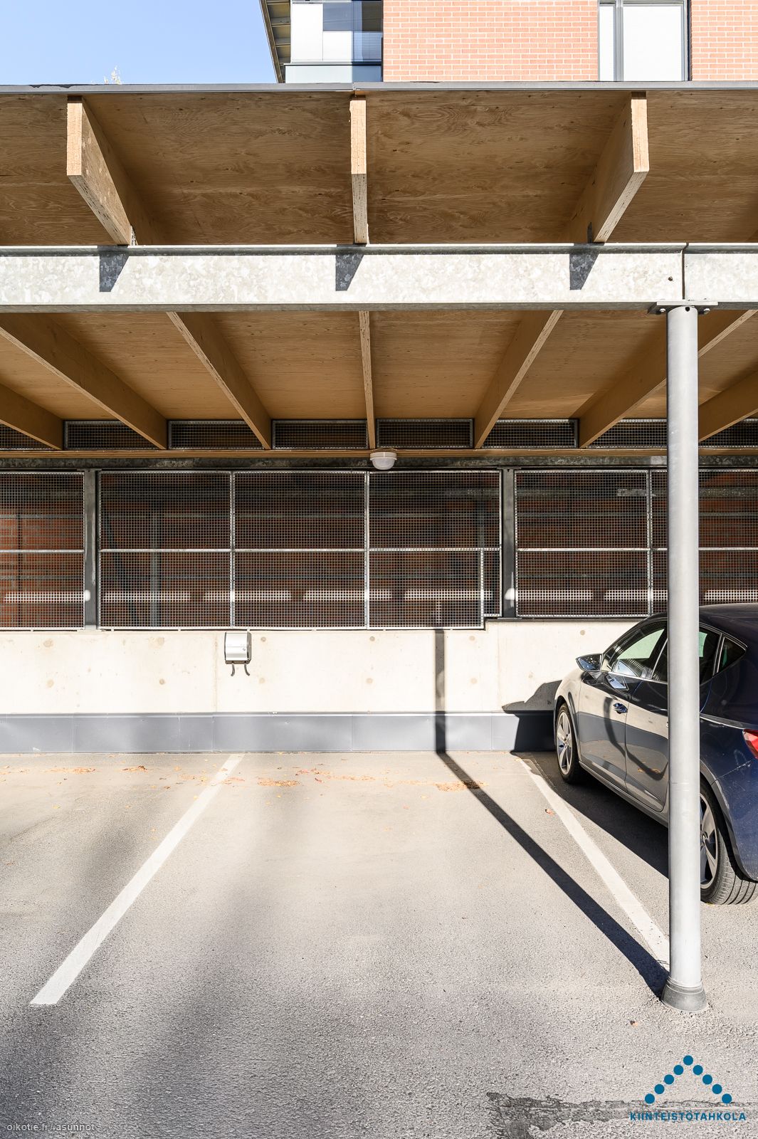 Asunnon mukana myydään autokatospaikka yhtiön pihapiiristä erillisinä osakkeina velattomaan hintaan 4000 euroa. Huoneisto ja autopaikka vapautuvat uudelle omistajalle sopimuksen mukaan alkuvuodesta 2026.