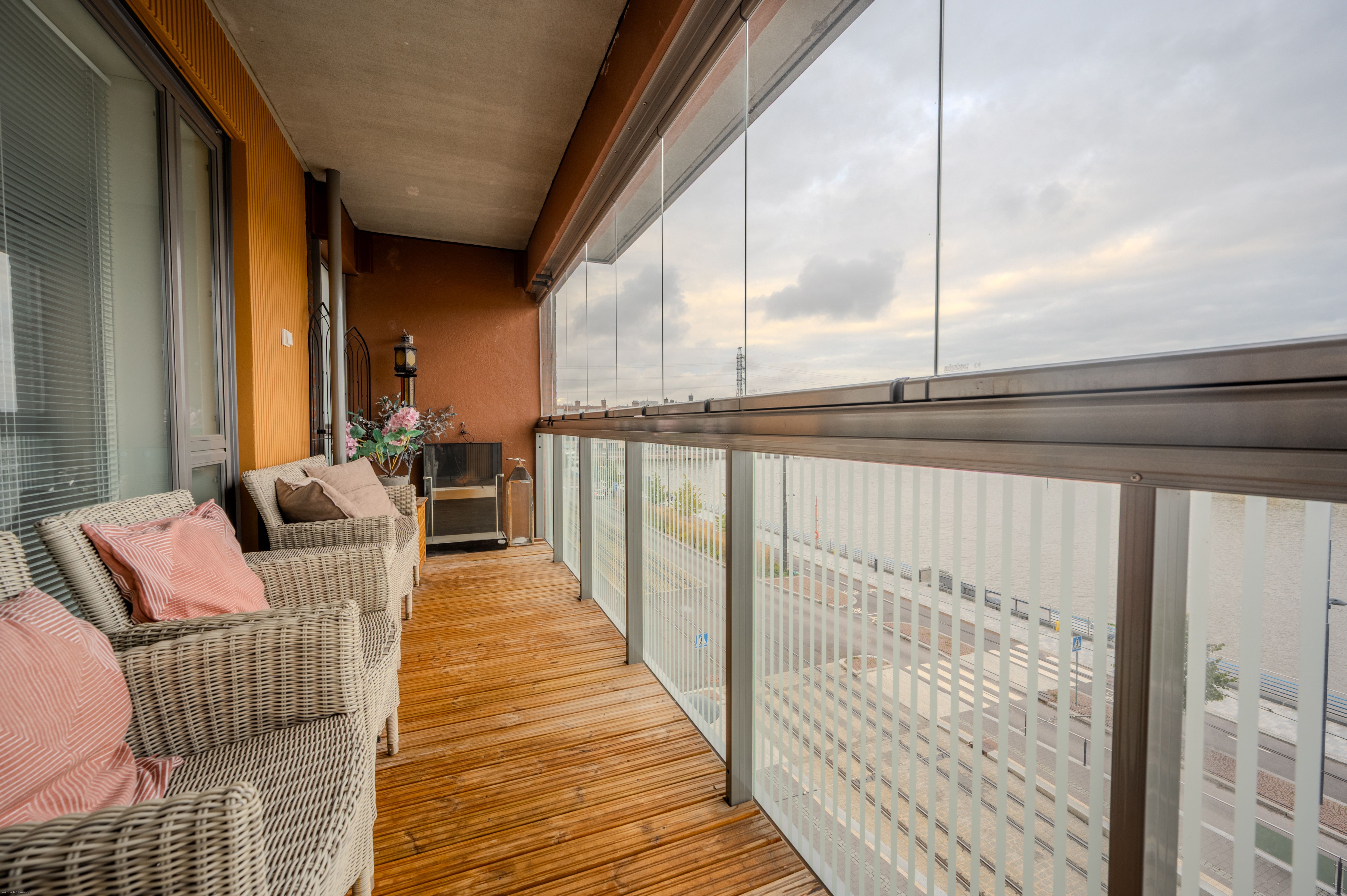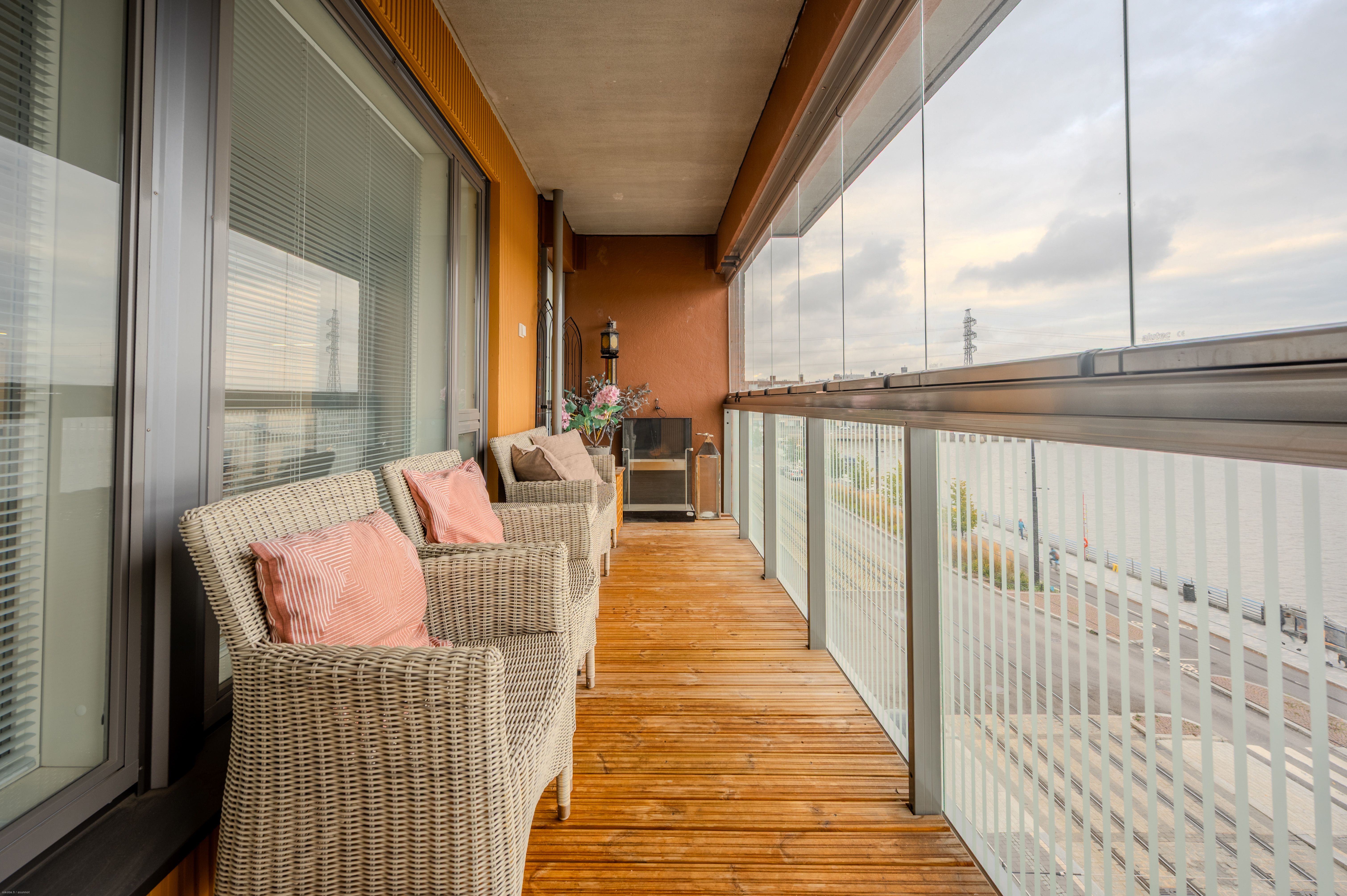 | Parvekkeen lisätiedot | Lasitettu parveke, Sisäänvedetty parveke. Parvekkeen ilmansuunta: Itä. Lasitettu parveke upealla merinäköalalla |