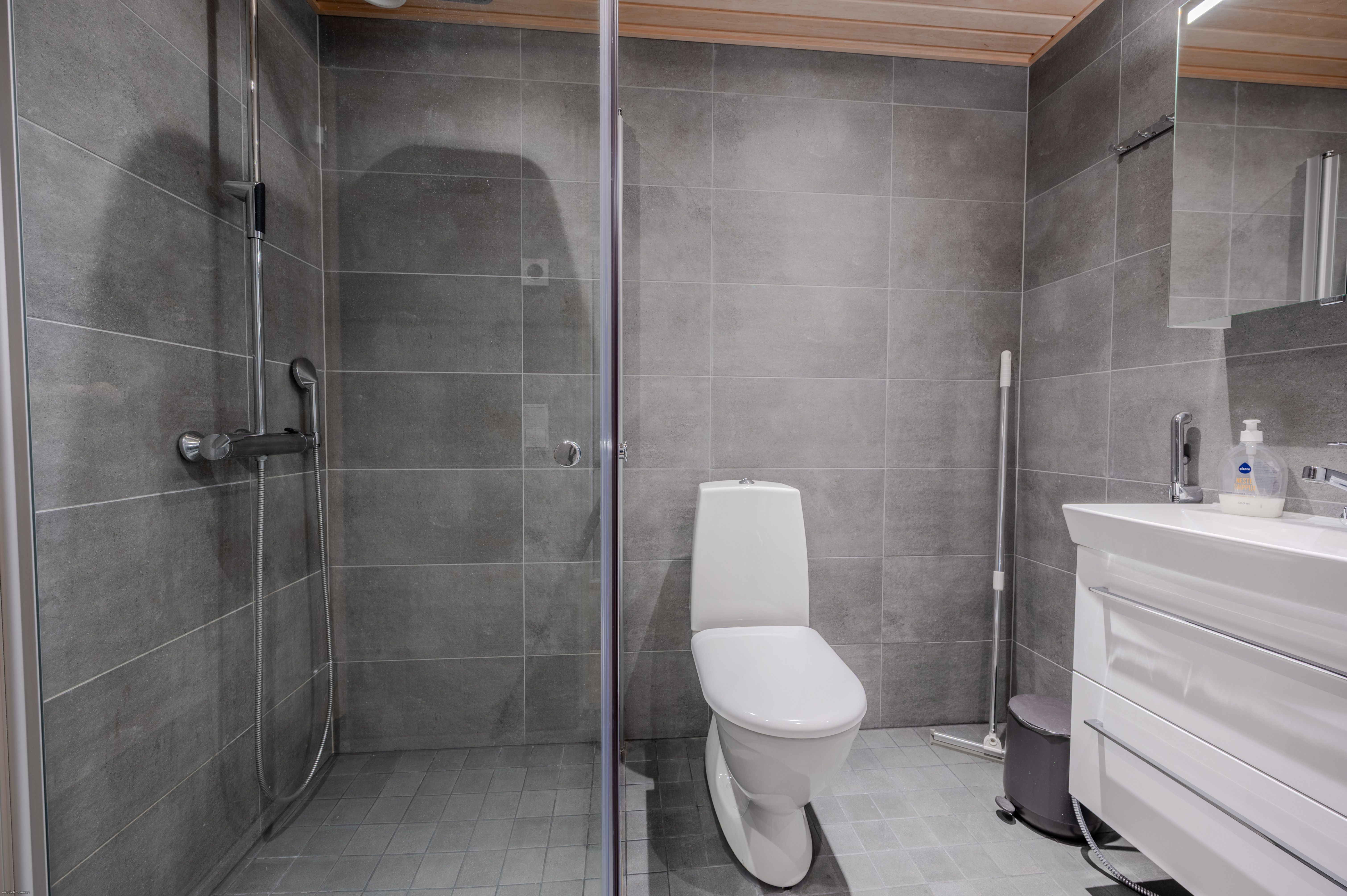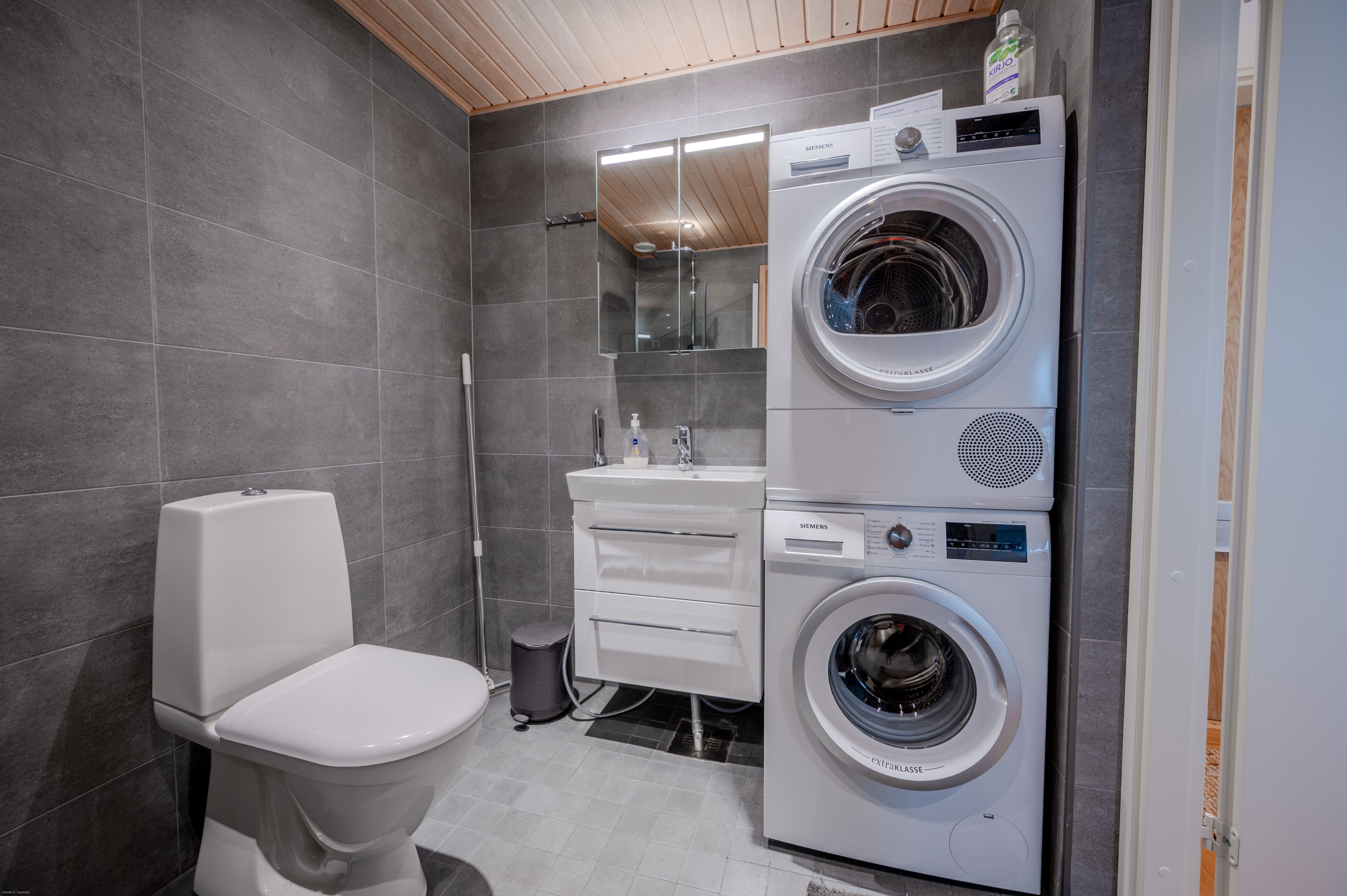 | Kylpyhuoneen varusteet | Varusteet: Suihkuseinä, Pesukoneliitäntä, WC, Suihku, Lattialämmitys |