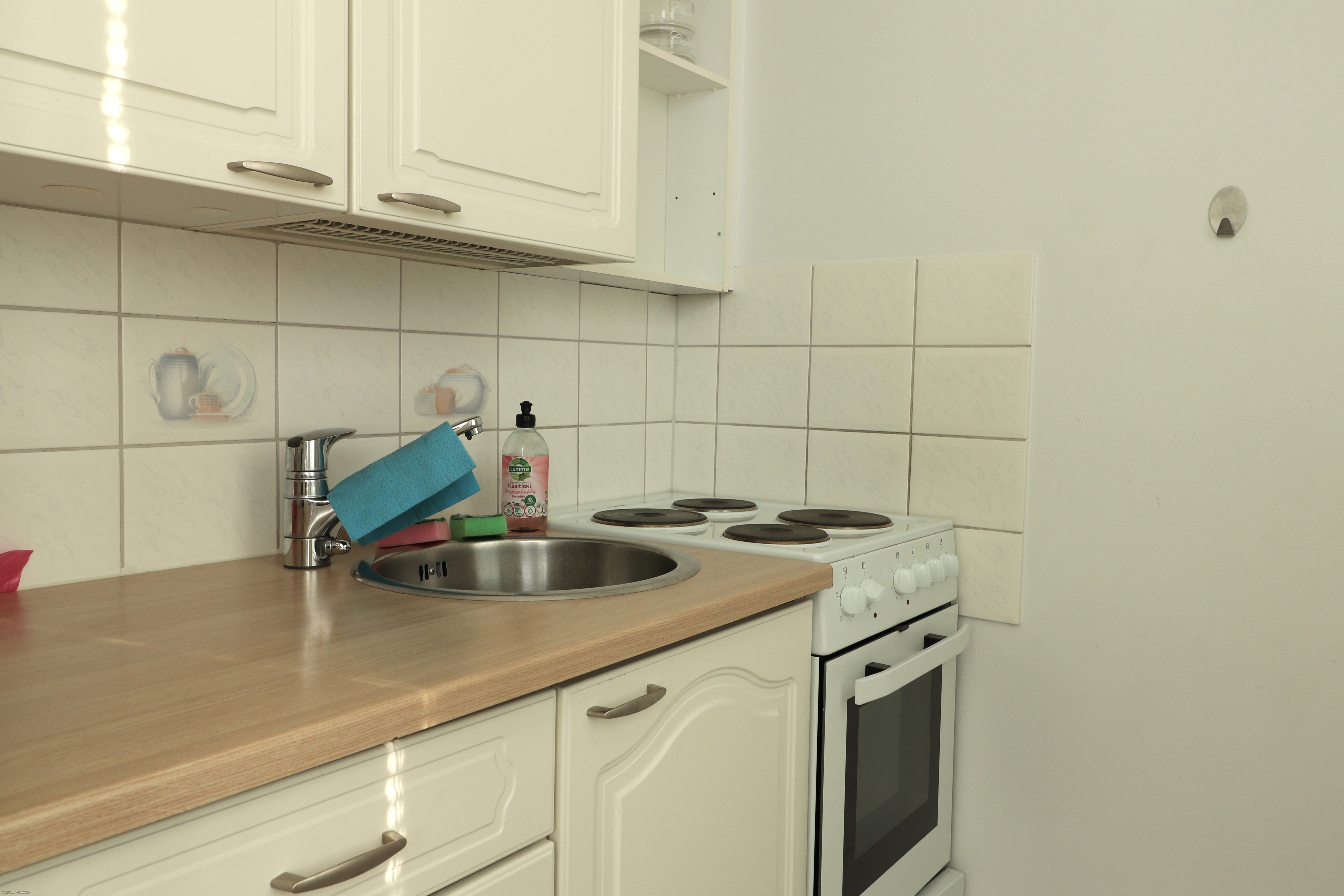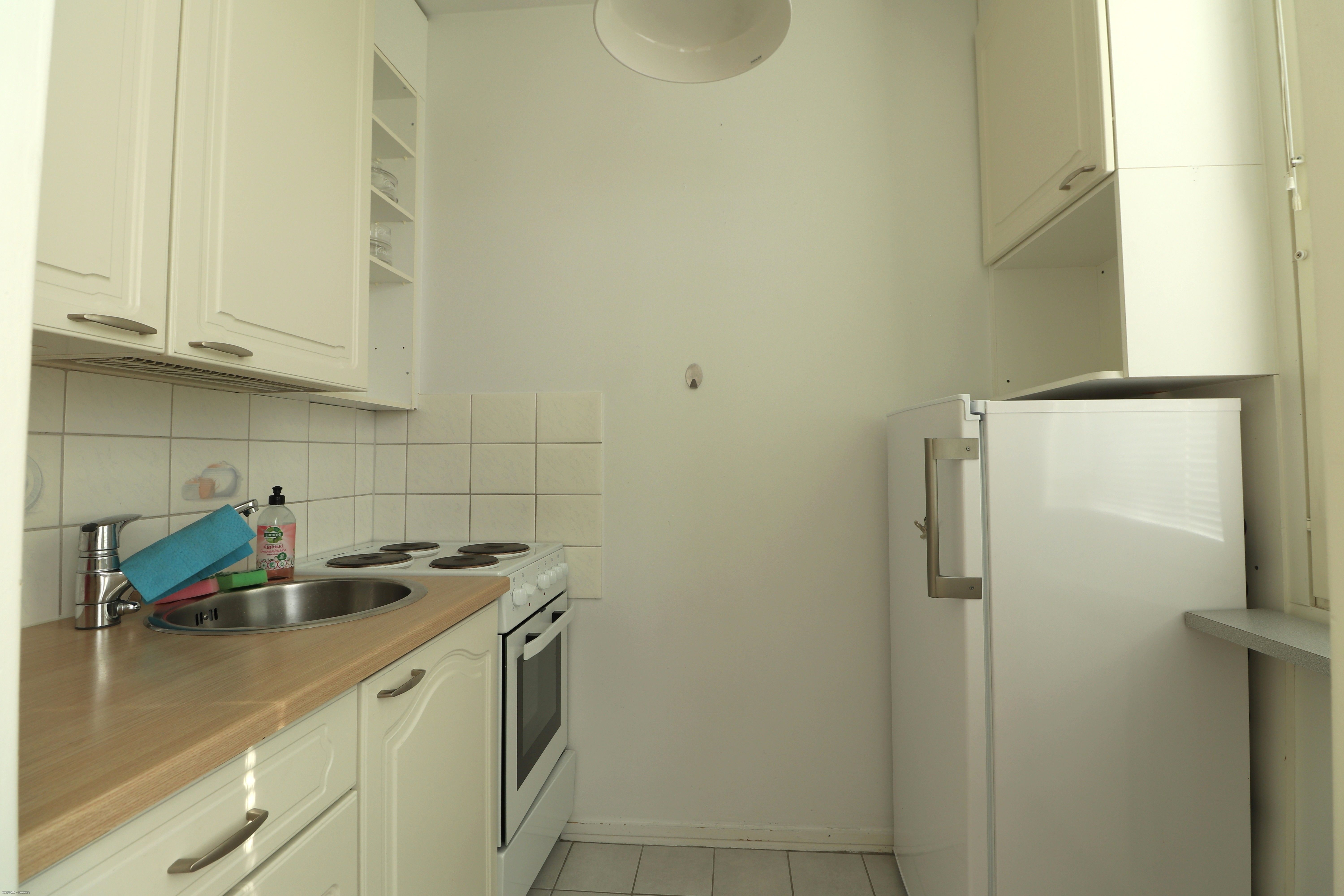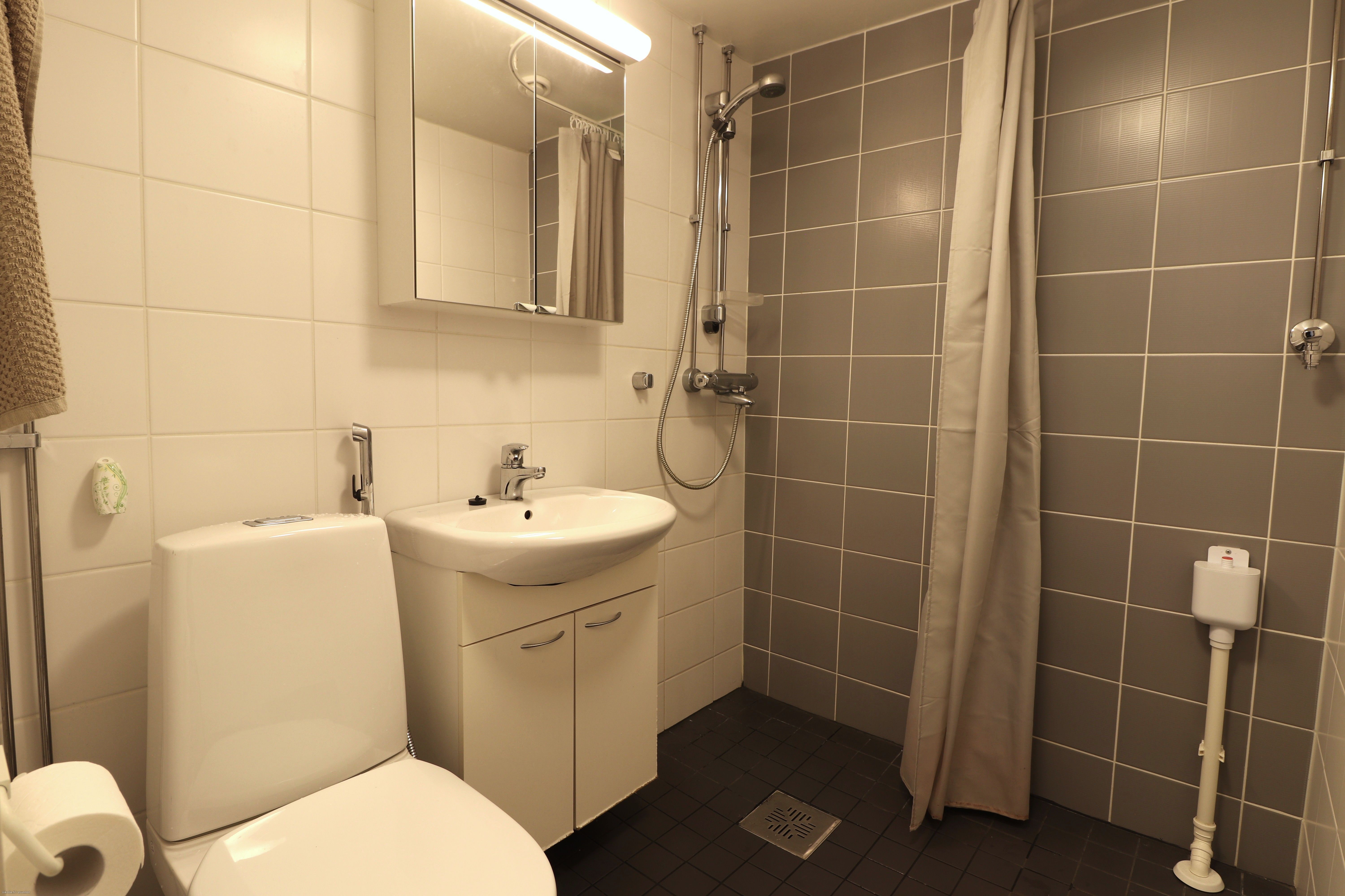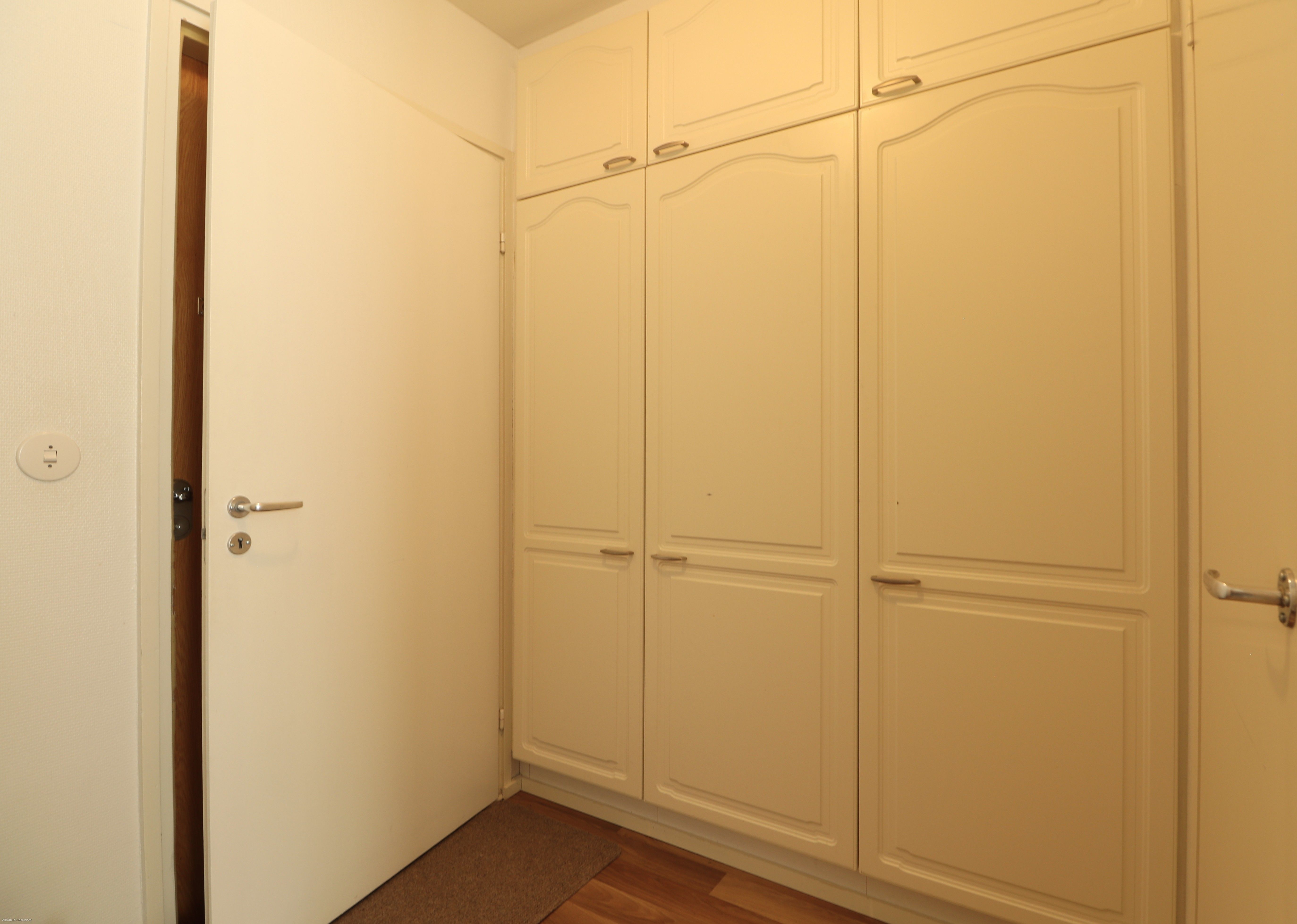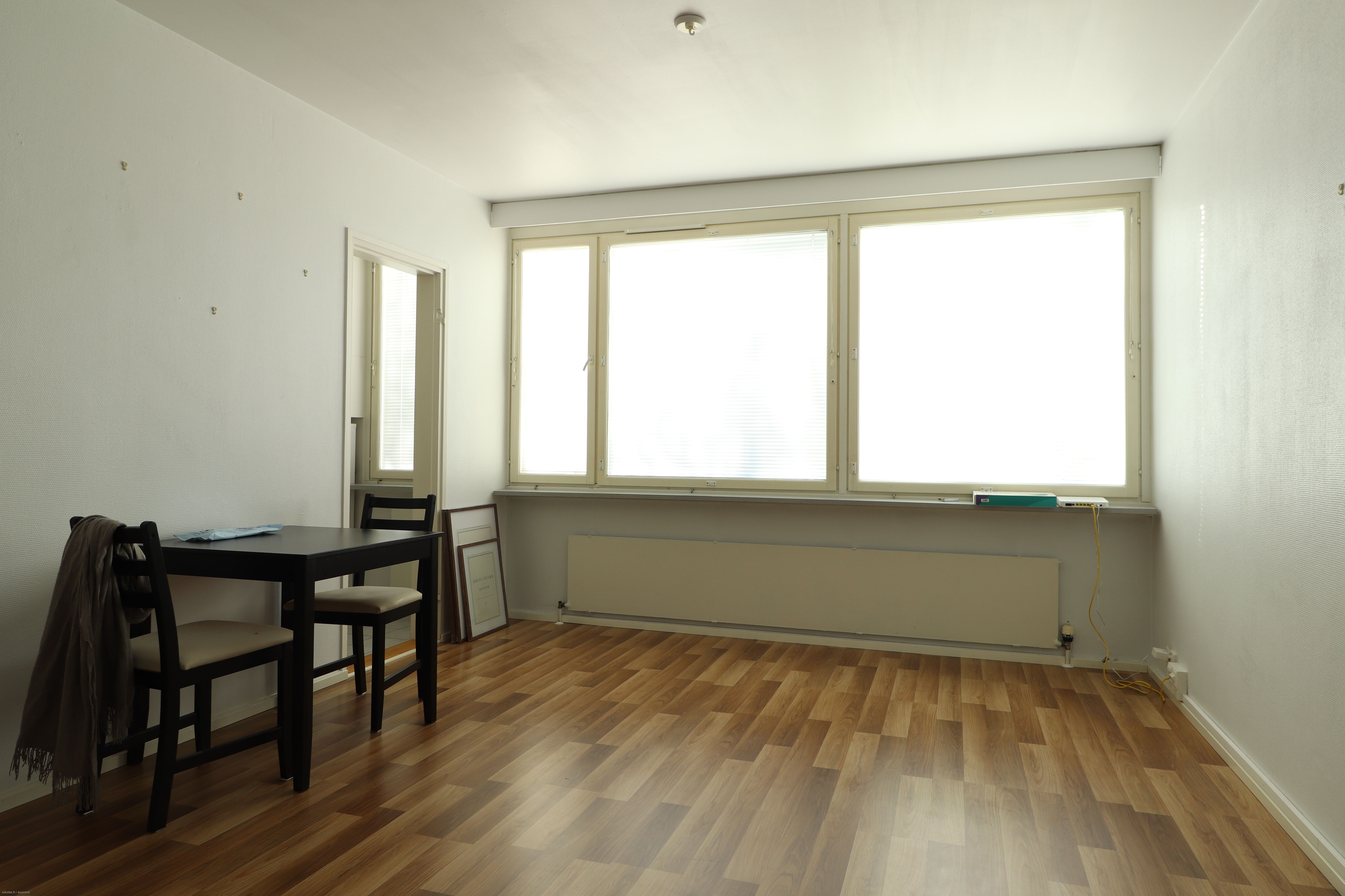 Asunnossa hyvä pohjaratkaisu, alkovi ja iso kylpyhuone. Lattioissa on laminaatit, seinät maalipinnoin. Kylpyhuoneessa on paikka pyykinpesukoneelle (päältätäytettävä mahtuu paremmin).