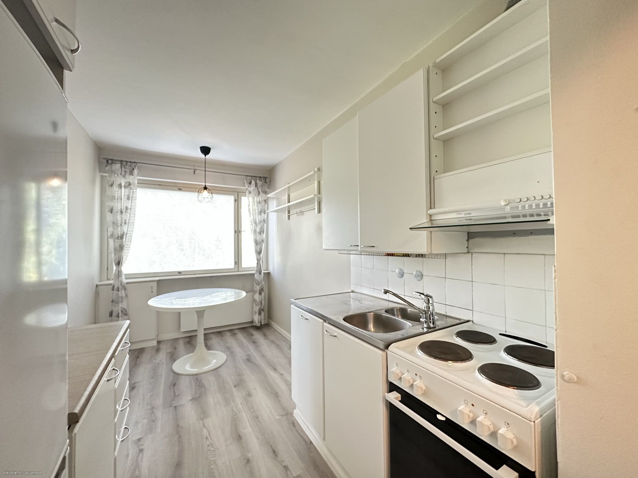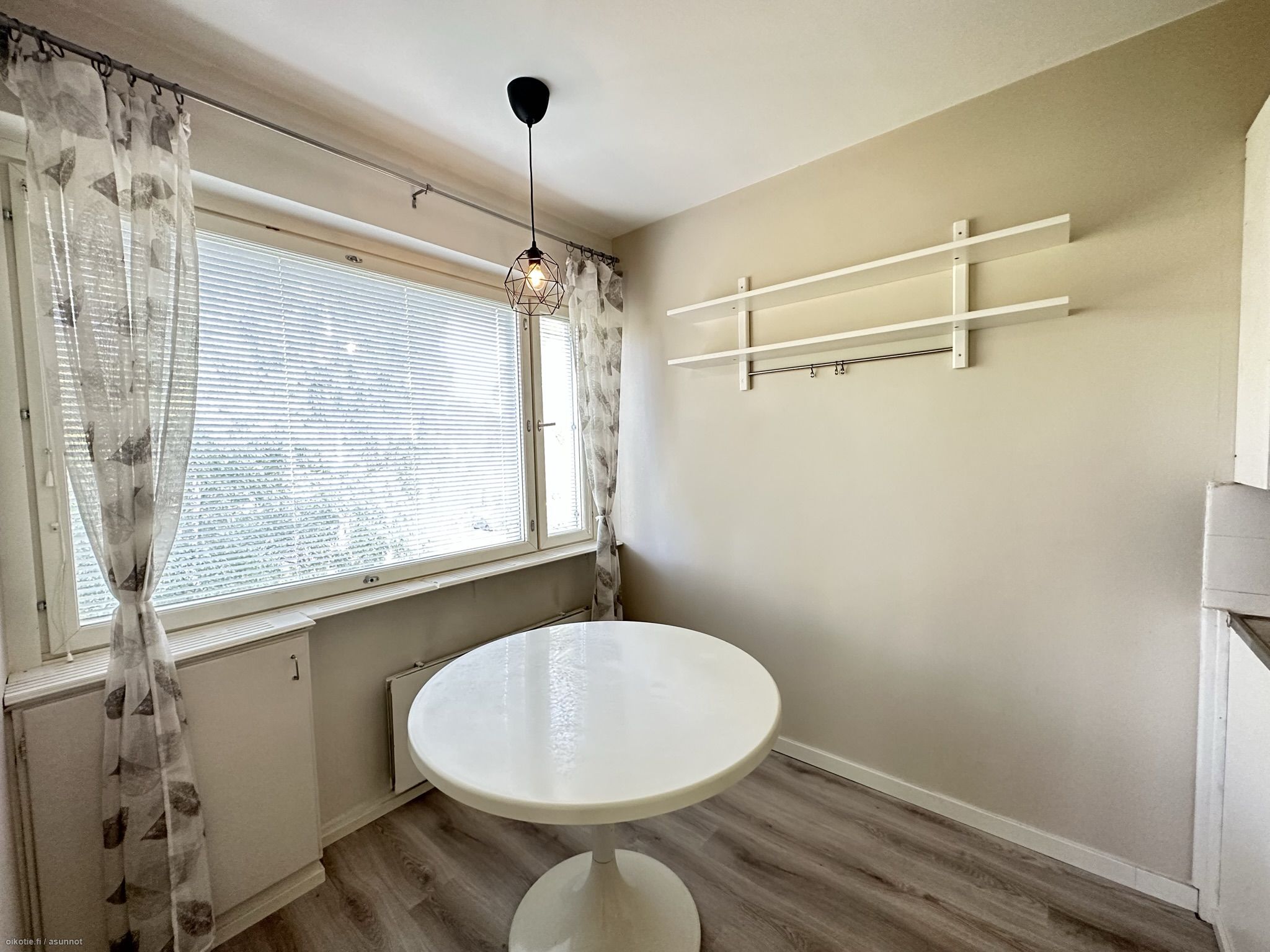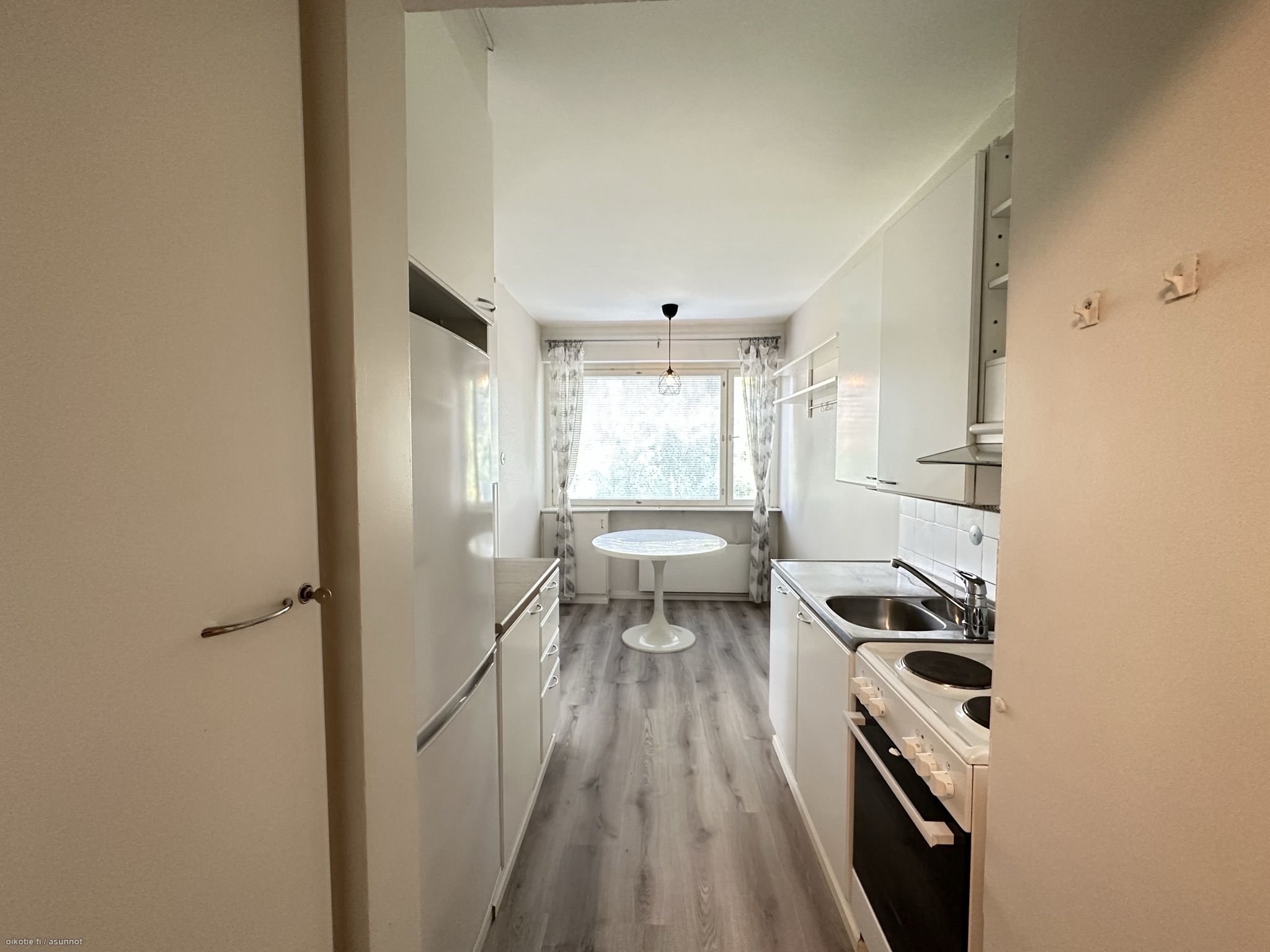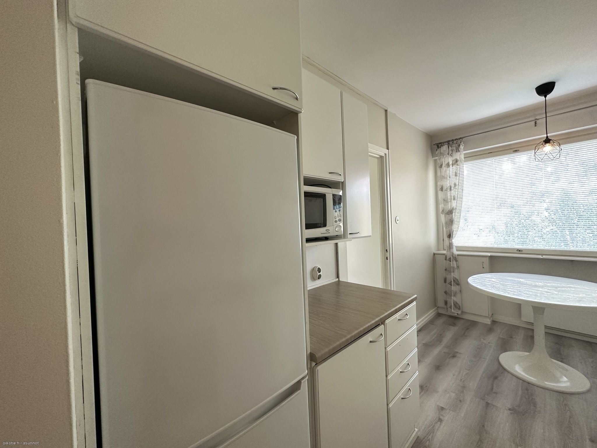 Asunnon seinät vaalein pinnoin ja lattiat laminaattia. Keittiössä varusteluna jääkaappi-pakastin ja liesi. Halutessaan vuokralainen saa käyttöönsä astianpesukoneen, jonka hankinnan ja asennuksen vuokranantaja kustantaa. Keittiössä myös kivasti kaappitilaa sekä työtasotilaa. Kylpyhuone uusittu putkiremontin yhteydessä muutama vuosi sitten ja sieltä löytyy paikka sekä liitäntä pyykinpesukoneelle.