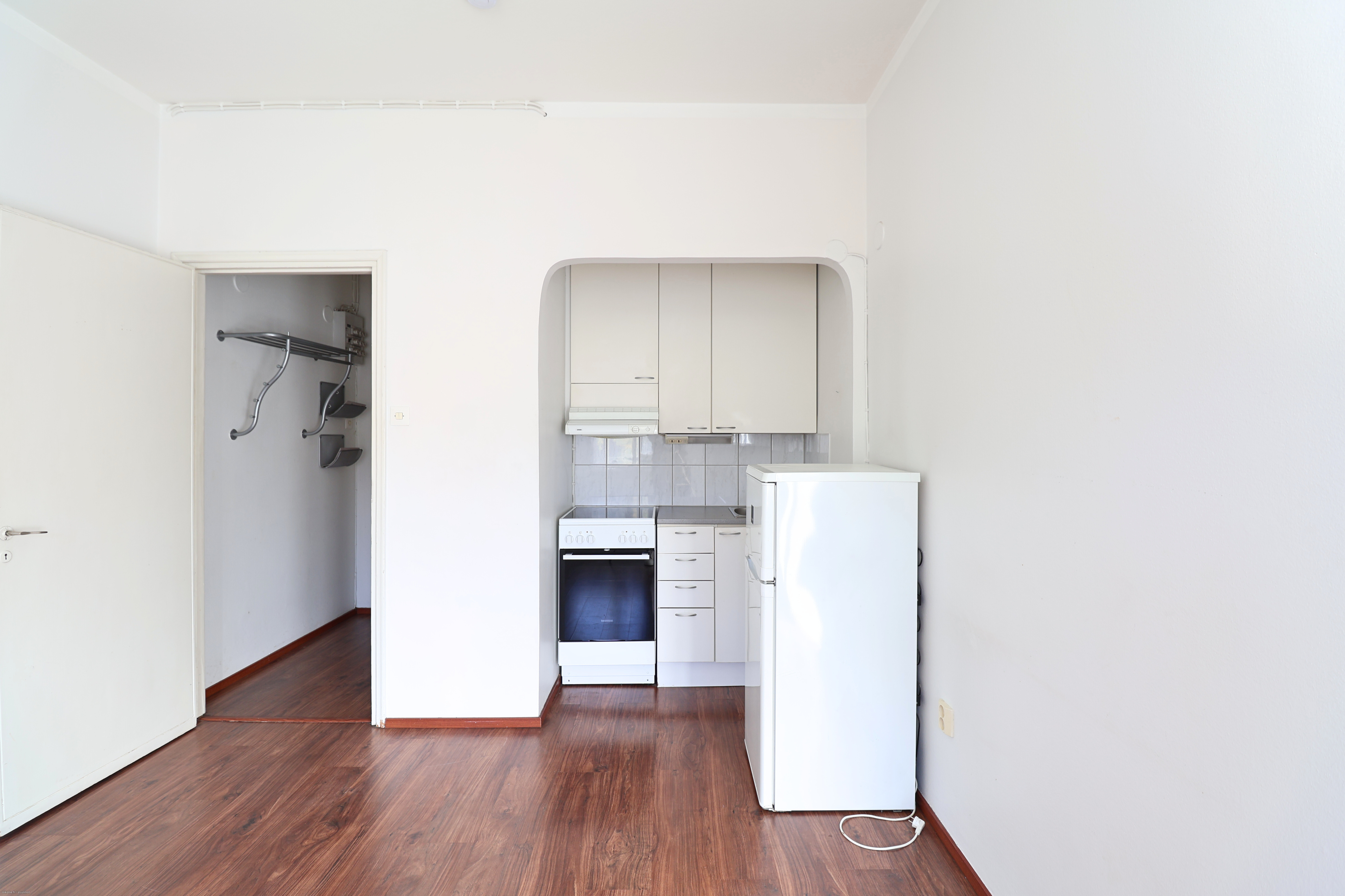 Tämä viihtyisä asunto sijaitsee toisessa kerroksessa, josta näkee suoraan Hämeentielle. Asunnossa on hyväkuntoinen parkettilattia sekä siistit vaaleat seinät. Kompaktista keittokomerosta löytyy uuni sekä jääkaappi pakastin.