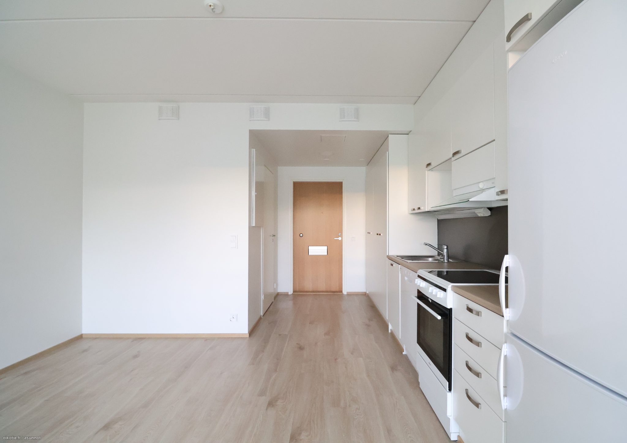 Asunnossa lattia on laminaattia ja seinät vaalein maalipinnoin. Kylpyhuoneesta löytyy paikka ja liitännät pyykinpesukoneelle. Keittiössä on nykyaikaiset kodinkoneet ja varusteluun kuuluu astianpesukone, uuni, liesi ja jääkaappi-pakastin. Lisämukavuutta asumiseen tuo lasitettu parveke.