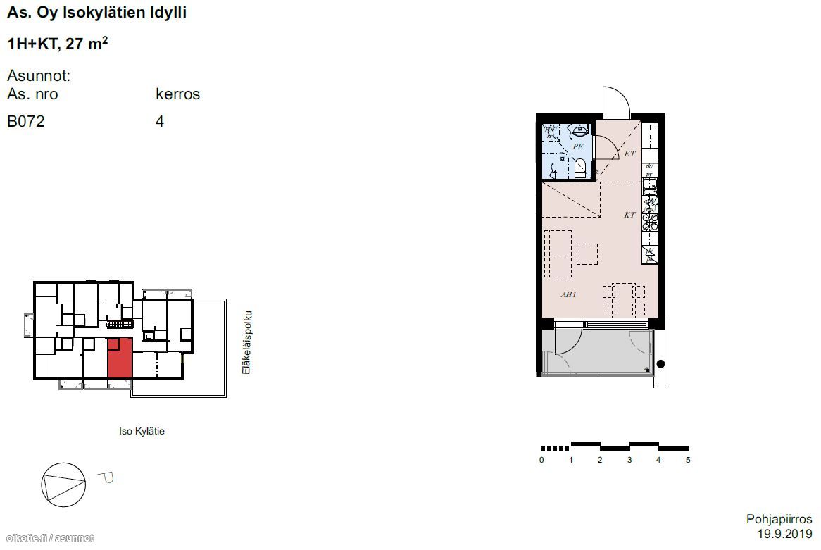 | Huoneiston kokoonpano | 1h,kt,kh,las.parv. |