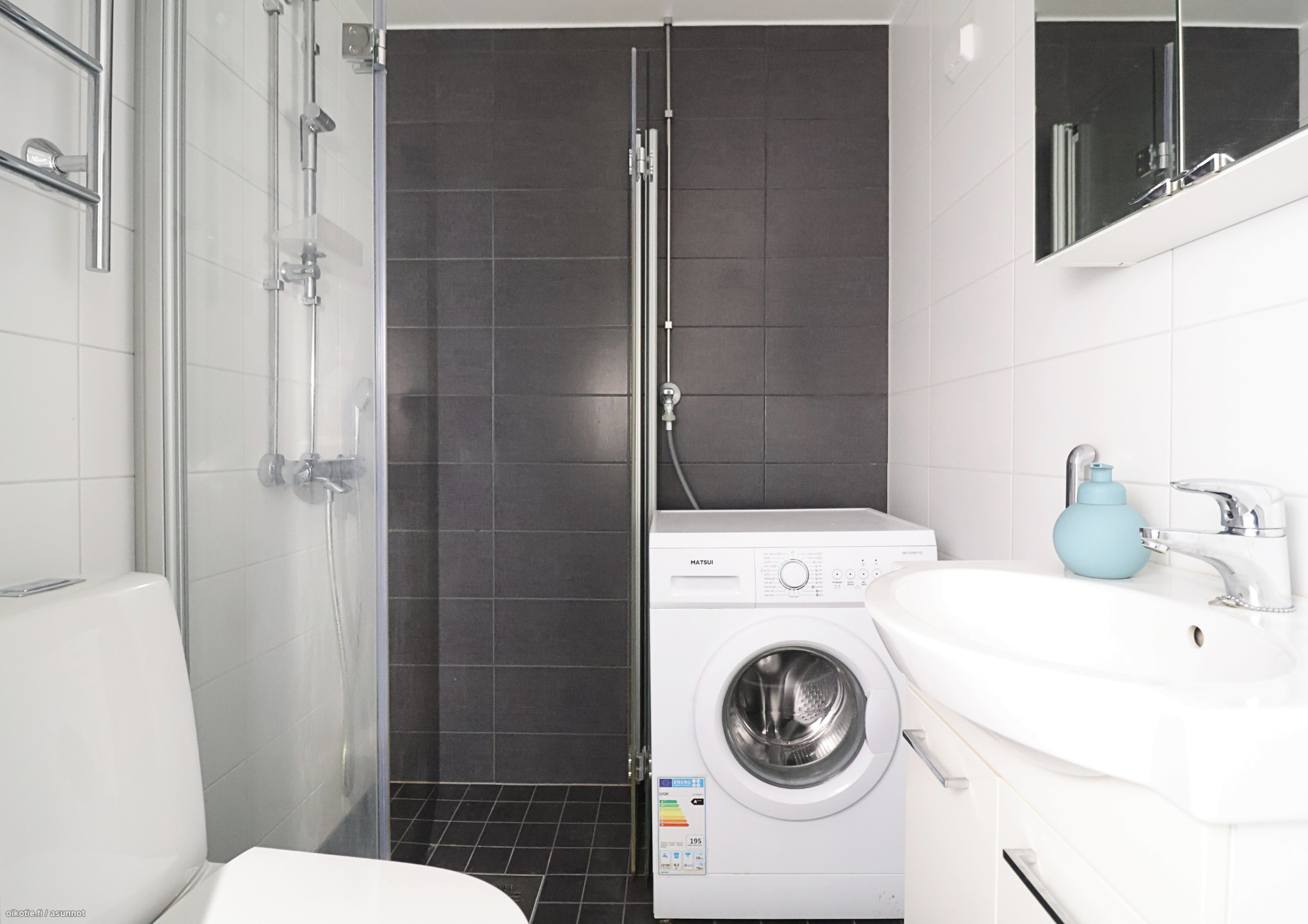 Tässä asunnossa on laminaattilattia ja seinät vaalealla maalipinnalla. Keittiöstä löytyy hyvin säilytys- ja tasotilaa ja varusteluun kuuluu uuni ja liesi ja jääkaappipakastin. Asunnon vaatehuone tuo mukavasti lisää säilytystilaa. Kylpyhuoneessa on paikka ja liitännät pyykinpesukoneelle. Taloyhtiön asukkaille on monipuoliset yhteiset tilat. mm. kellarikomero, sauna, urheiluvälinevarasto, askarteluhuone, pesutupa ja kerhohuone.