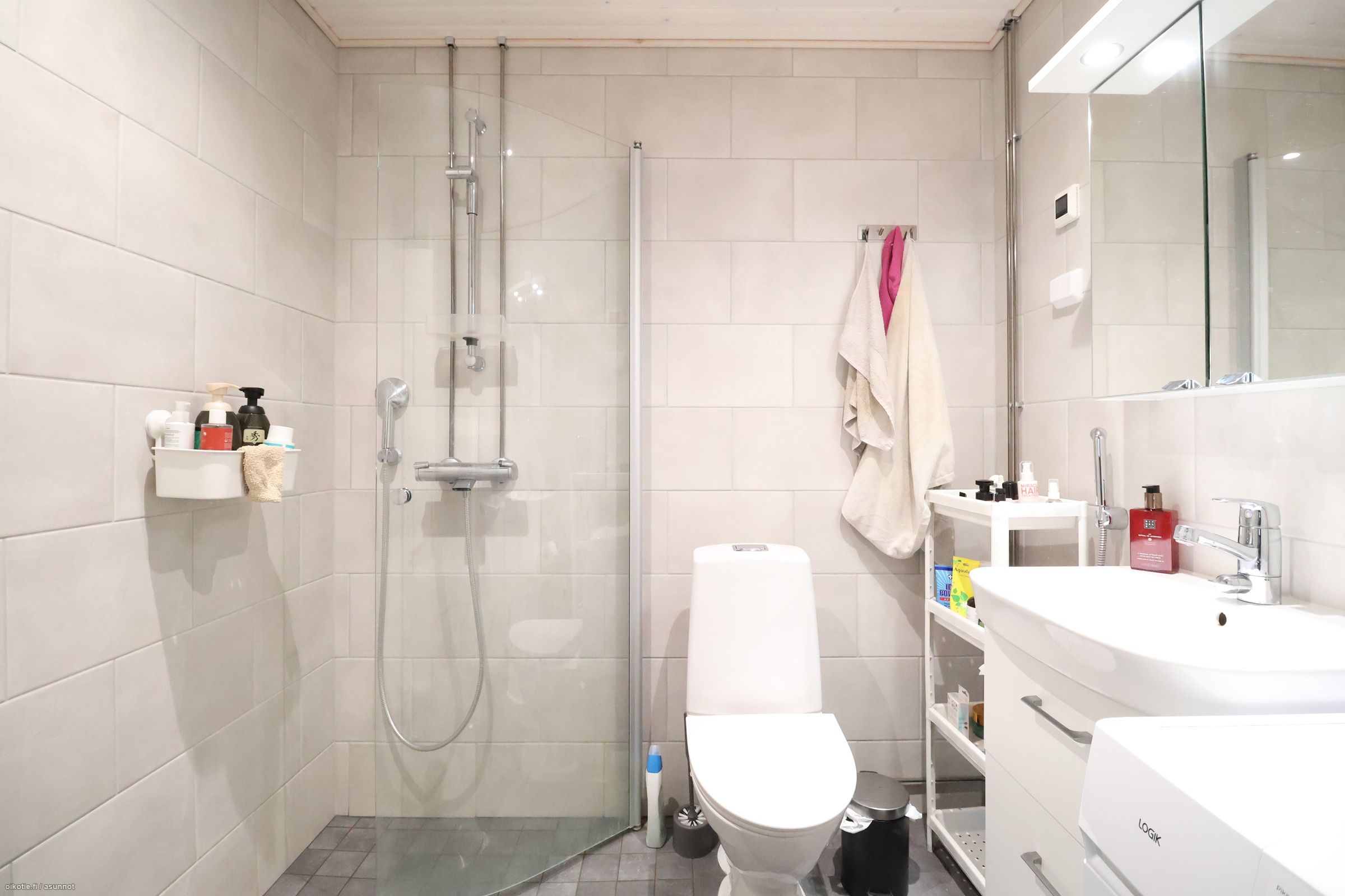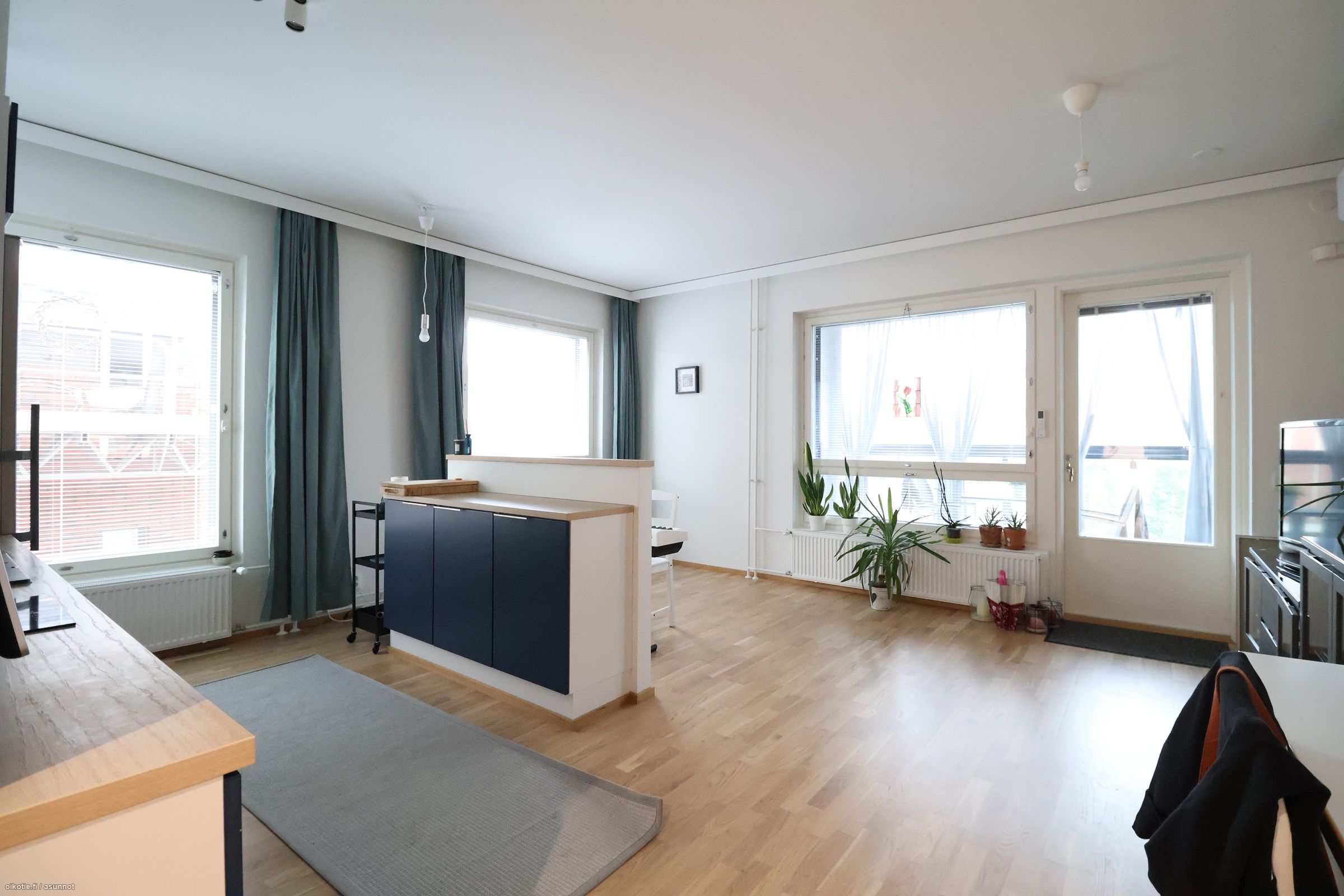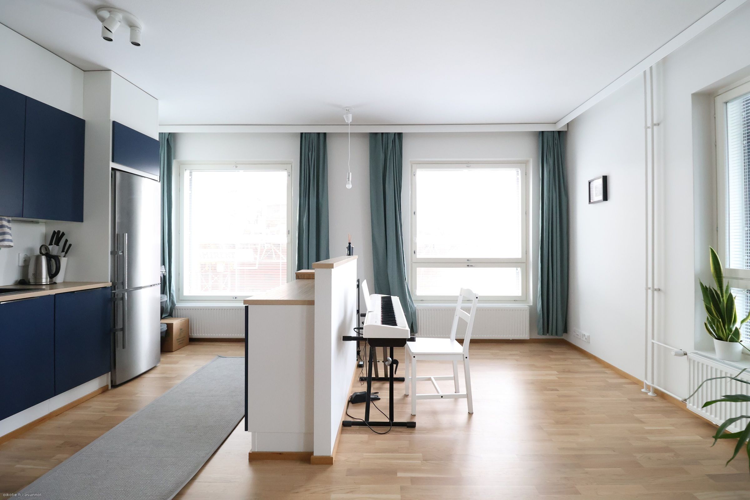 Asunnossa on ilmalämpöpumppu, joka on mukavuustekijä kesähelteillä.