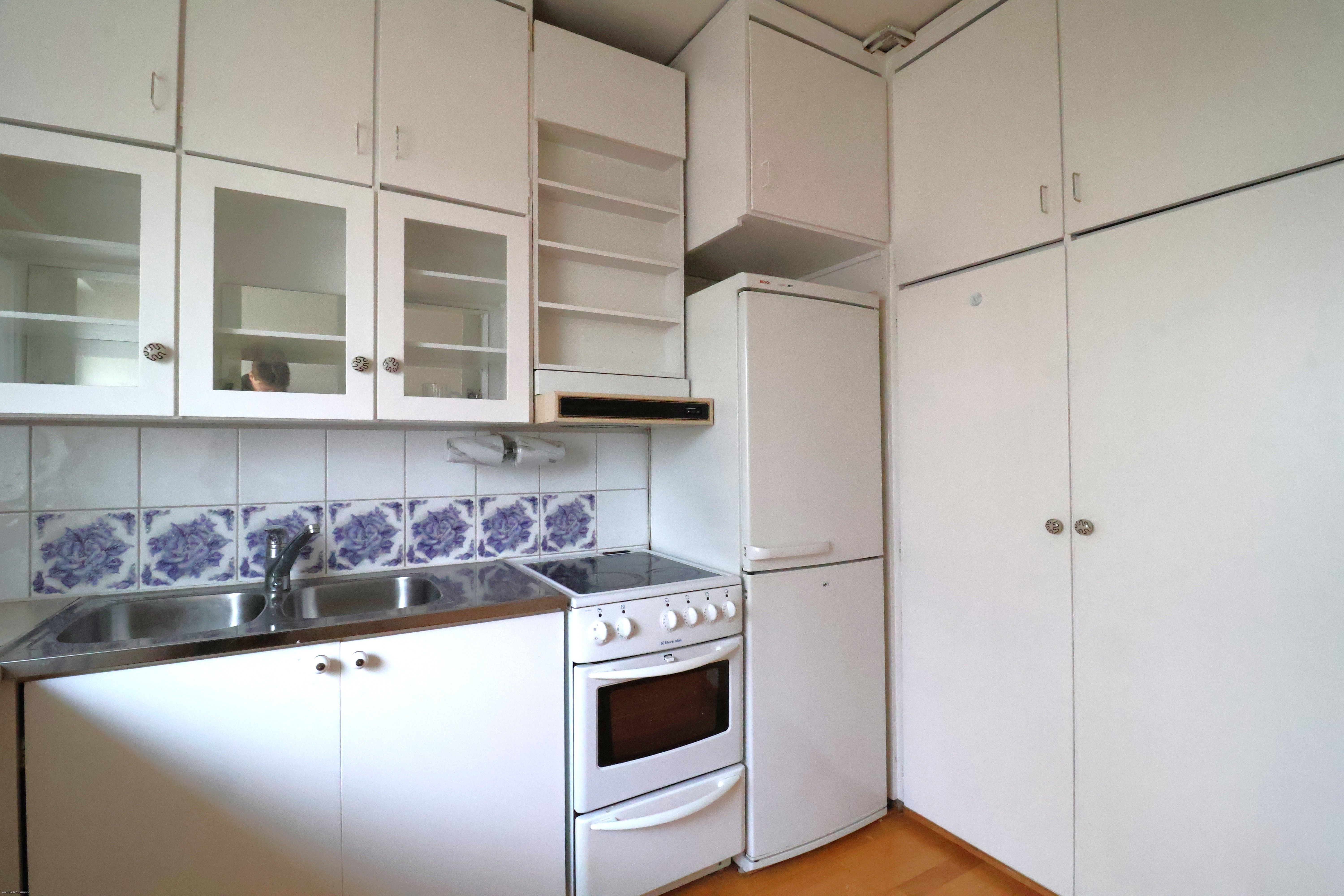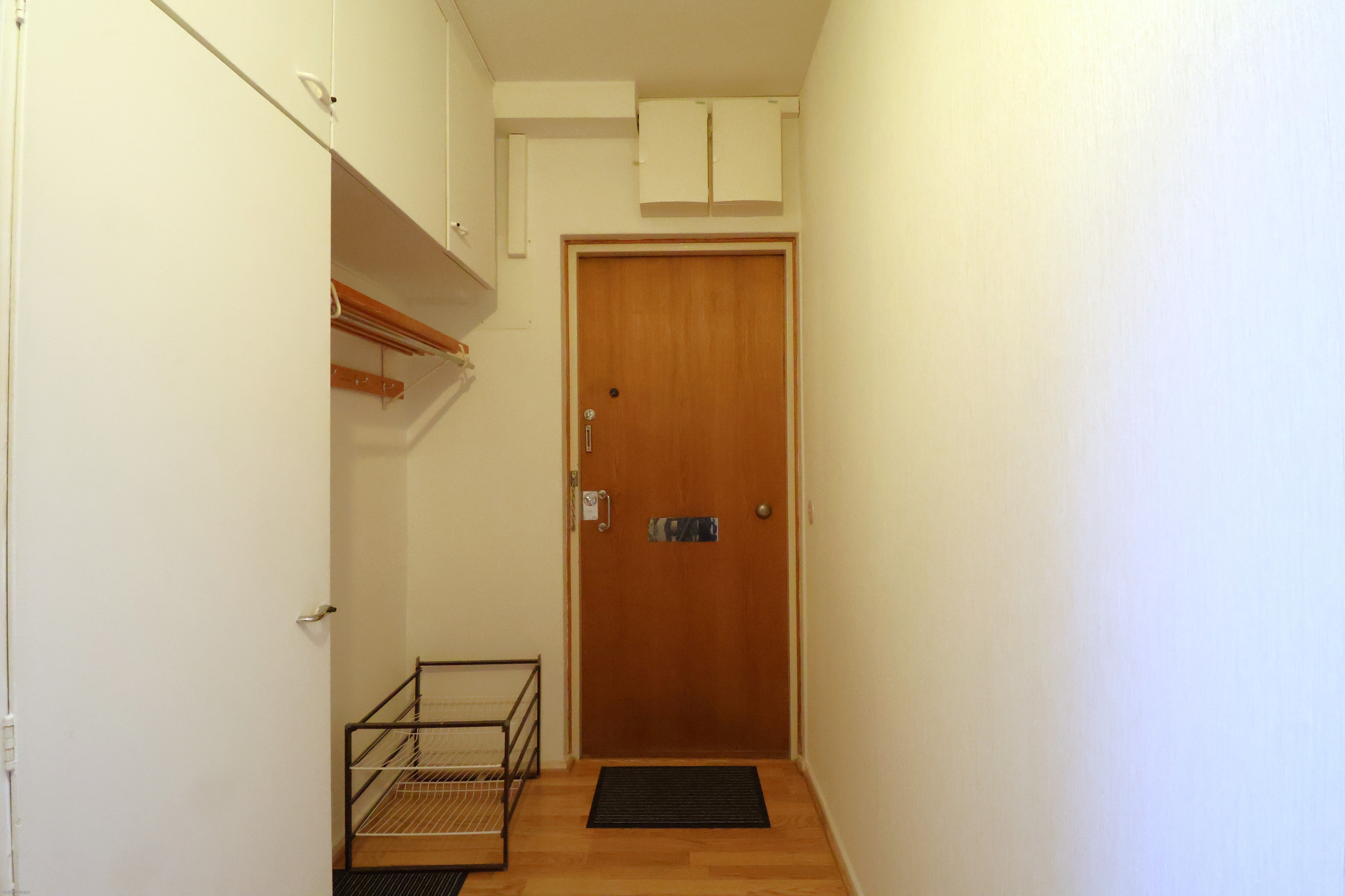 Asunnossa tilava erillinen keittiö, jonka varusteluun kuuluu mm. kompakti astianpesukone, liesi, uuni sekä jääkaappipakastin. Kylpyhuoneessa paikka päältä täytettävälle pyykkikoneelle. Lisää säilytystilaa tuo vaatehuone. Asunnossa lasitettu parveke.