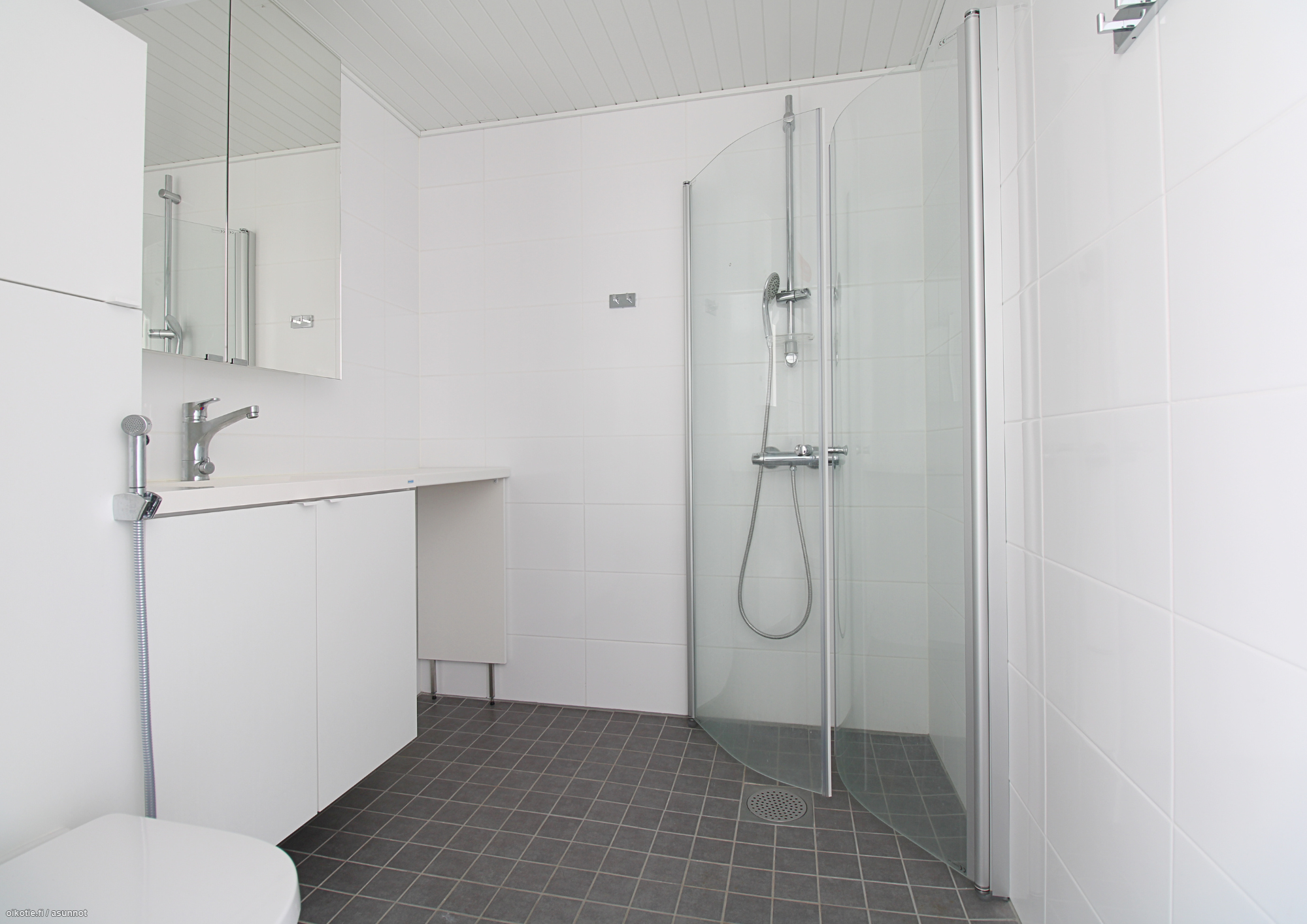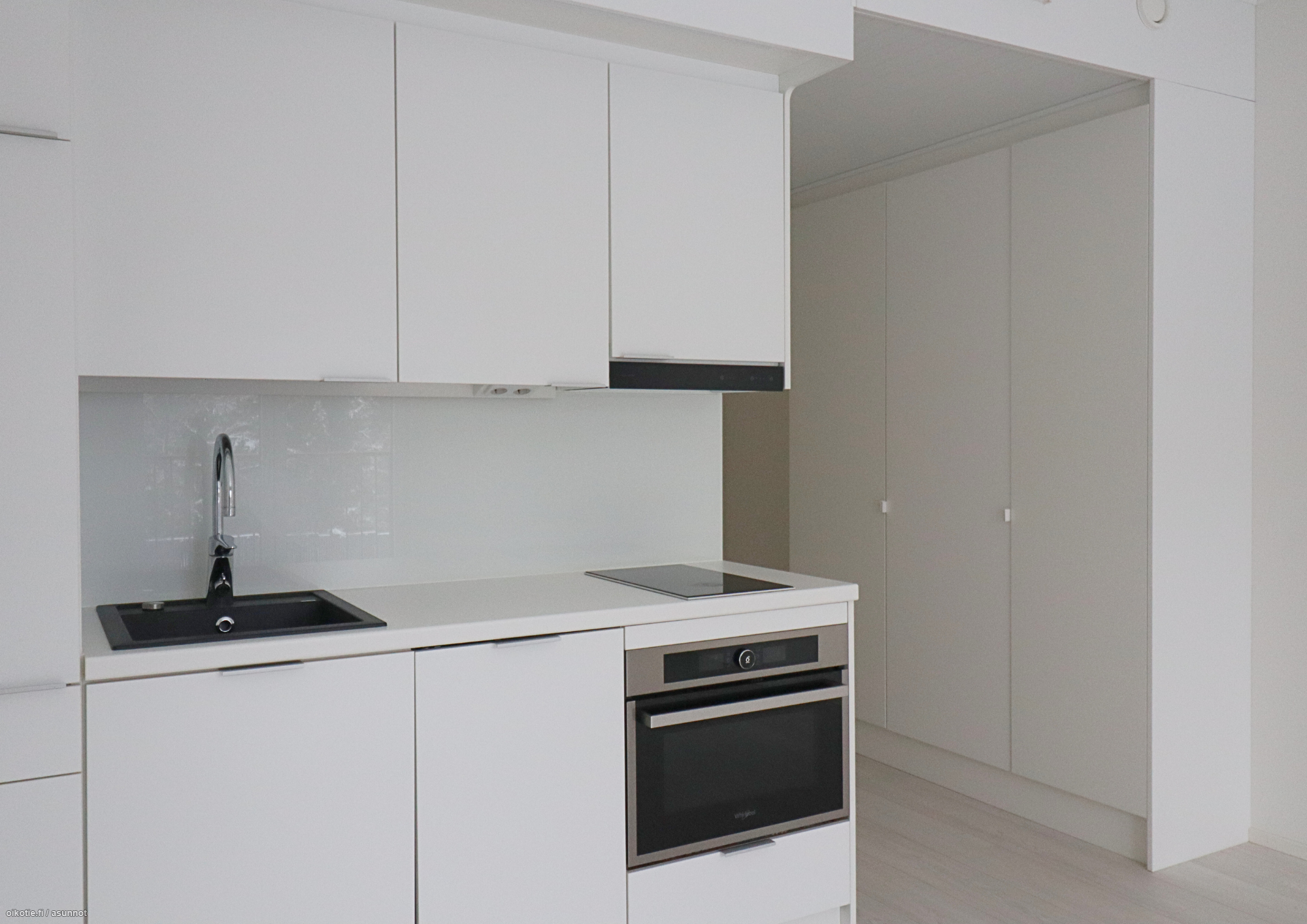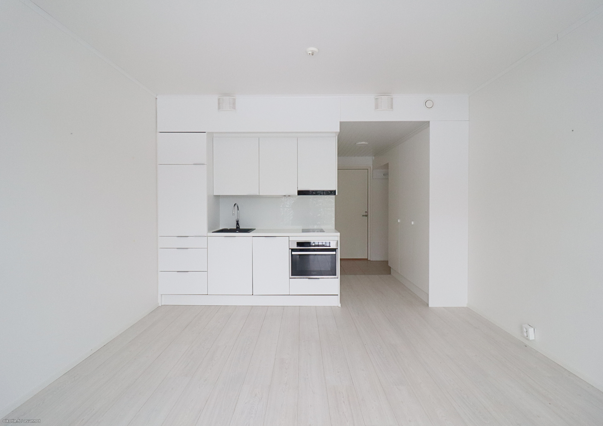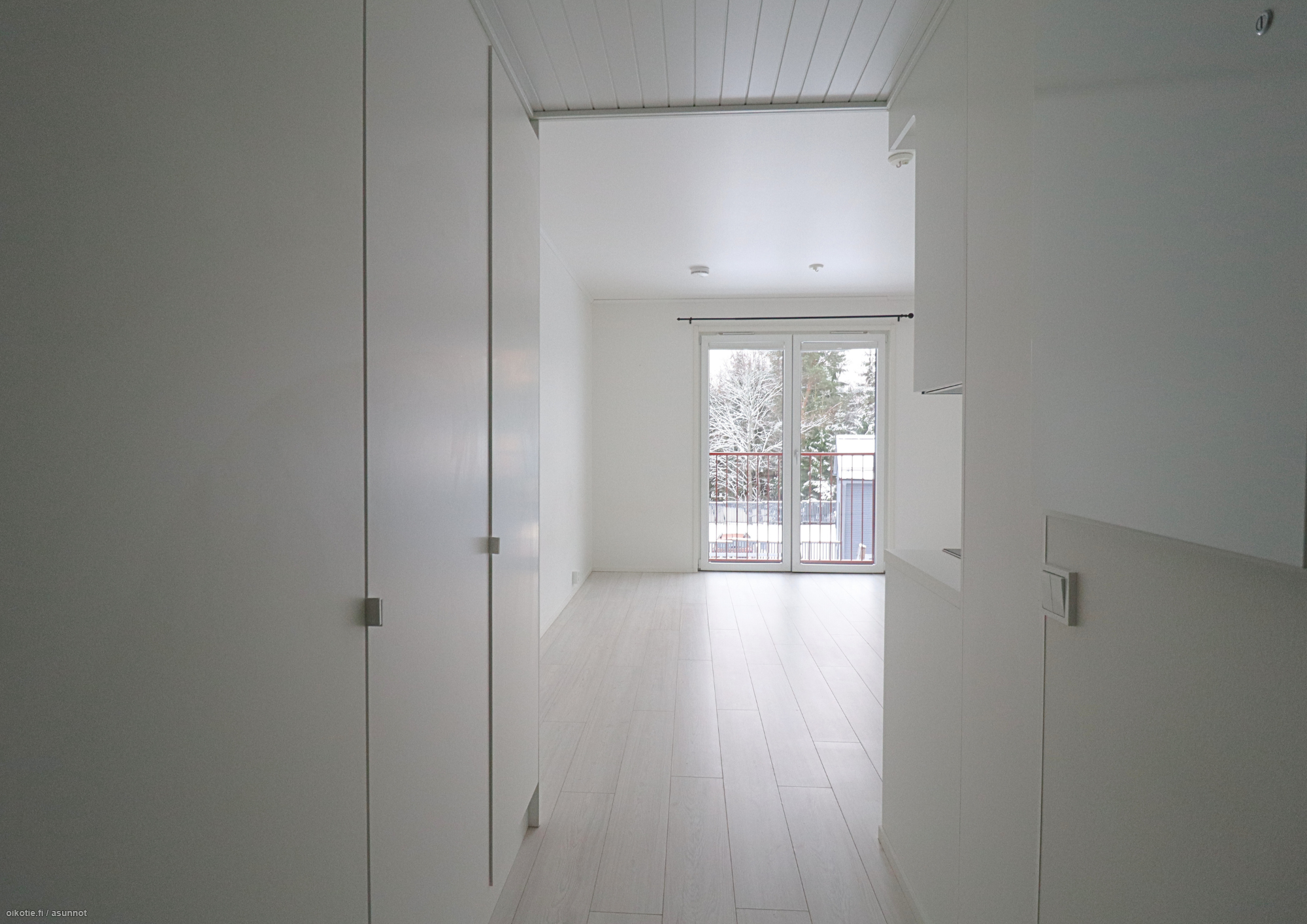 Asunnossa seinät vaalealla maalipinnalla ja lattiat laminaattia. Modernissa keittiössä integroidut kodinkoneet, mm. jääkaappi-pakastin, astianpesukone sekä mikrouuniyhdistelmä. Eteisestä löytyy kaappitilaa säilytystä varten. Kylpyhuoneessa paikka ja liitännät pyykinpesukoneelle. Tästä viihtyisästä asunnosta löytyy myös oma parveke. Asunnossa on koko asunnon kattava lattialämmitysjärjestelmä.