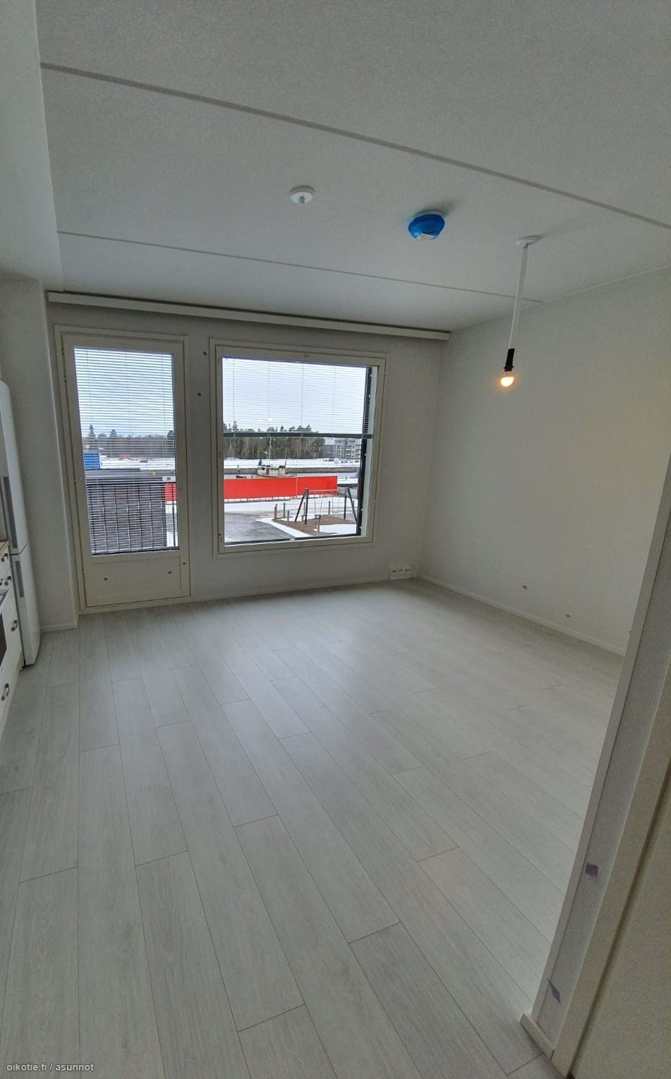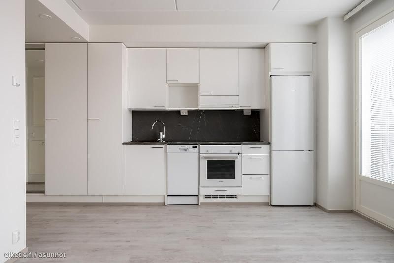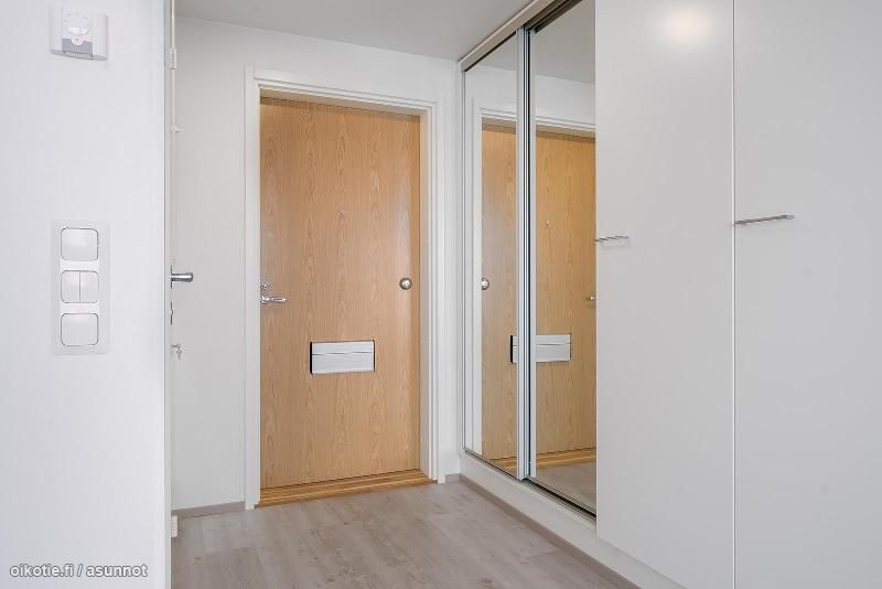 Tämä ensimmäisen (1/8) kerroksen pikkuasunto on tyylikäs. Lattia on laminaattia ja seinät vaalealla maalipinnalla. Keittiön varusteluna astianpesukone, erillisuuni, liesitaso, jääkaappipakastin. Eteisessä valoisuutta tuovat peilikaapistot. Kylpyhuoneessa liitännät pyykinpesukoneelle. Tässä asunnossa on myös ranskalainen parveke. Huoneistossa on huoneistokohtainen ilmanvaihto, ja lämmitysmuotona on miellyttävä lattialämmitys. Jokaiselle asunnolle on lisäksi oma häkkivarasto. Lemmikit tapauskohtaisesti neuvoteltavissa.