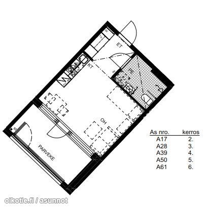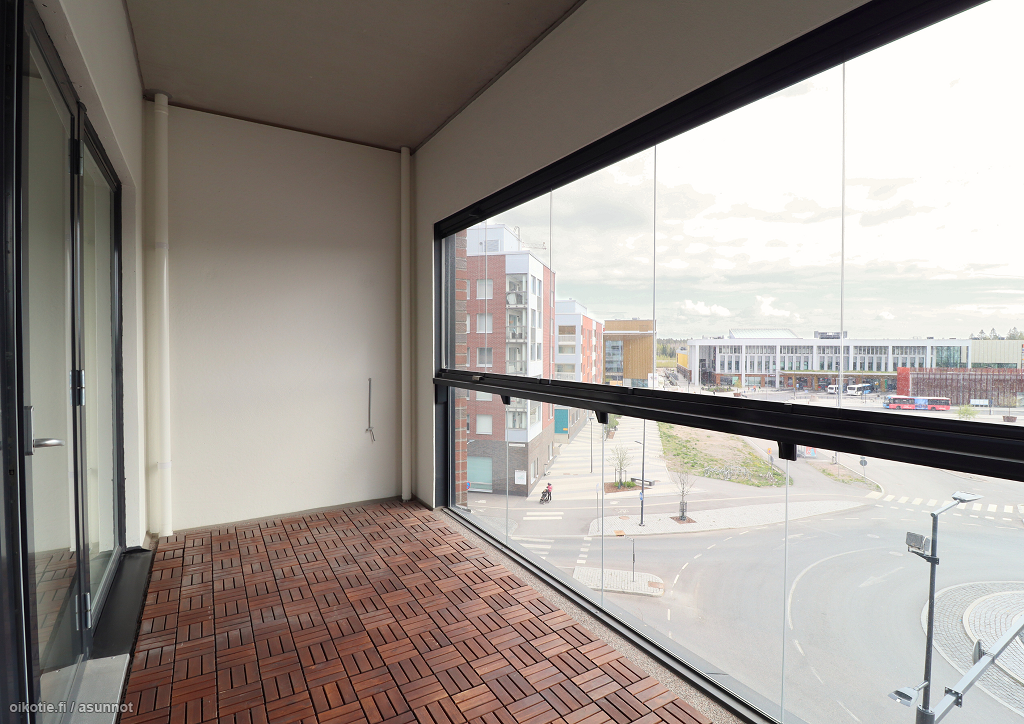 | Huoneiston kokoonpano | 1h+kt+lasitettu parv. |