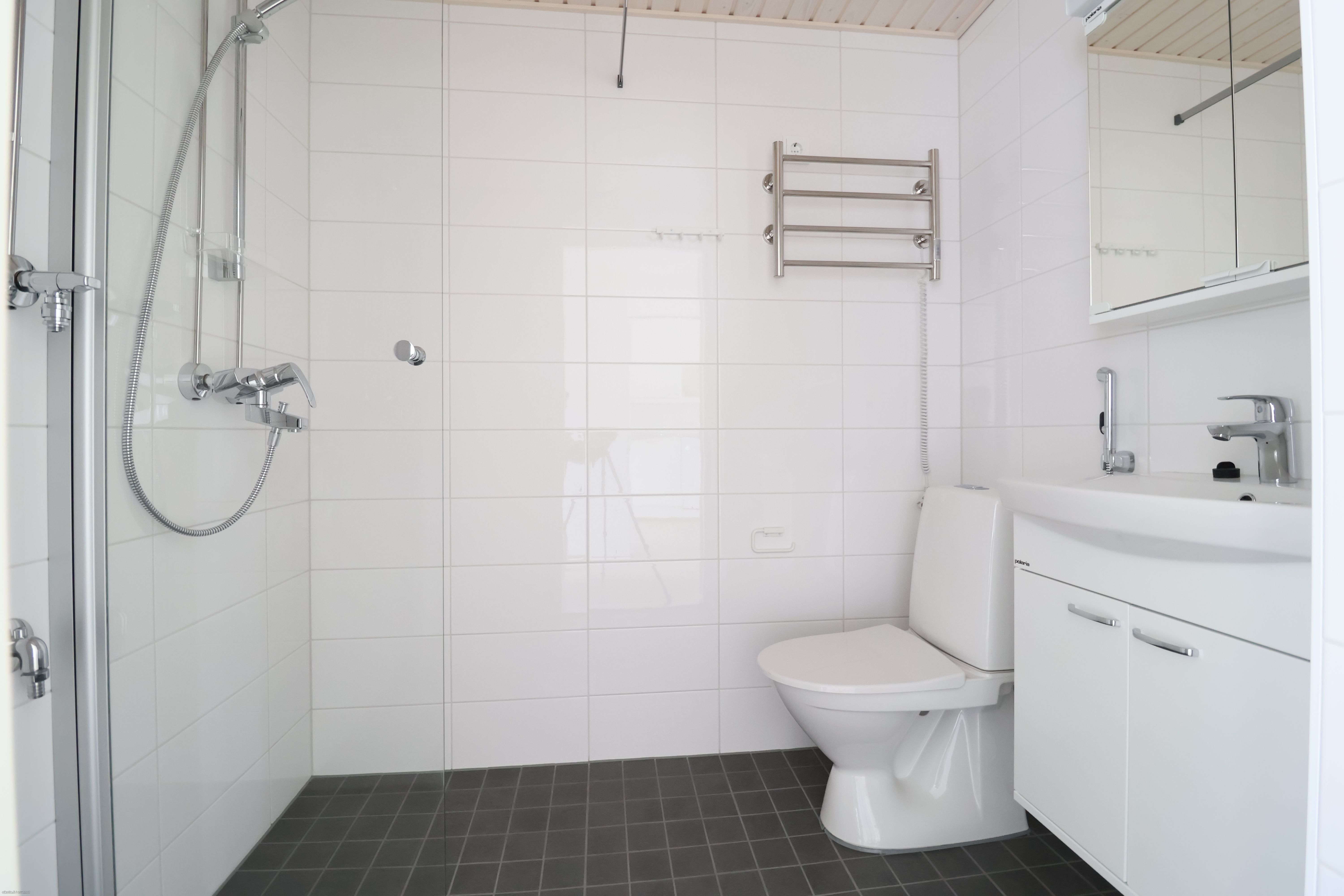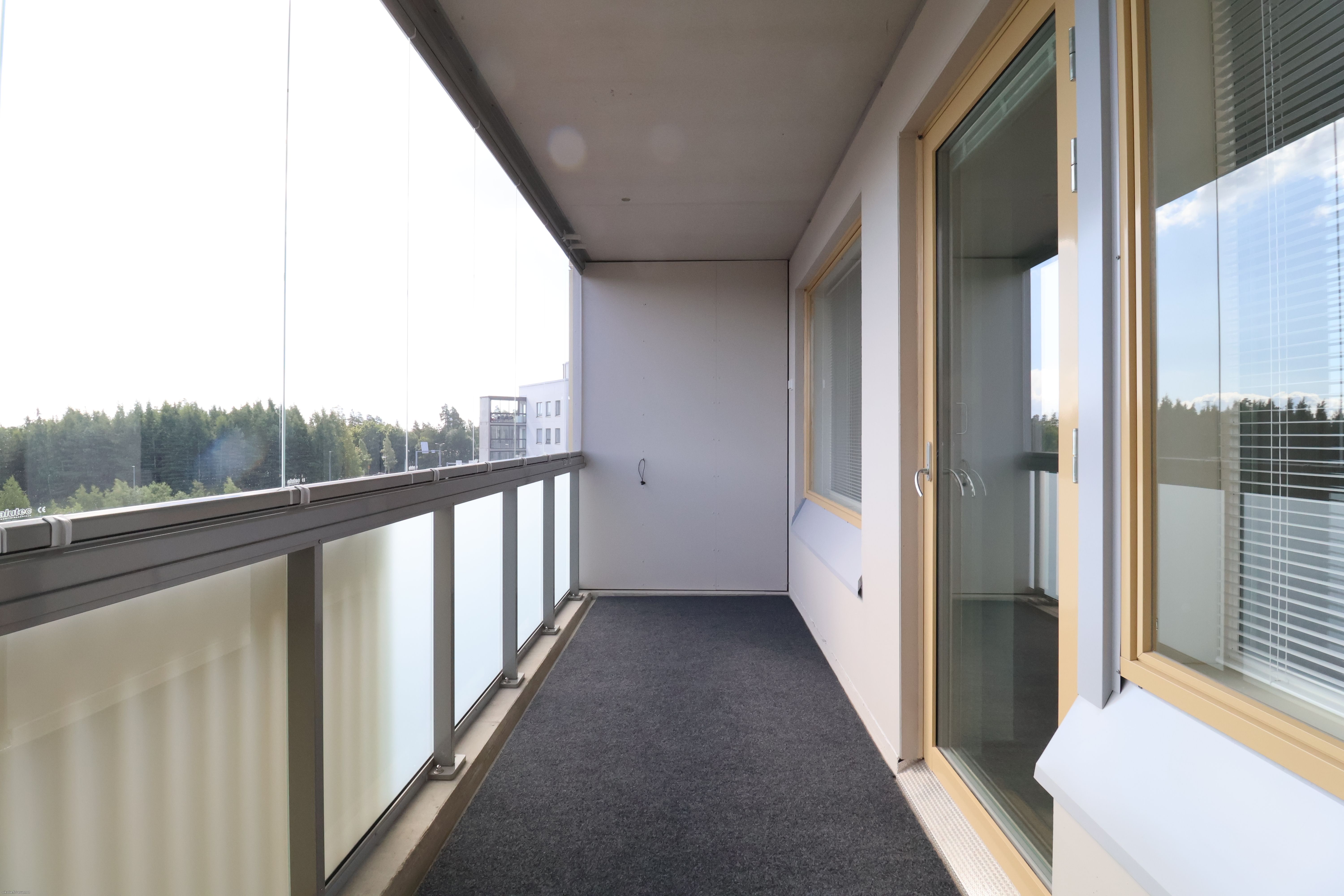 Tässä valoisassa asunnossa seinät ovat vaaleilla maalipinnoilla ja lattiana on puunsävyinen laminaatti. Keittiön varusteluun kuuluu astianpesukone, uuni, liesi sekä jääkaappi-pakastin. Kylpyhuoneesta löytyy paikka ja liitännät pesukoneelle. Lisämukavuutta tuo lasitettu parveke. Taloyhtiöstä löytyy pesutupa, sauna sekä huoneistokohtaiset irtaimistovarastot.