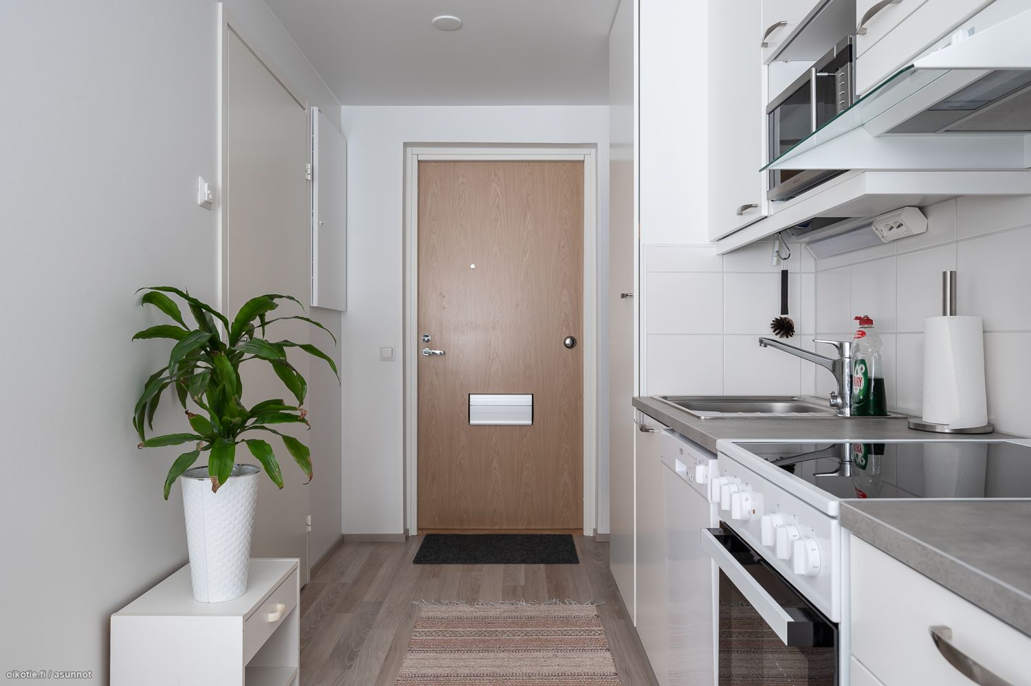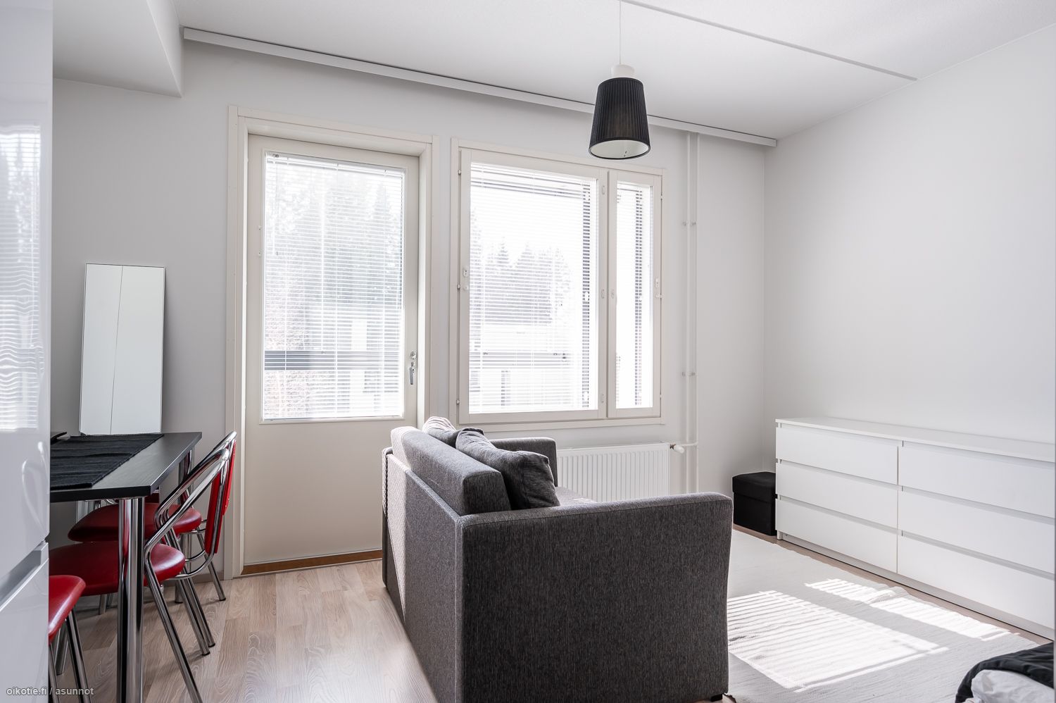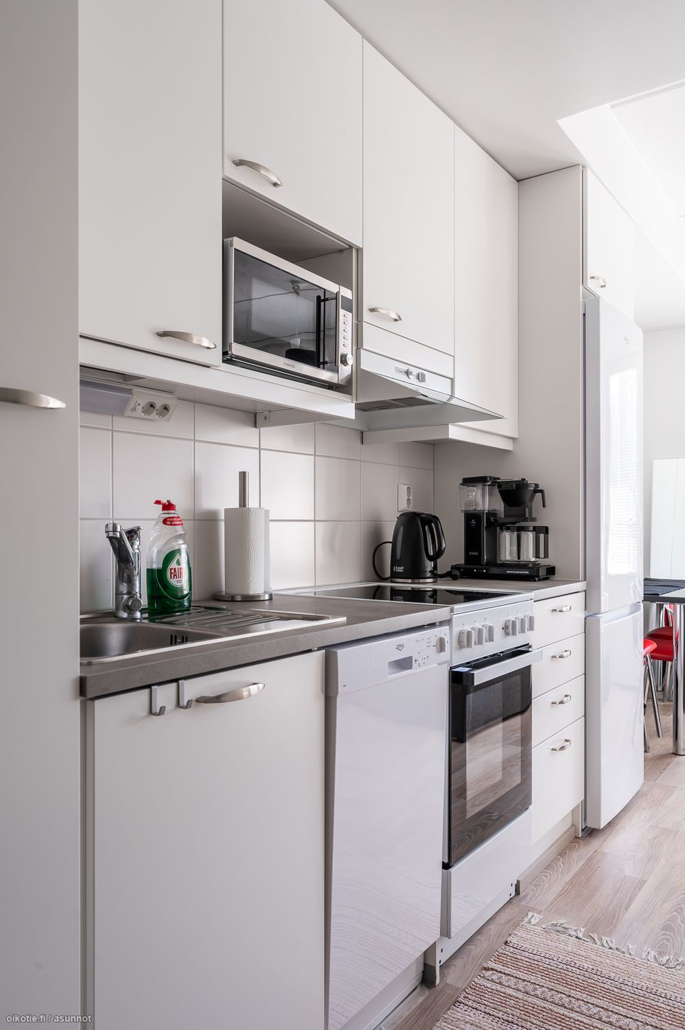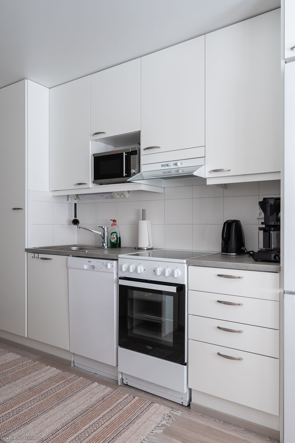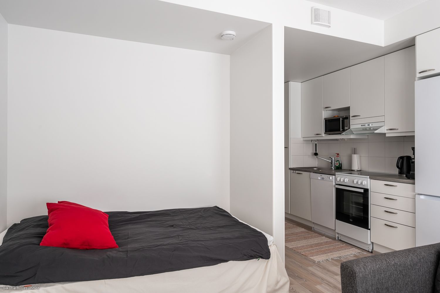 Vuokrattavana ensimmäisen (1/4) kerroksen hyvällä pohjalla oleva näppärä pikkuyksiö. Lattiassa tammilaminaatti, seinät maalipinnoin ja ikkunoissa valmiina sälekaihtimet. Keittiössä rosterinen taso ja pesualtaat. Keittiön varusteluun kuuluu myös laadukkaat kodinkoneet, jääkaappi, astianpesukone, liesi ja uuni. Kylpyhuoneessa on liitännät ja paikka pyykinpesukoneelle sekä kuivausrummulle. Lasitettu parveke tuo lisää asumismukavuutta.