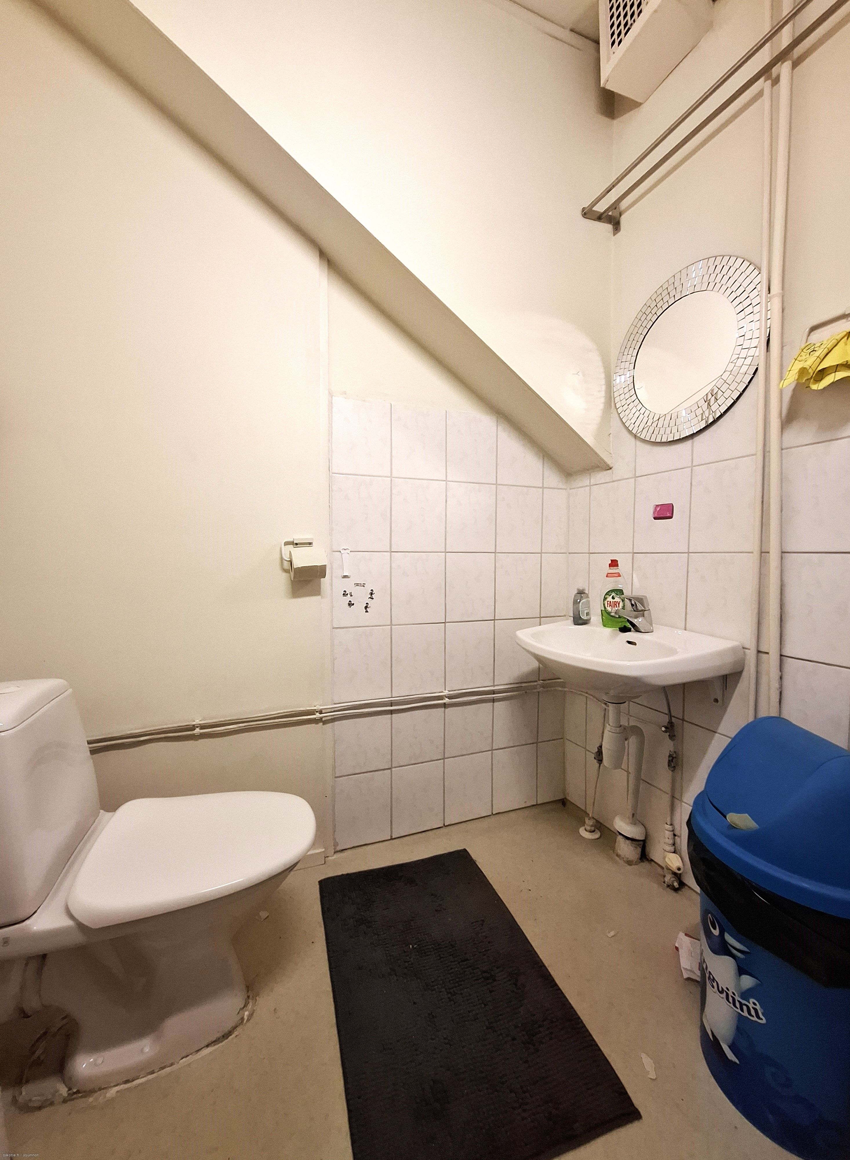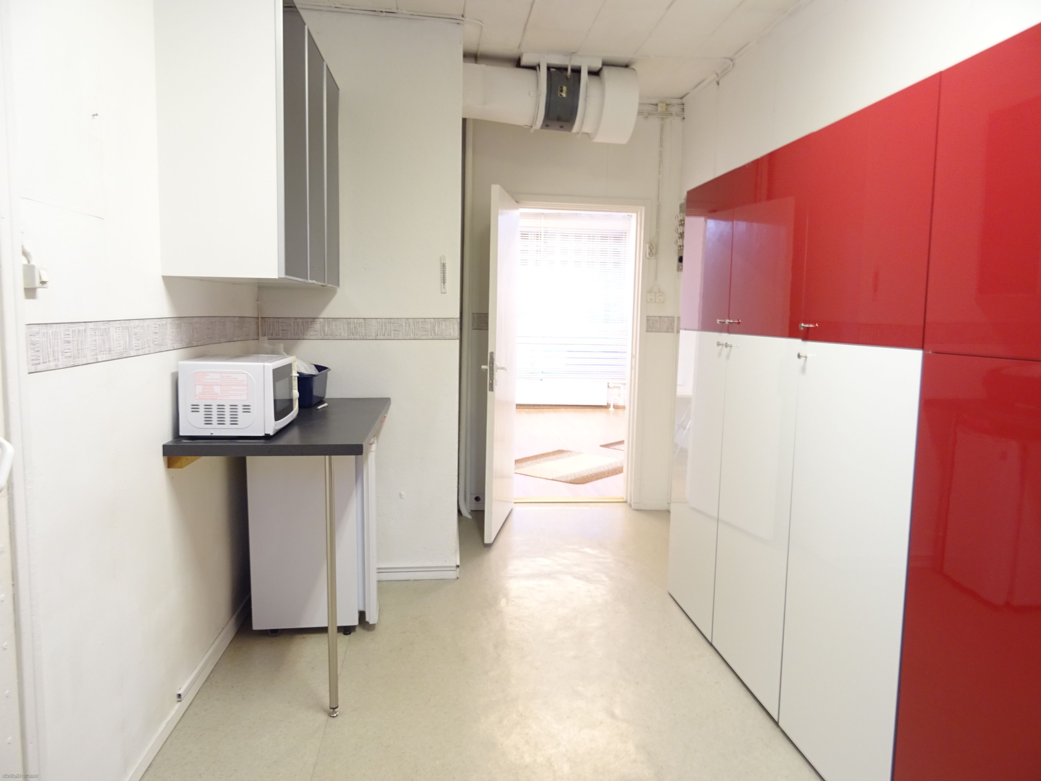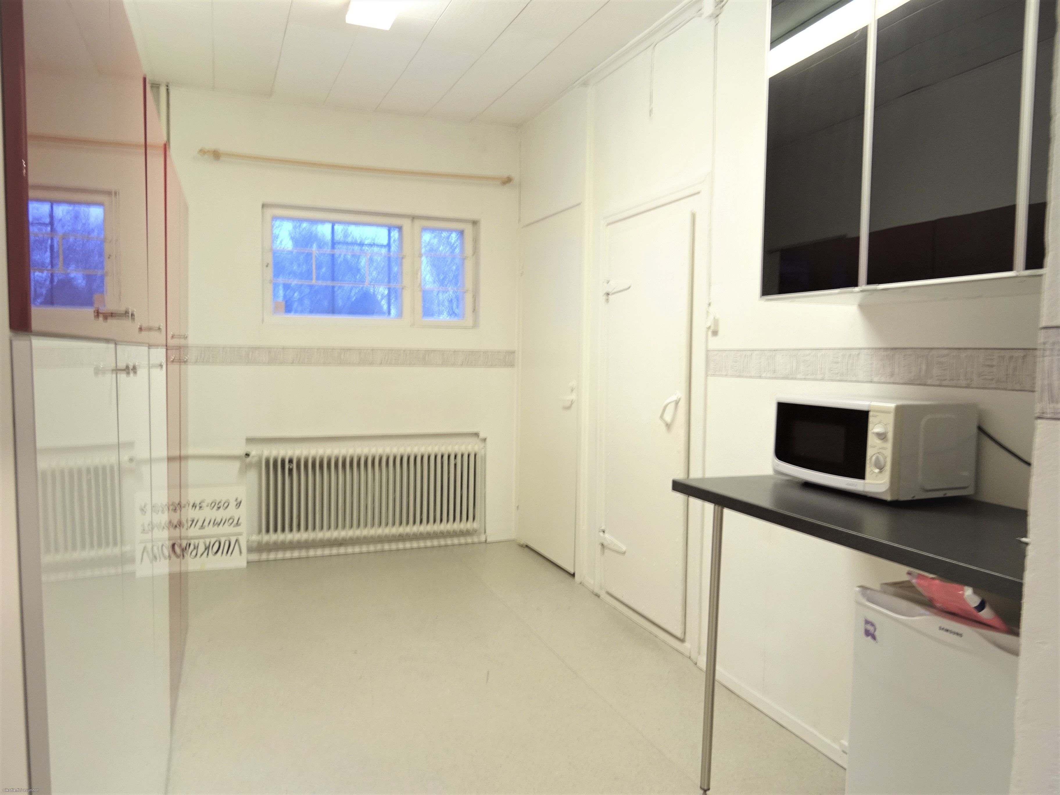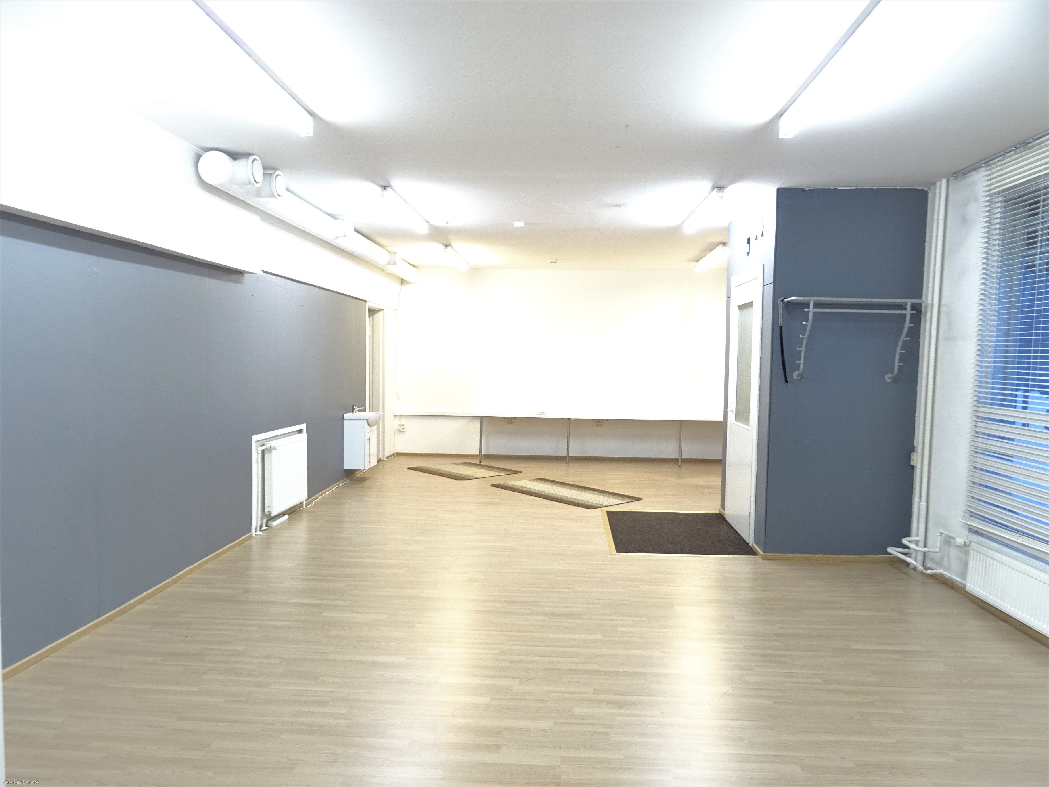 Tila koostuu isommasta avotilasta ja kahvittelu-/taukotilasta. Lisäksi on oma wc taukotilan yhteydessä.