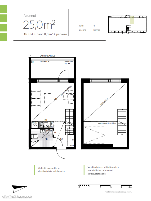 | Huoneiston kokoonpano | 1h,kt,kh,parvi,parveke |