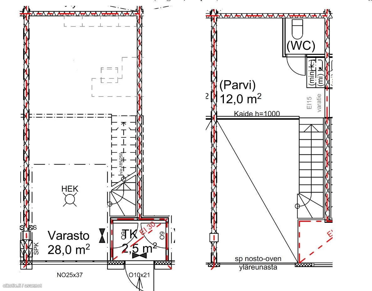 | Huoneiston kokoonpano | Halli,parvi,wc |